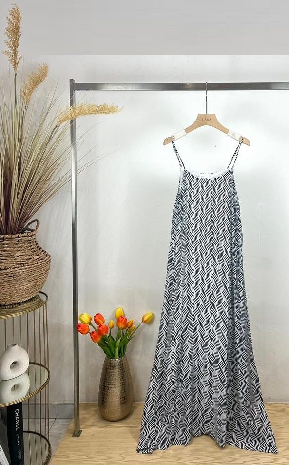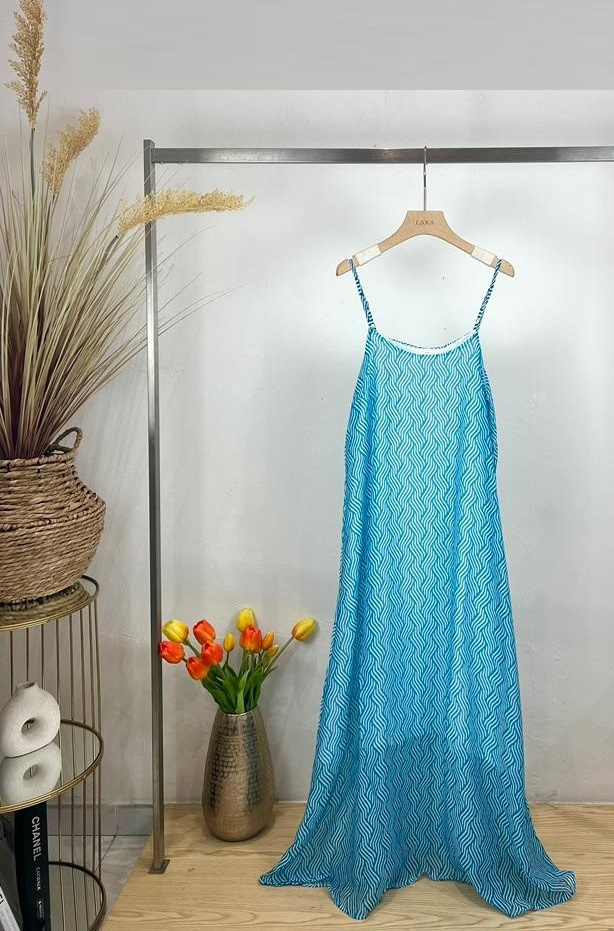 Módní letní dámské dlouhé šaty s tenkými ramínky, odlehčený materiál.