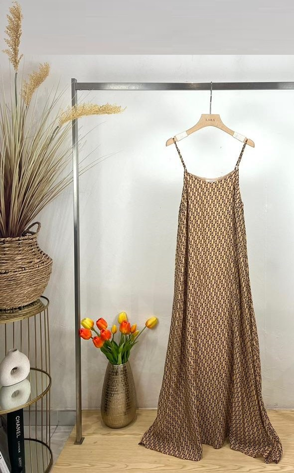 Módní letní dámské dlouhé šaty s tenkými ramínky, odlehčený materiál.