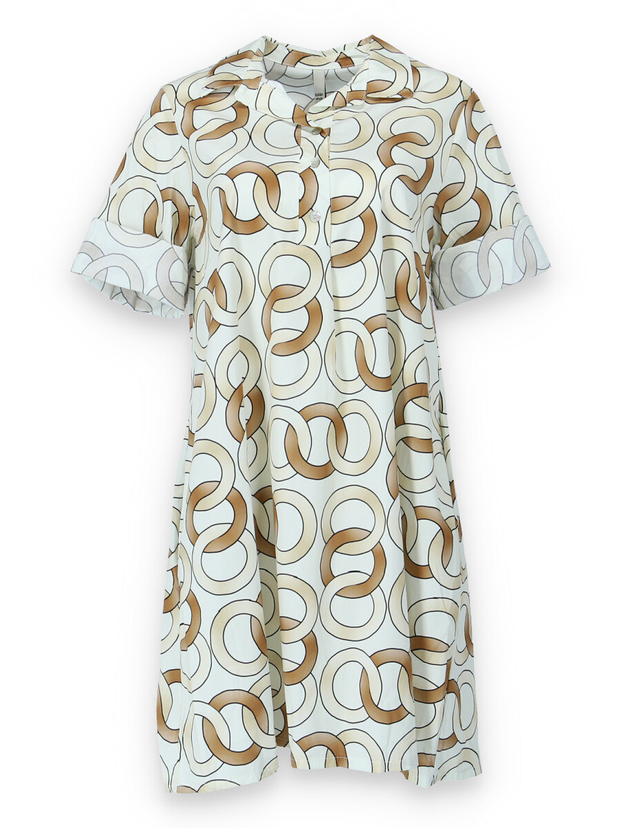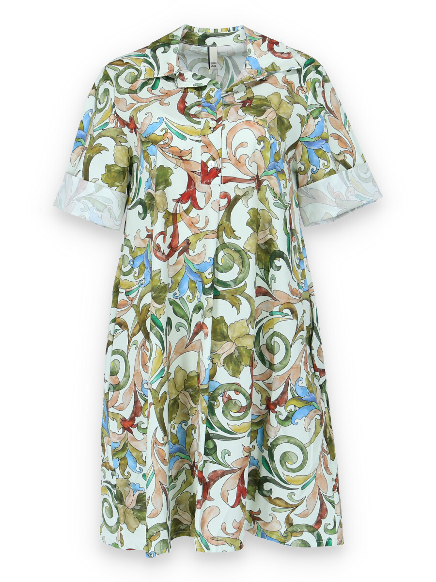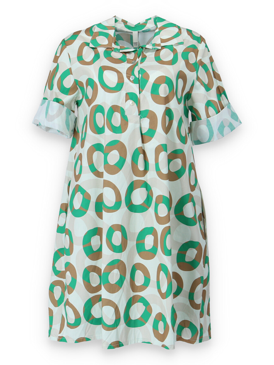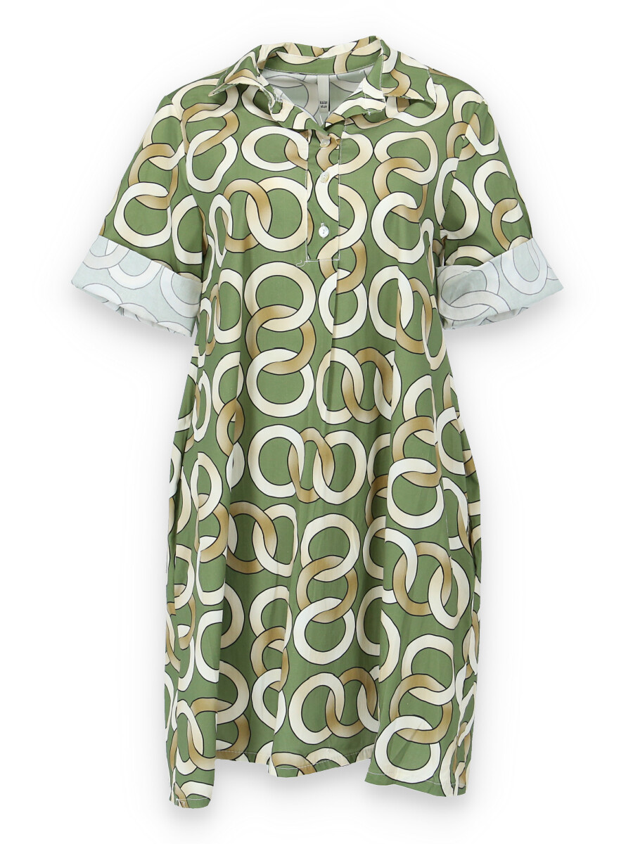 Košilové letní dámské šaty s krátkým rukávem, všité boční kapsy, délka ke kolenům a výstřih s knoflíky