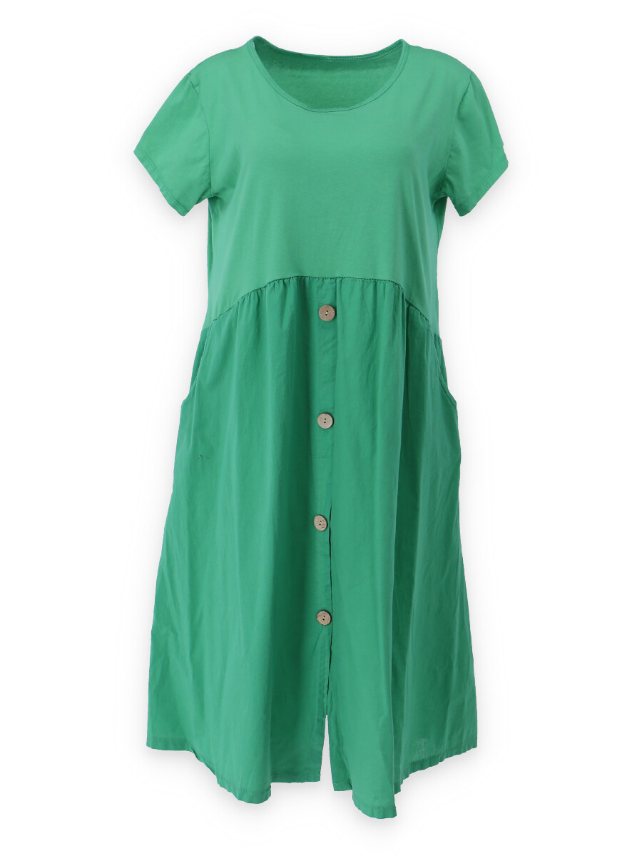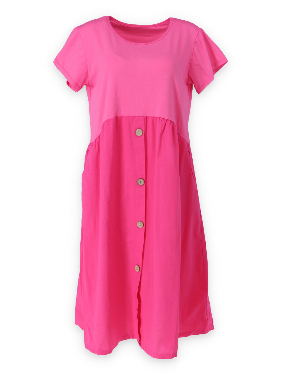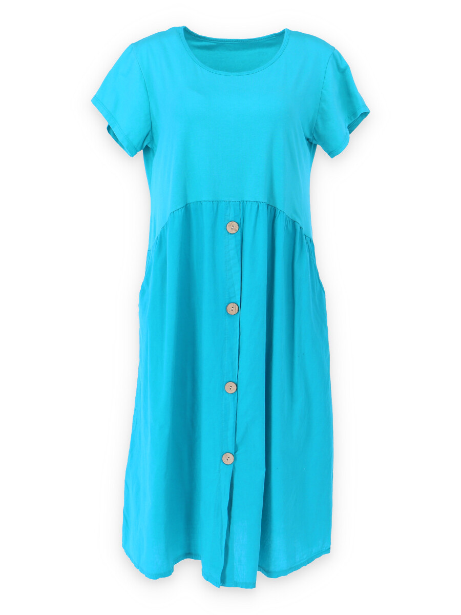 Letní šaty s krátkým rukávem a kapsami v bocích.