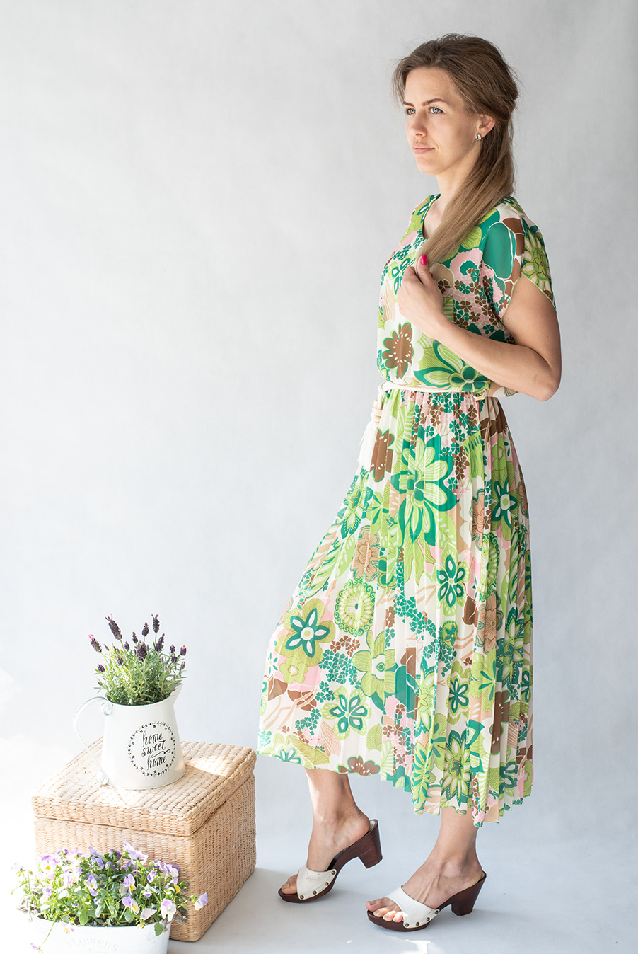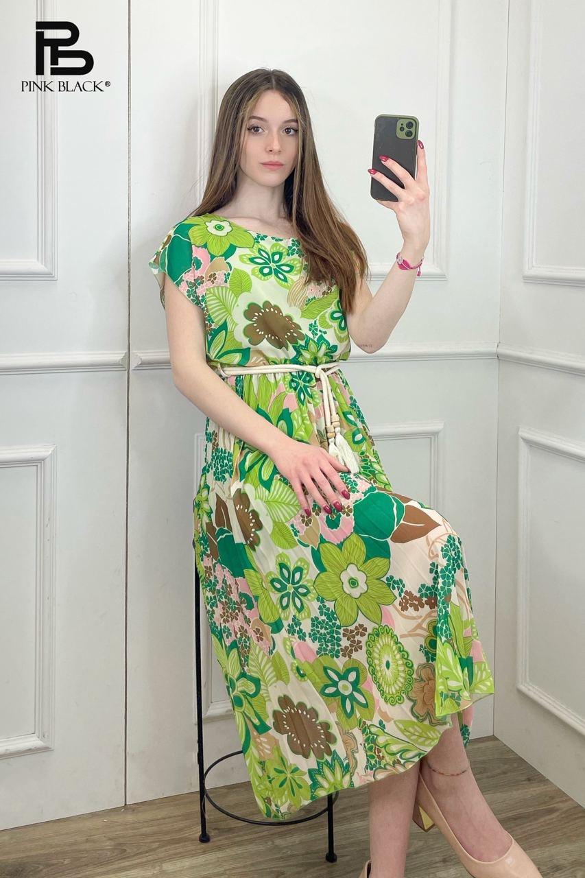 Módní letní dámské šaty krátkým rukávem, zdobené vázačkou.