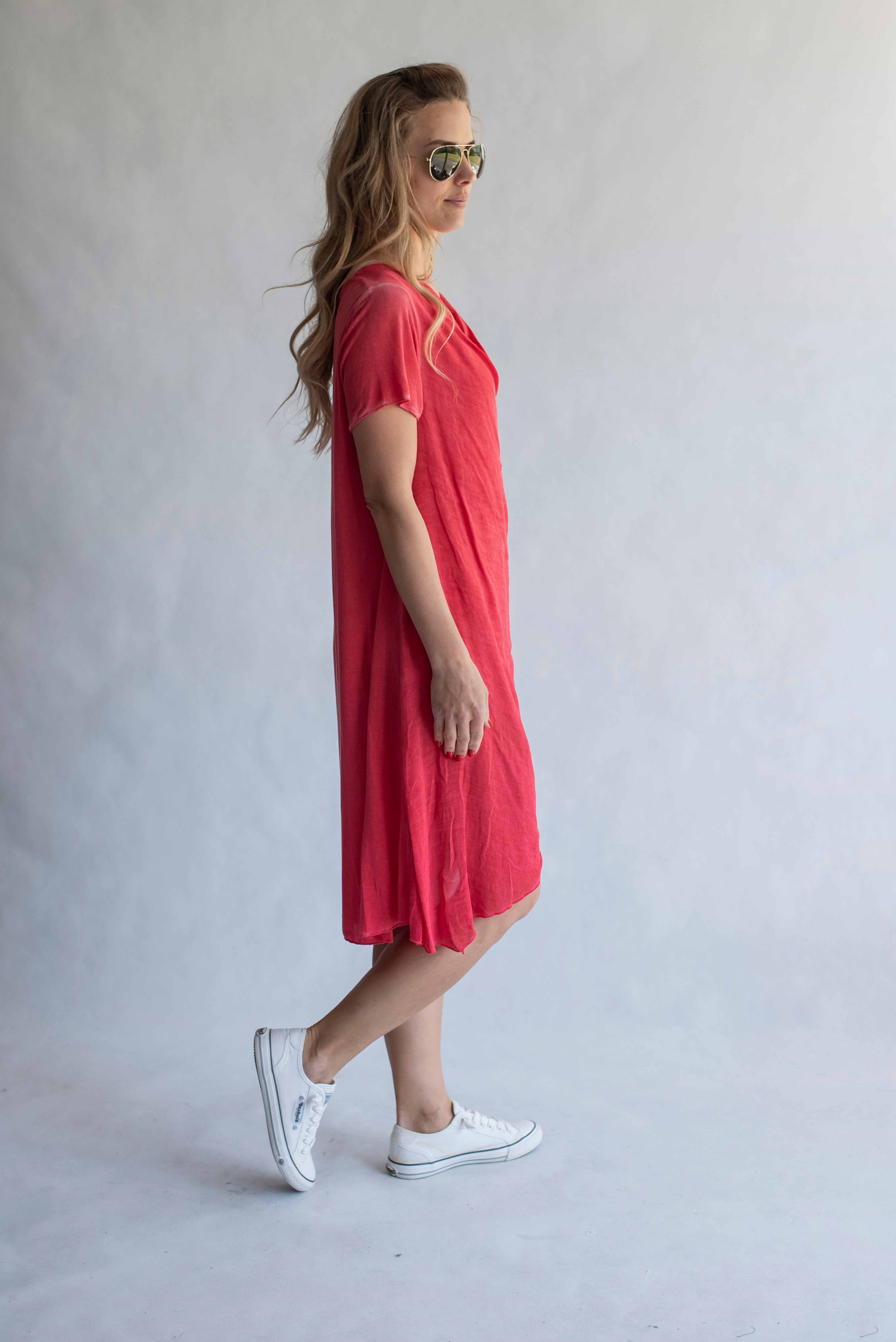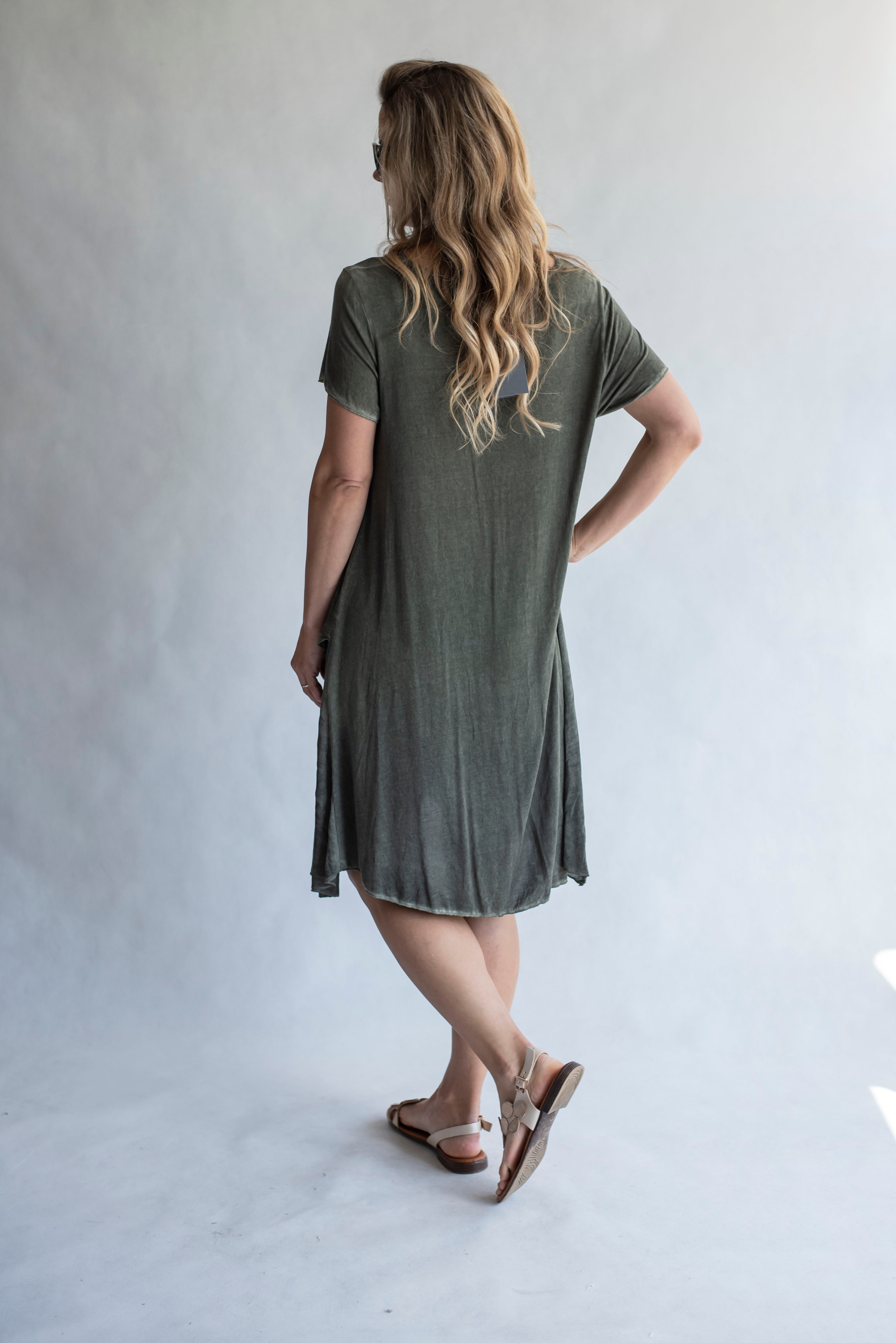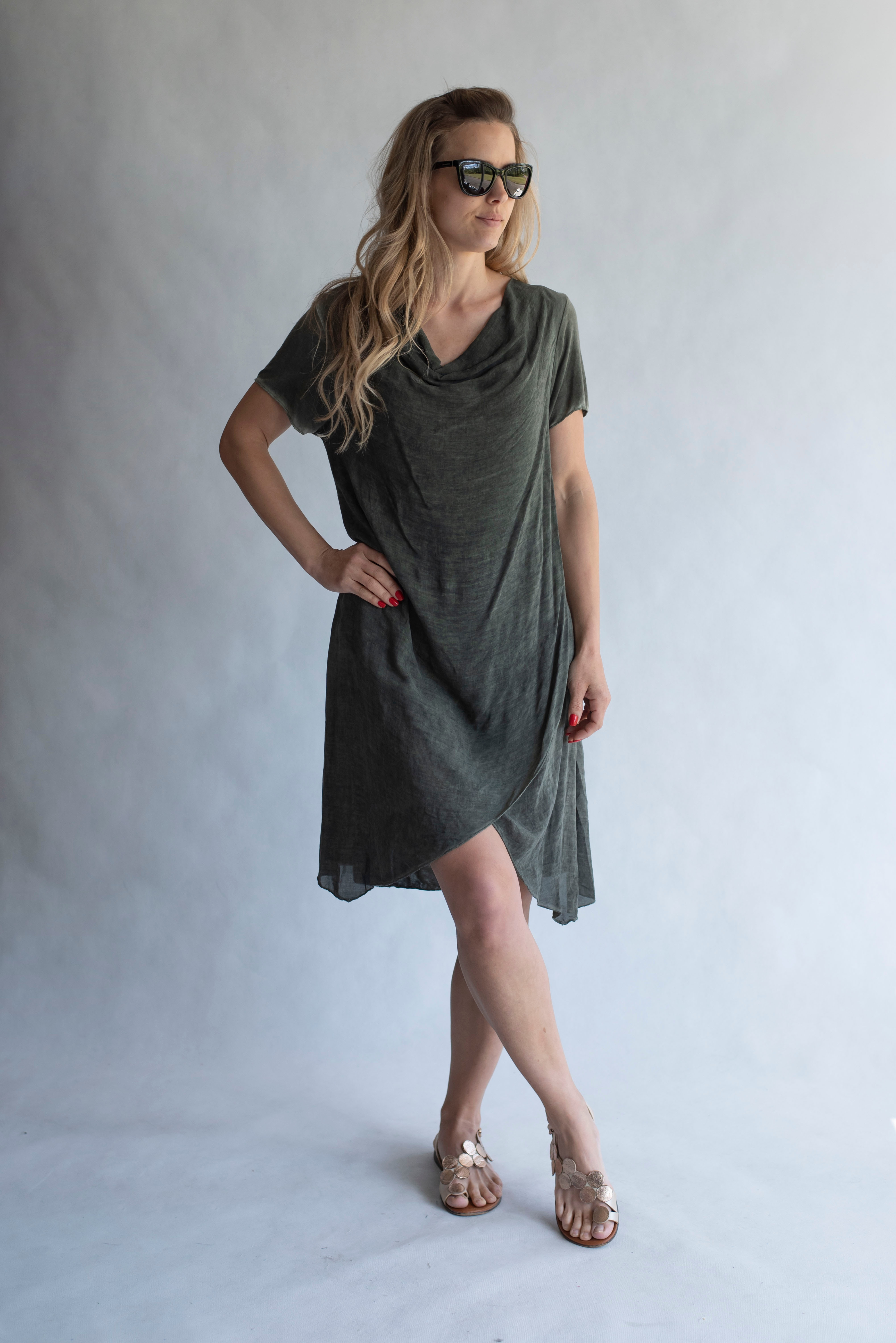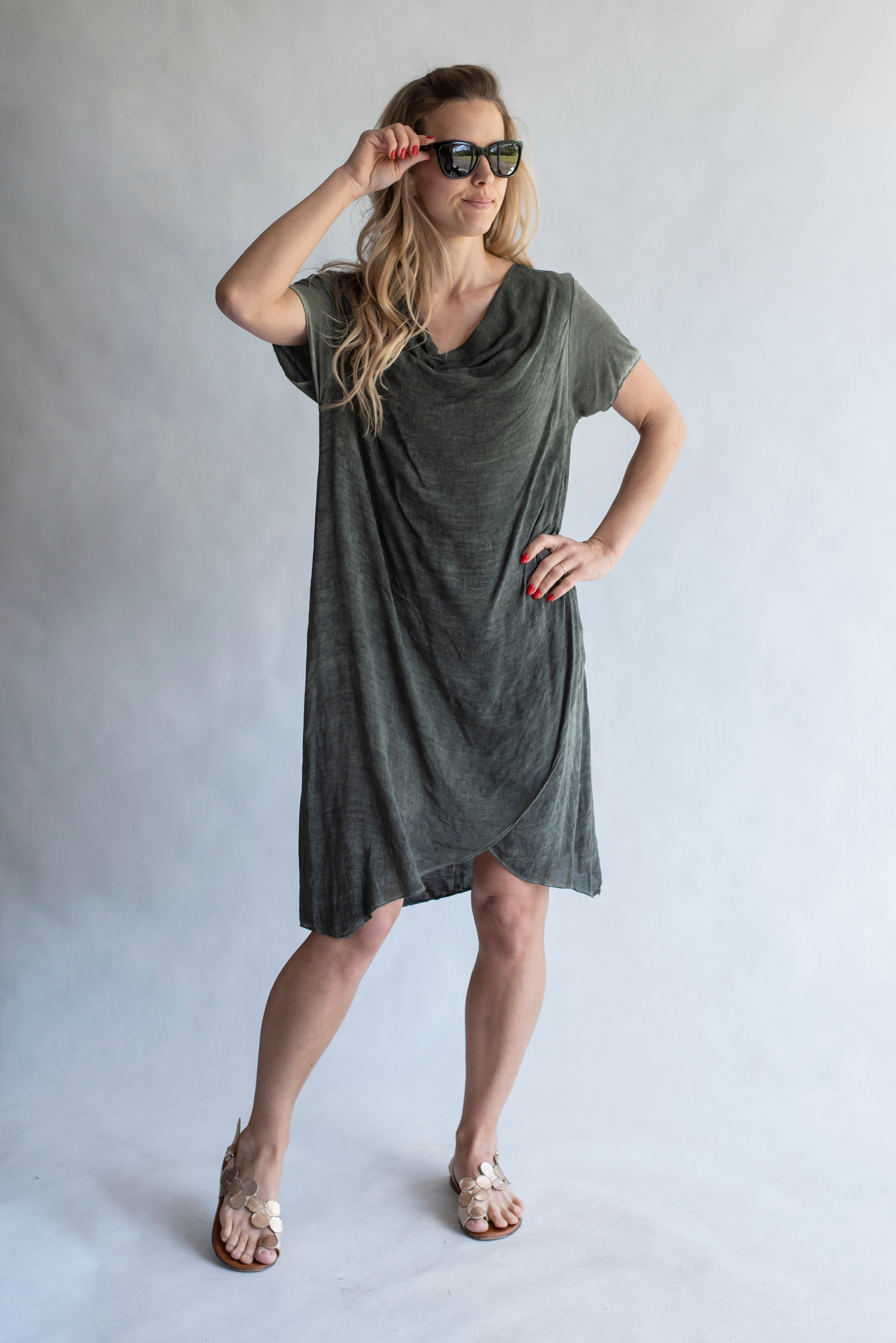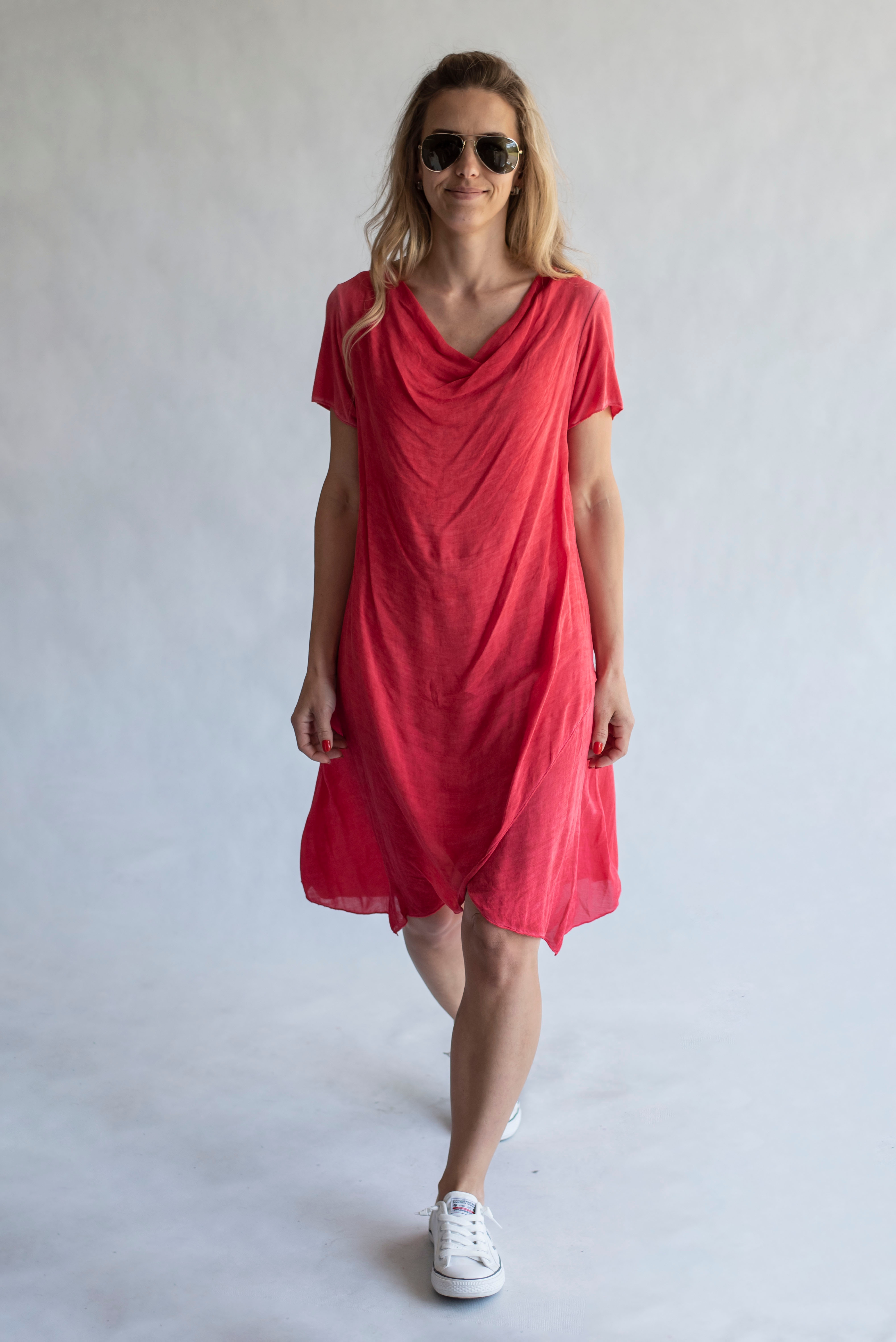 Letní dámské kratší šaty s vodou, odlehčený materiál.