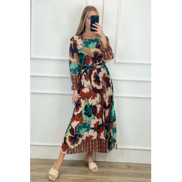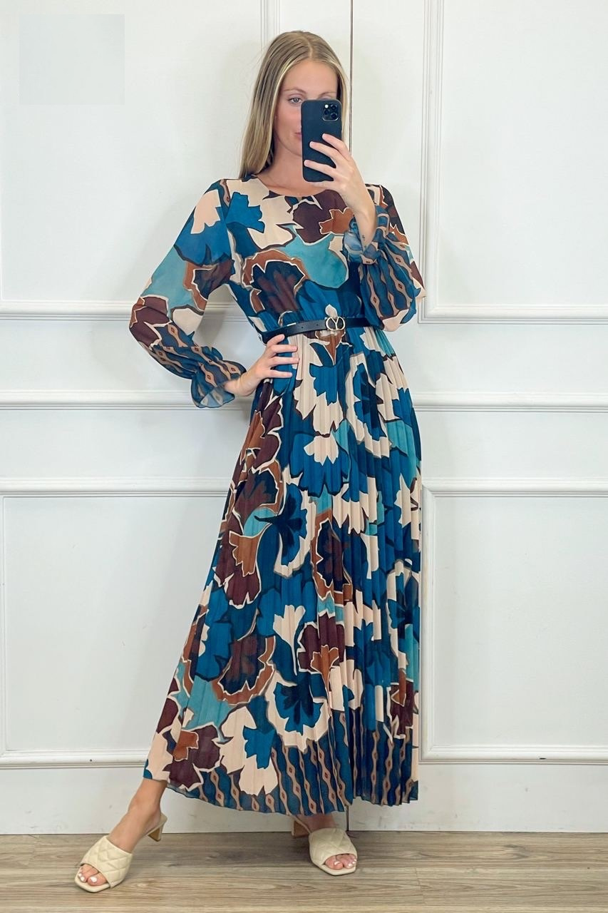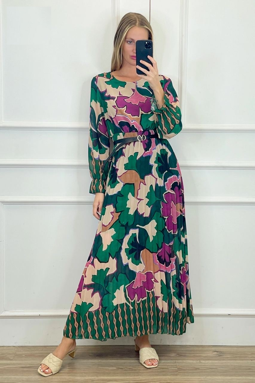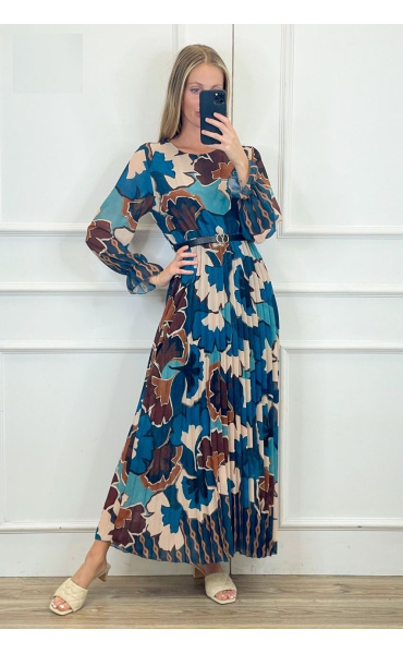 Módní dlouhé plisé dámské šaty s páskem , podšívkou a u vpase