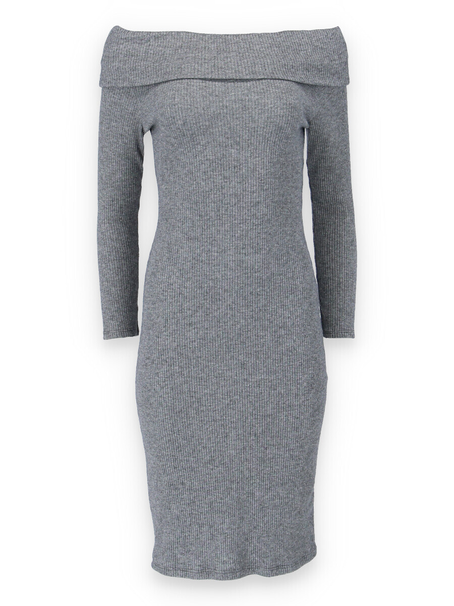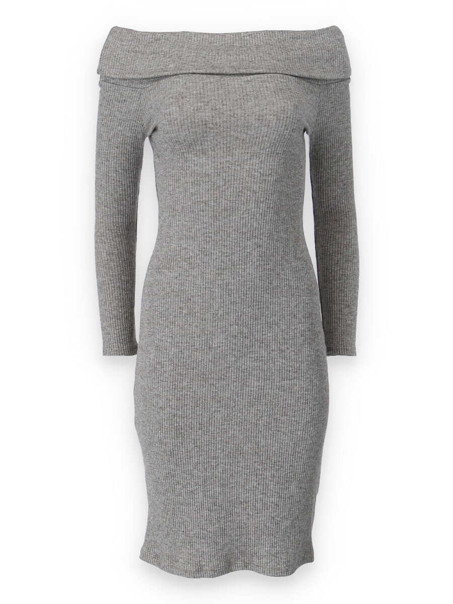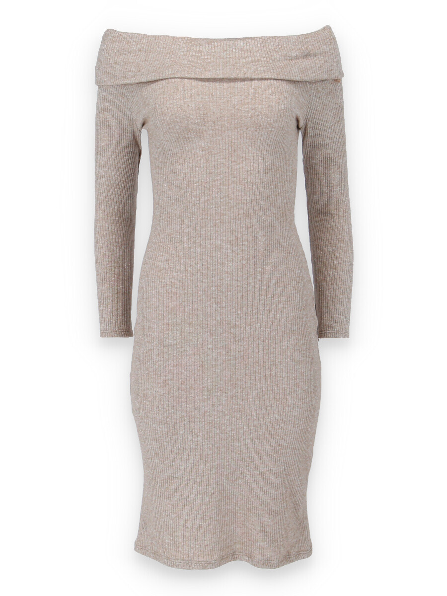 Elegantní šaty s dlouhým rukávem a šálovým límcem na stažení přes ramena. Šaty jsou z žebrovaného materiálu.