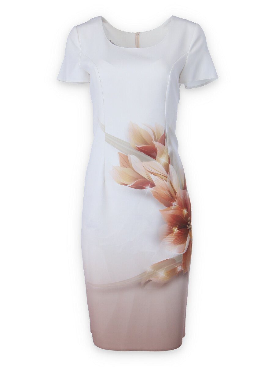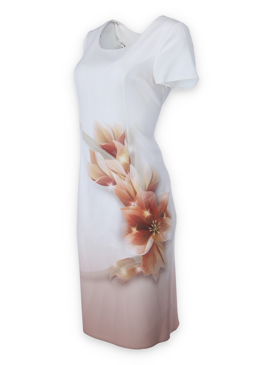 Letní šaty s krátkým rukávem elegantní bordurou vhodné na denní nošení i pro společenskou událost, zapínání na skrytý zip, bez podšívky.