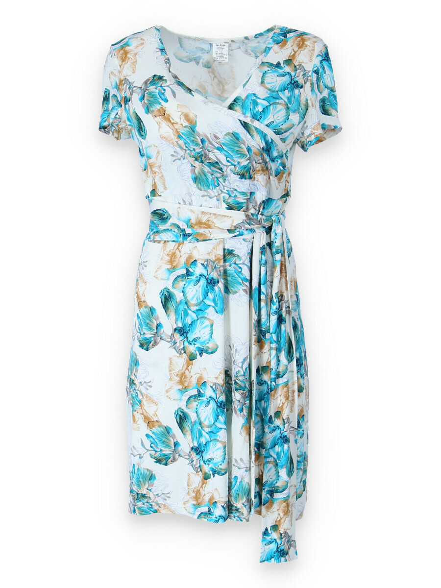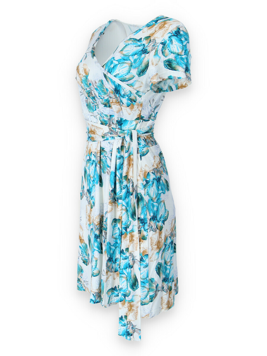 Denní šaty s krátkým rukávem a elegantními kasami po stranách.