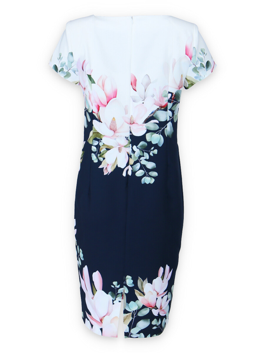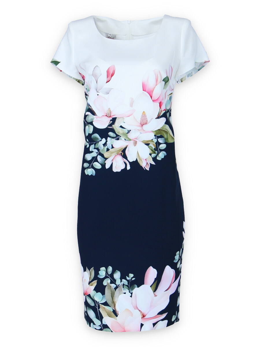 Letní šaty s krátkým rukávem elegantní bordurou vhodné na denní nošení i pro společenskou událost, zapínání na skrytý zip, bez podšívky.