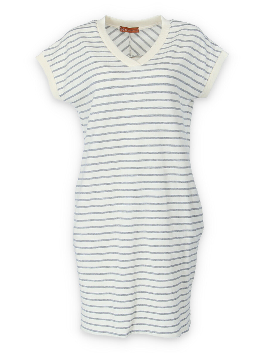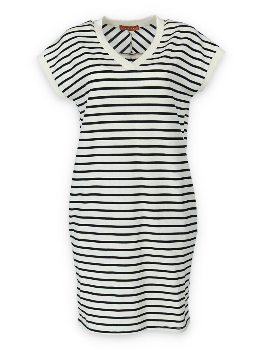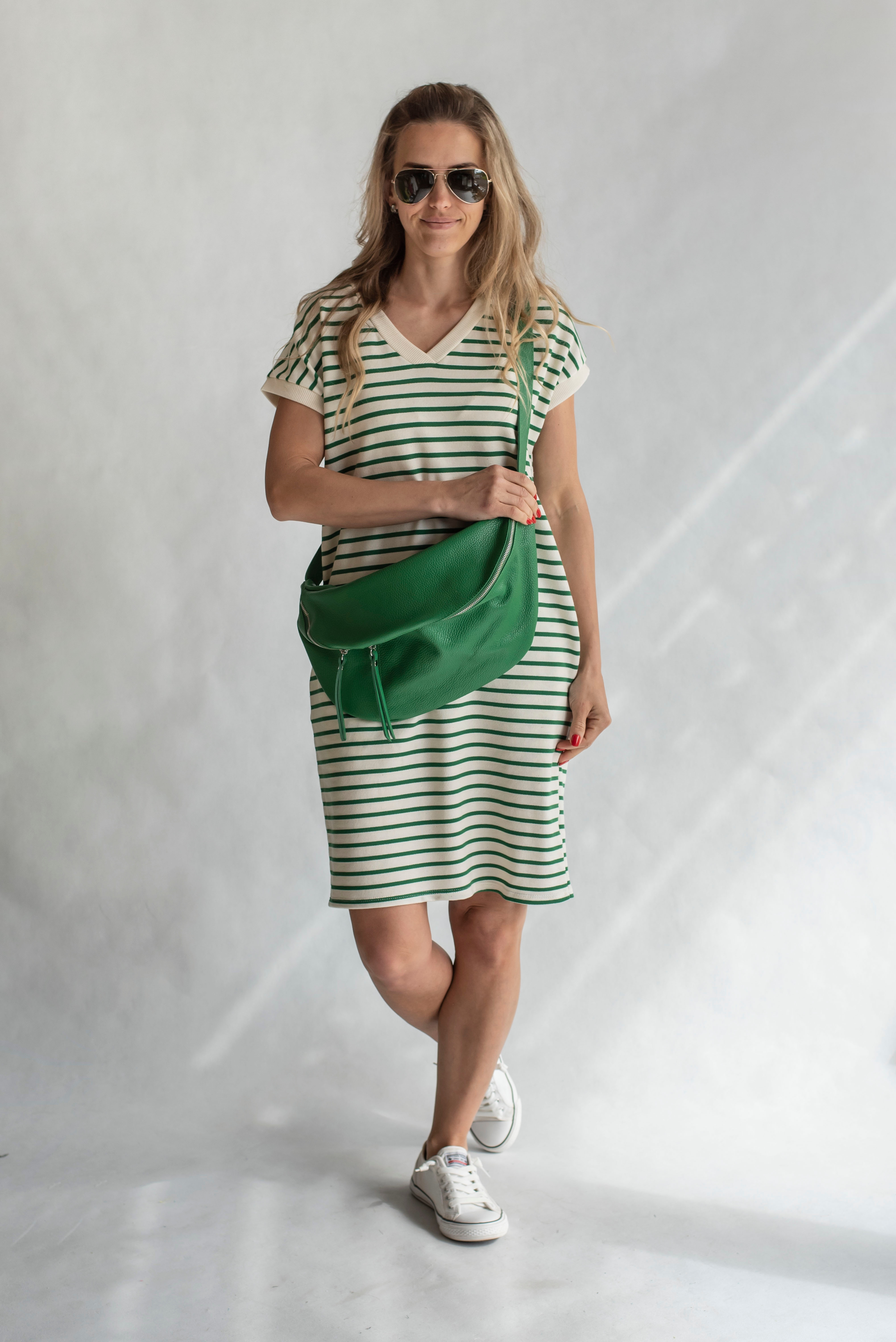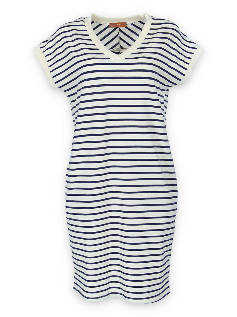 Dámské trendy šaty s proužkem, výstřihem do "V", všité kapsy, Italské značky Mooij