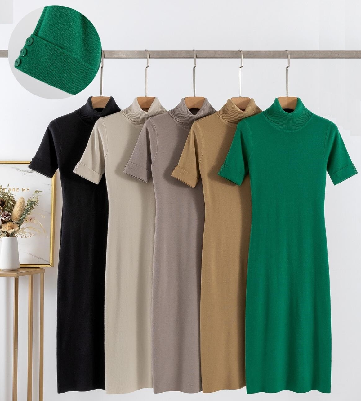 Módní dámské šaty s rolákem a krátkým rukávem . Dovoz Itálie