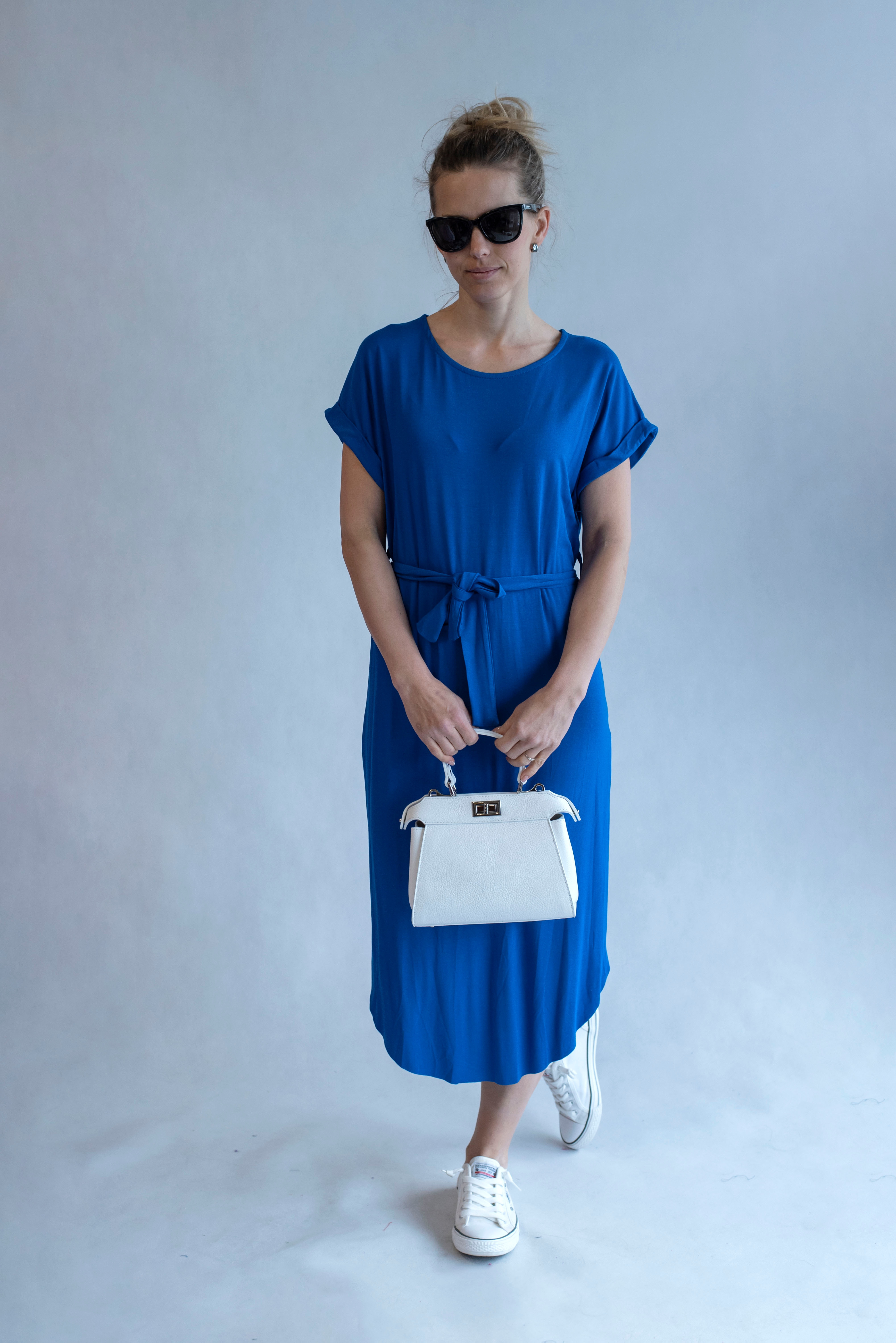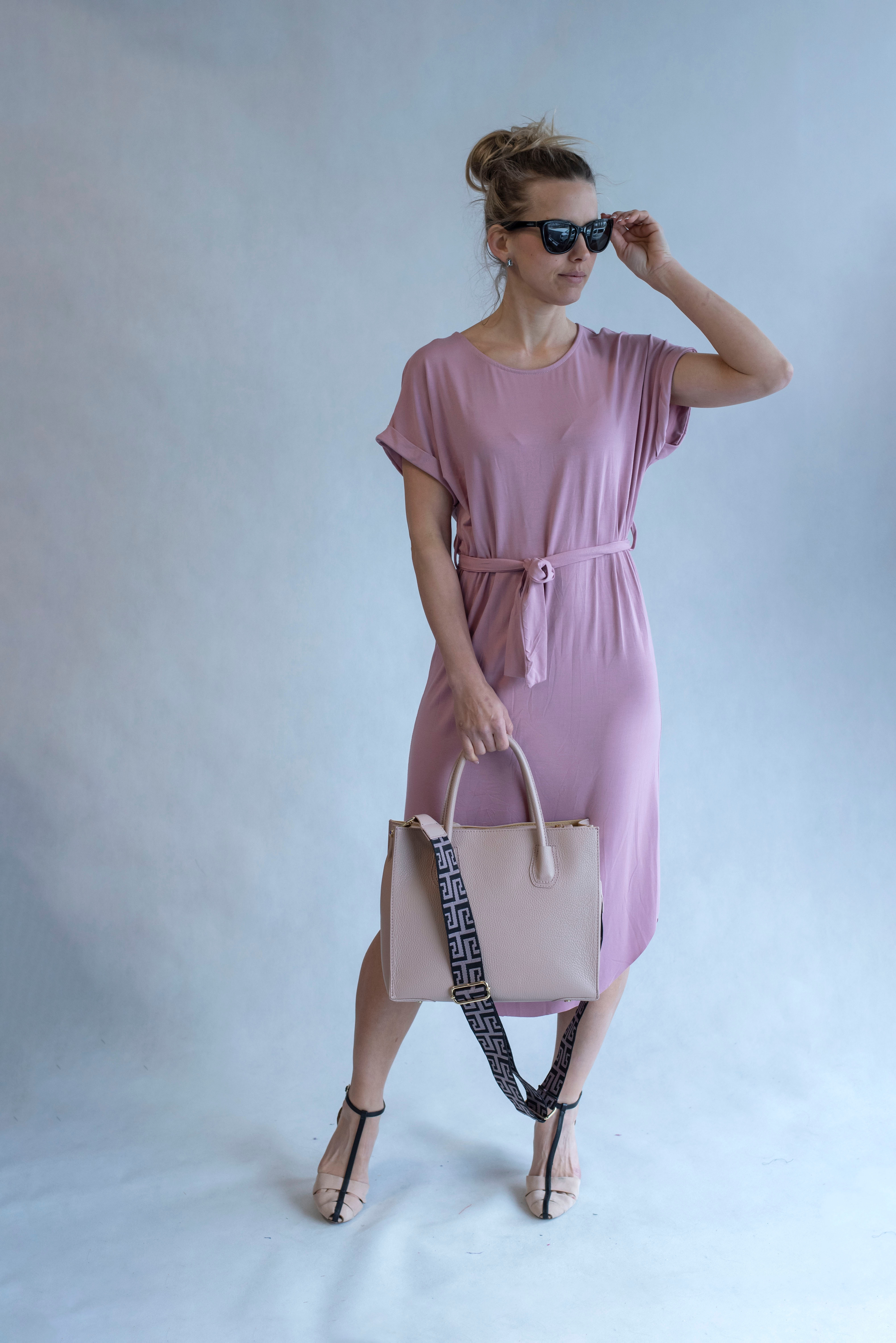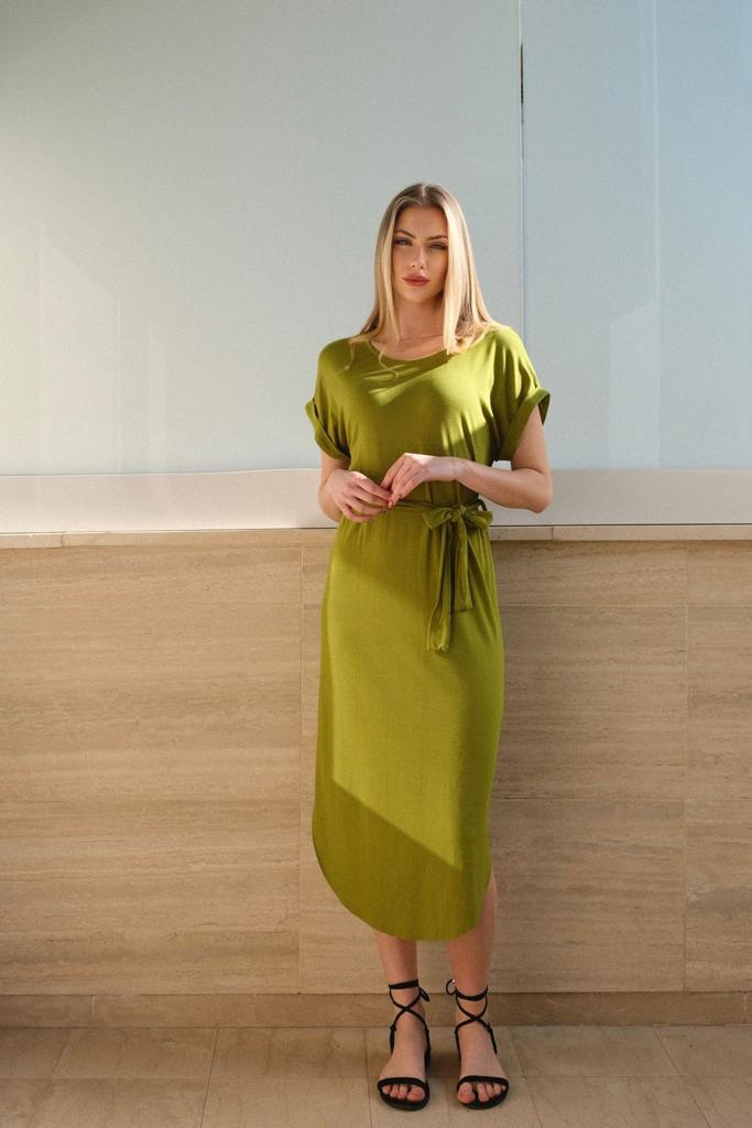 Elegantní, dámská volnočasové šat pro denní nošení z lehkého a vzdušného materiálu , kulatý výstřih , krátký rukáv, vyrobeno v Italii