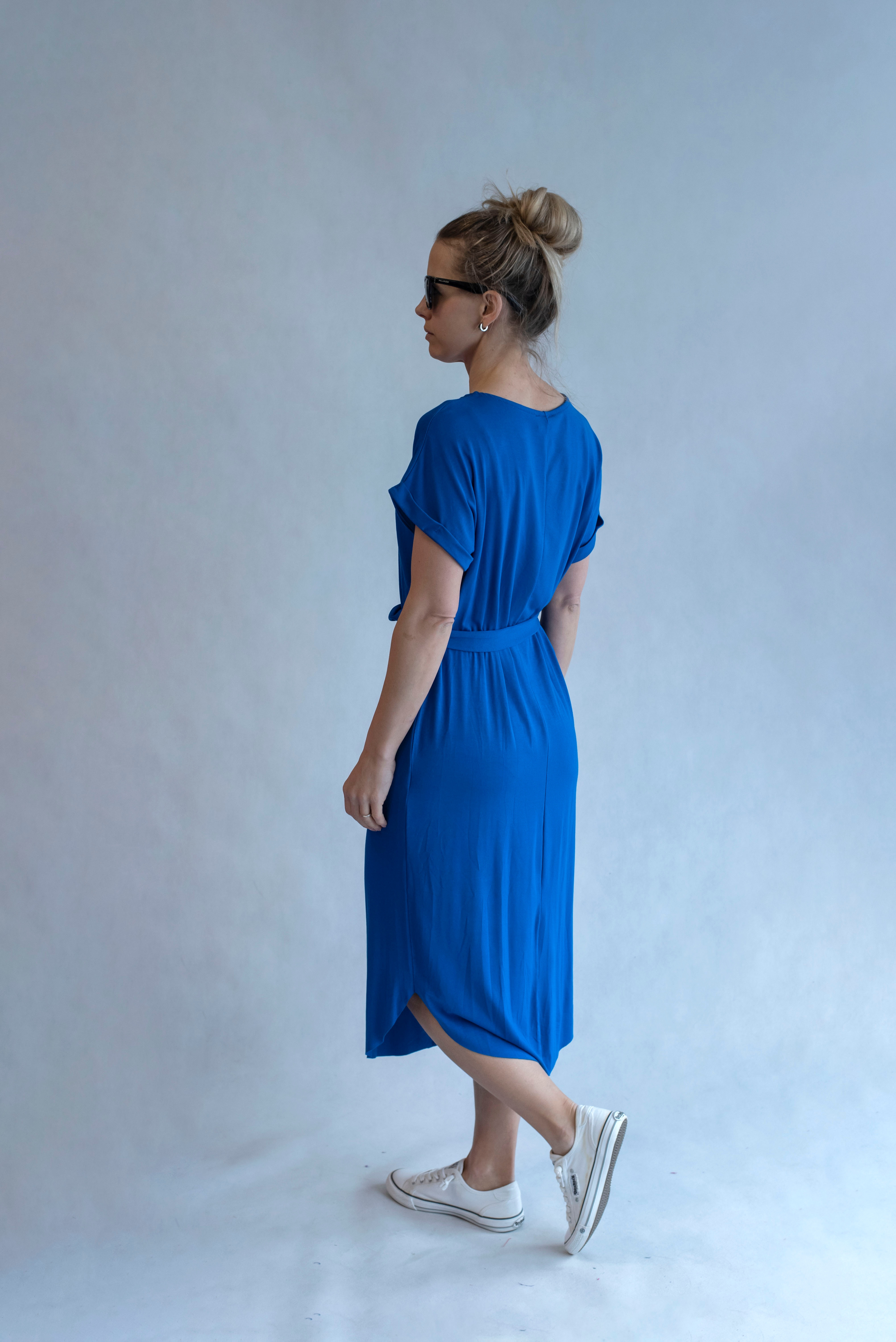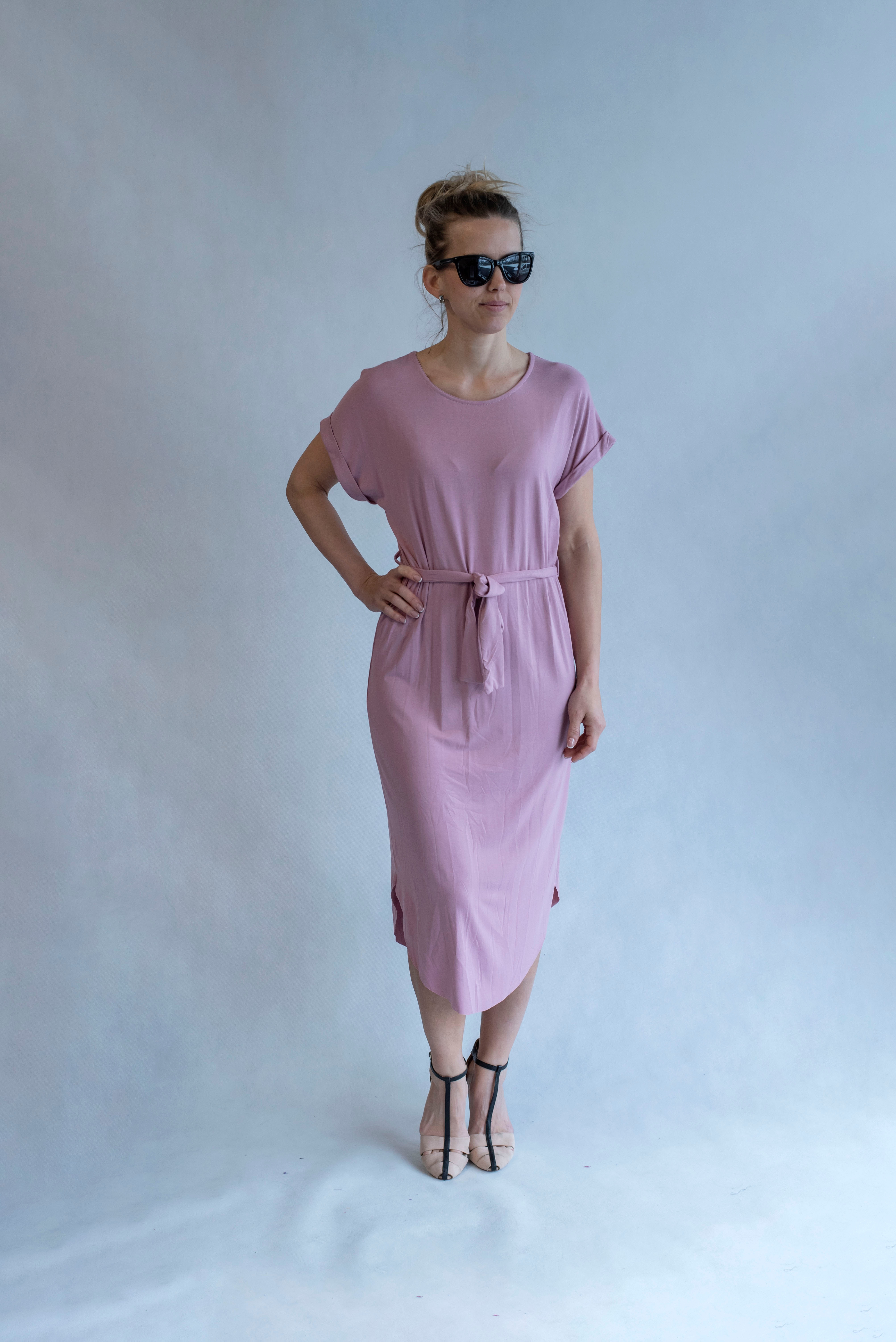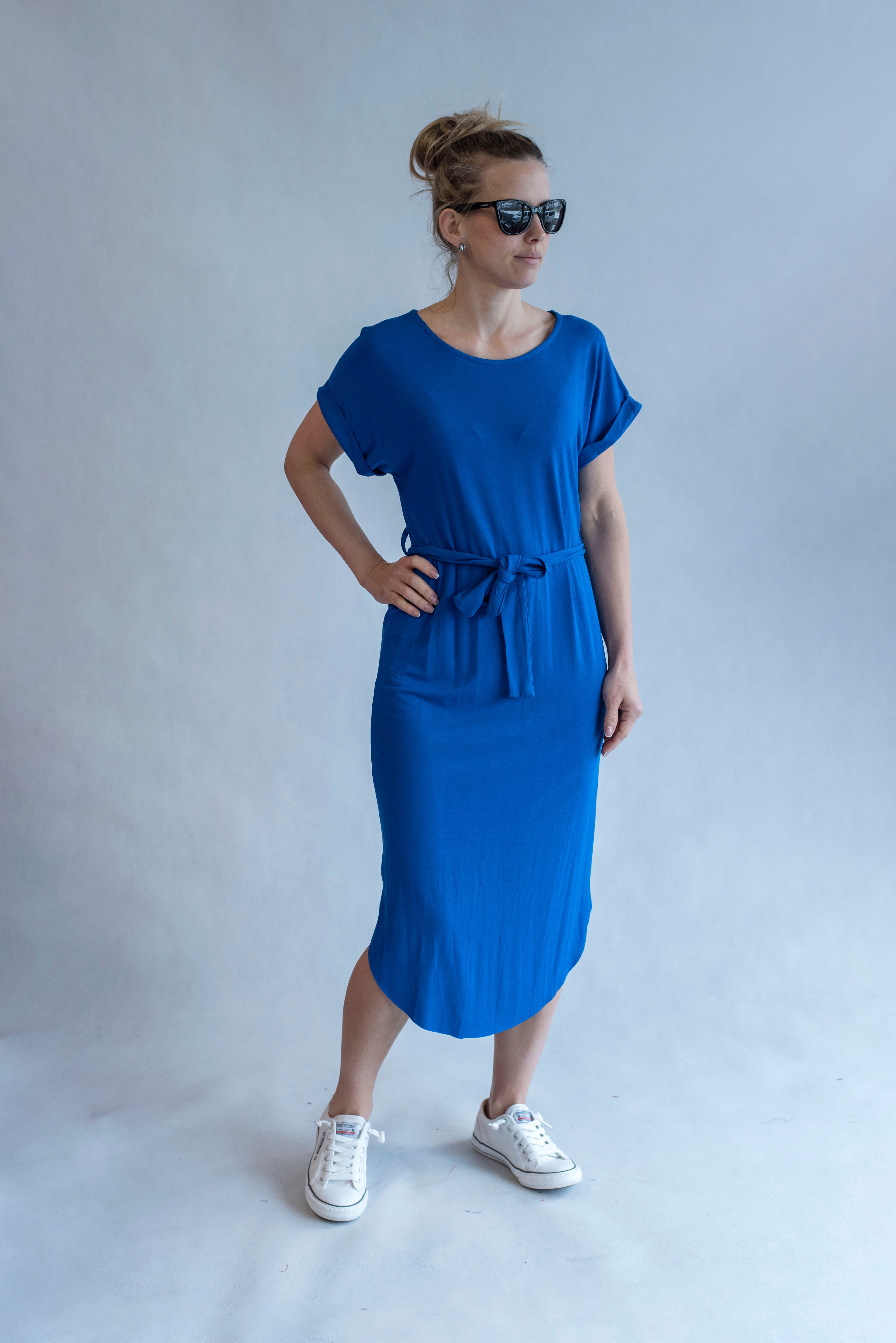 Elegantní, dámská volnočasové šat pro denní nošení z lehkého a vzdušného materiálu , kulatý výstřih , krátký rukáv, vyrobeno v Italii