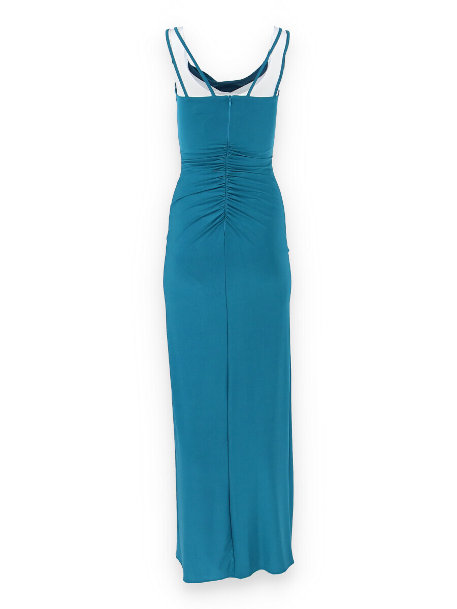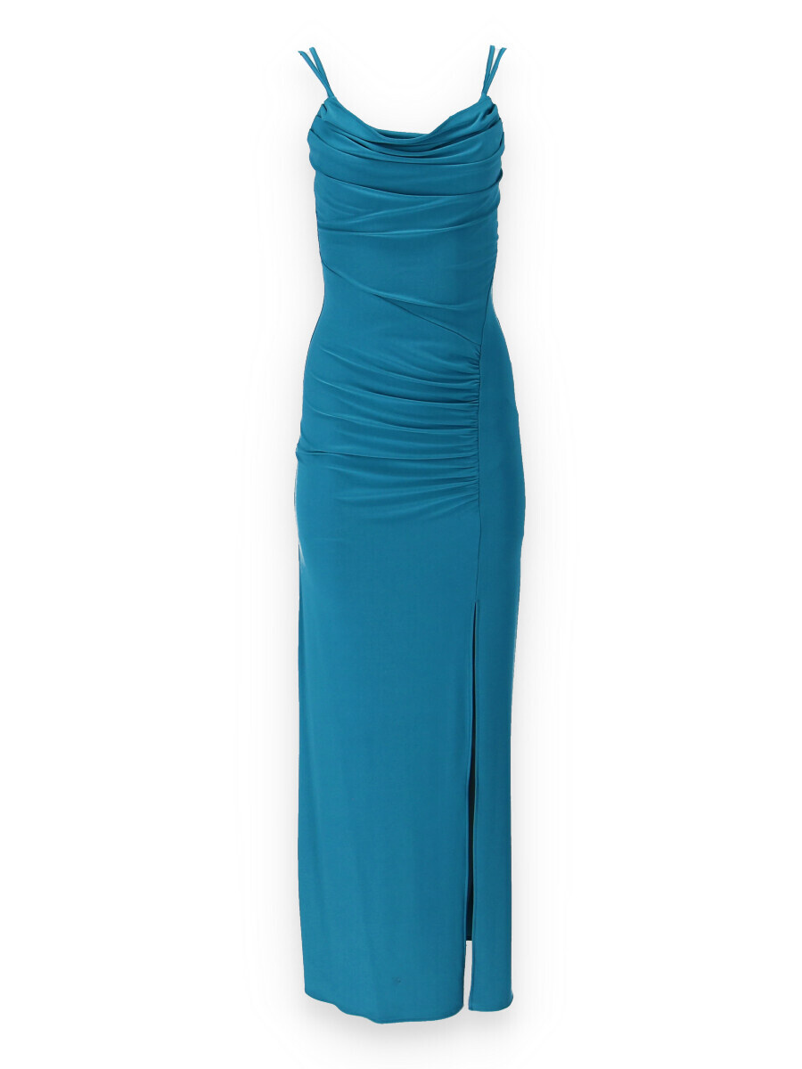 Společenské dlouhé šaty na ramínka s vodou, zapínání na zip