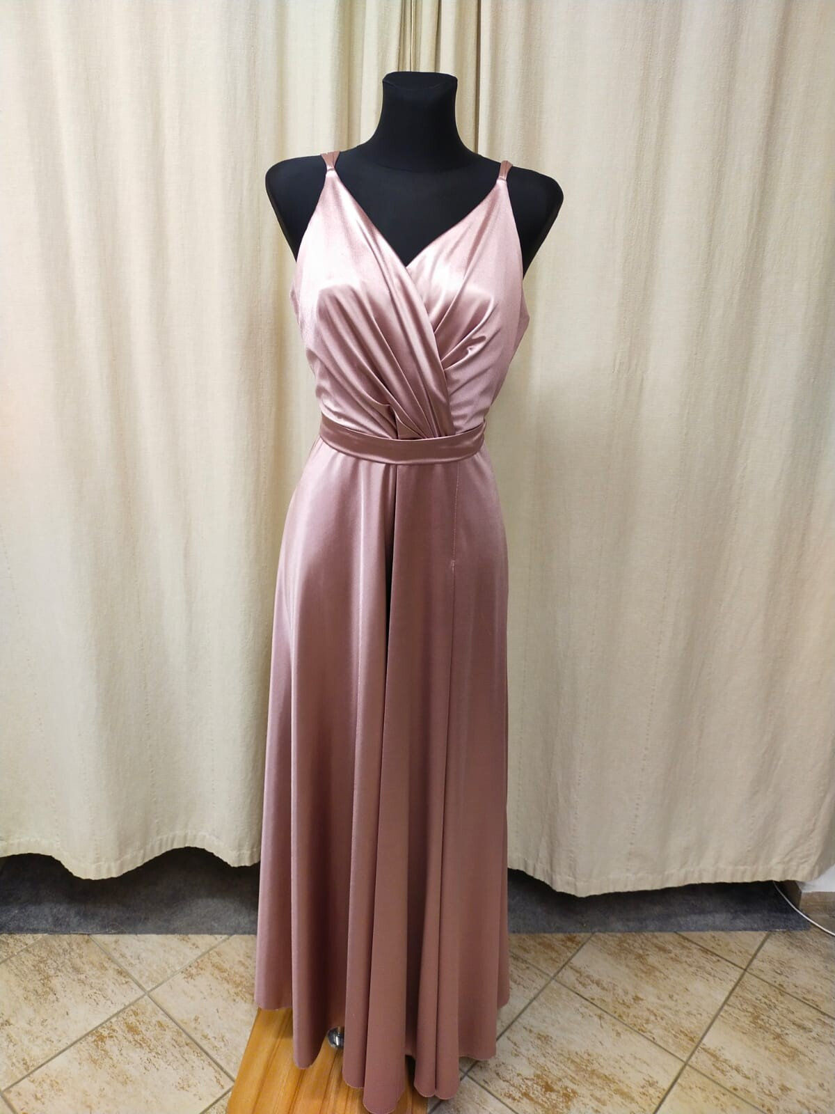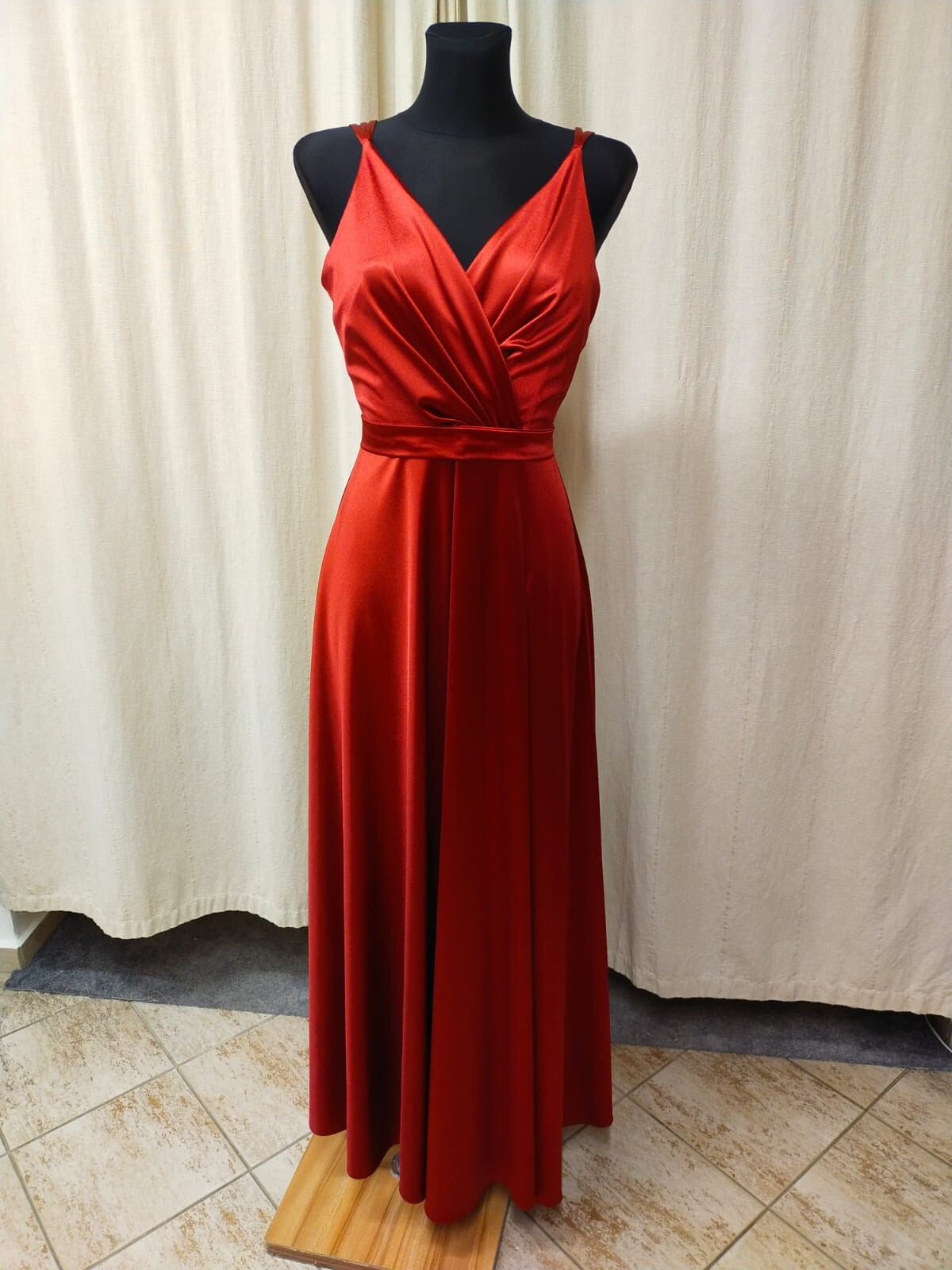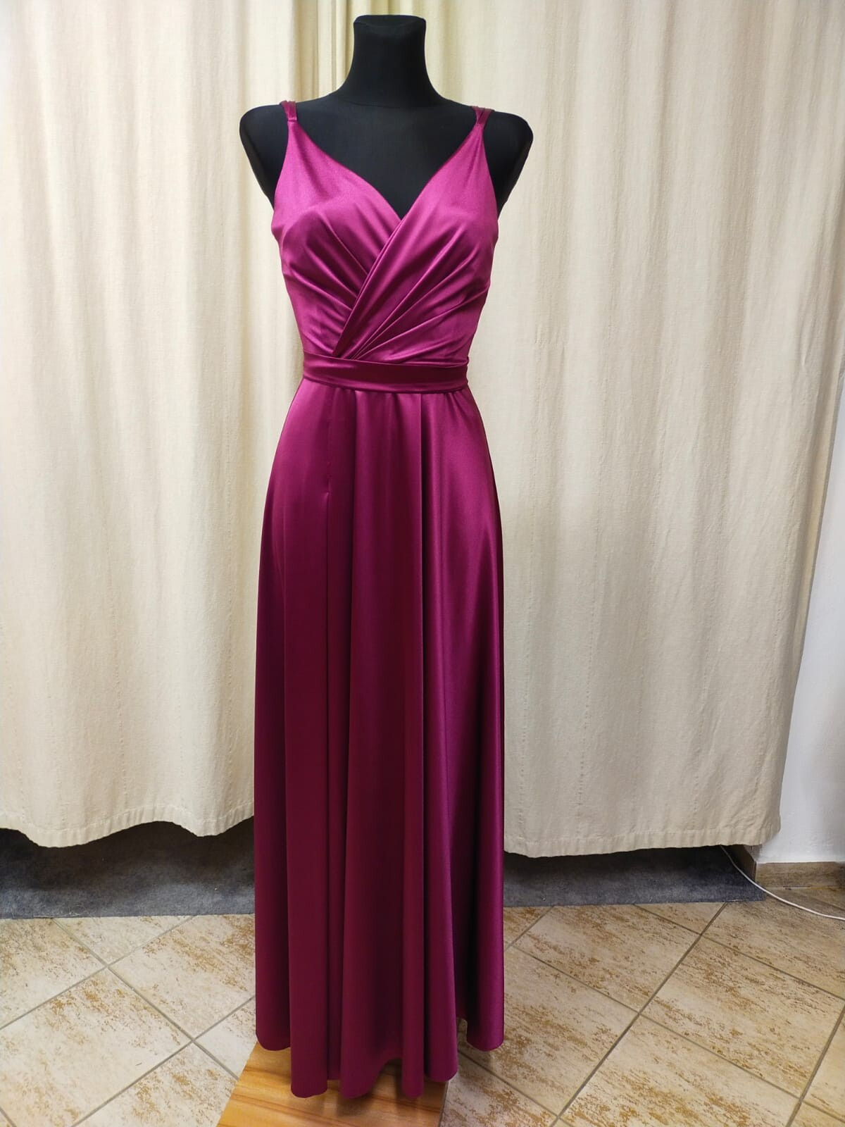 Šaty jsou velice pohodlné s částečně elastickým materiálem drží krásně tvar postavy, nabíraná sukně, bez podšívky , doplněná vázací stuhou v pase, vhodné i do tanečních.