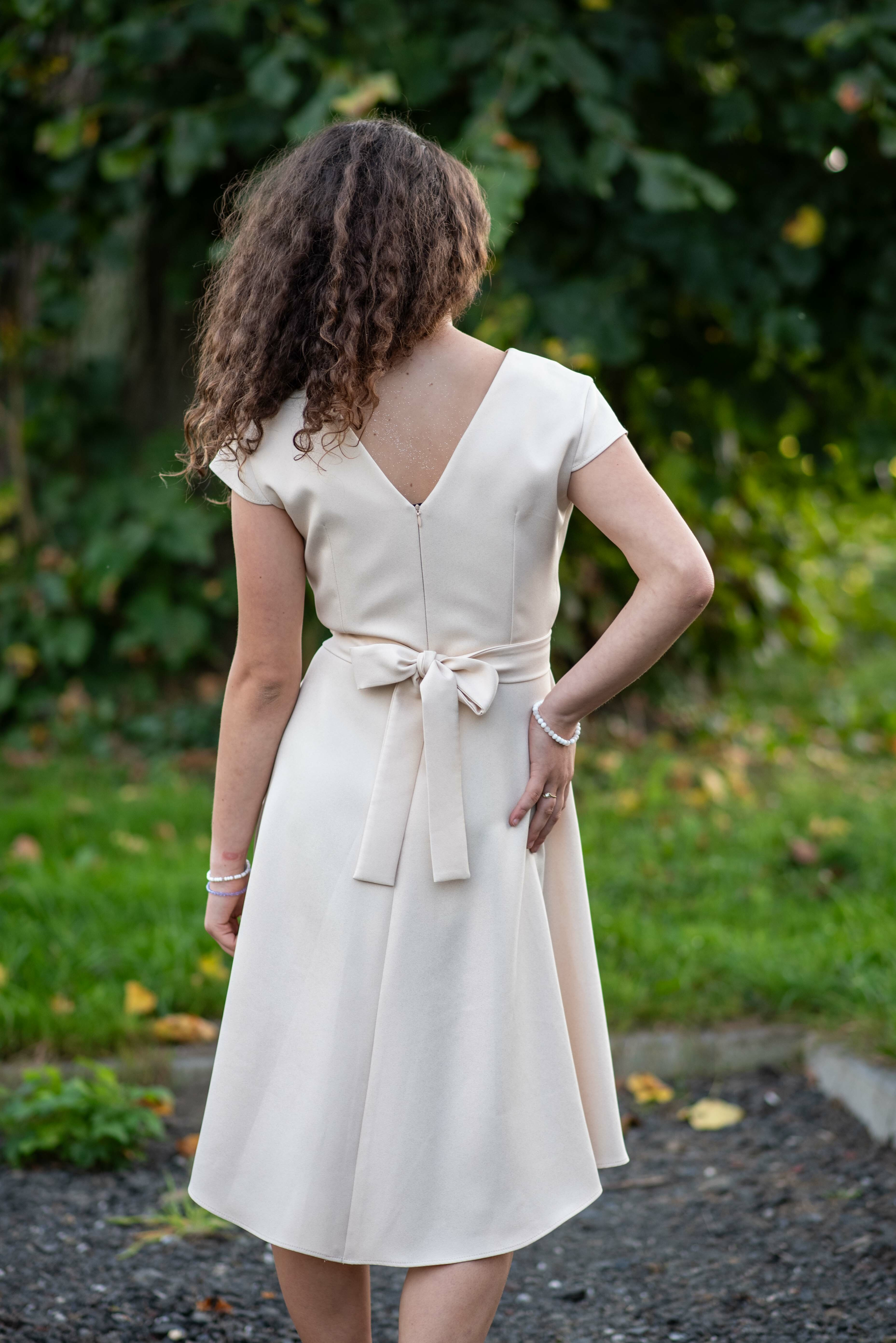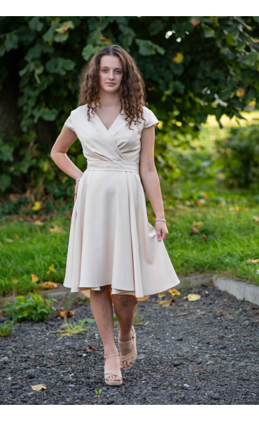 Společenské kratší šaty s vazačkou v pase, zapínání na zip