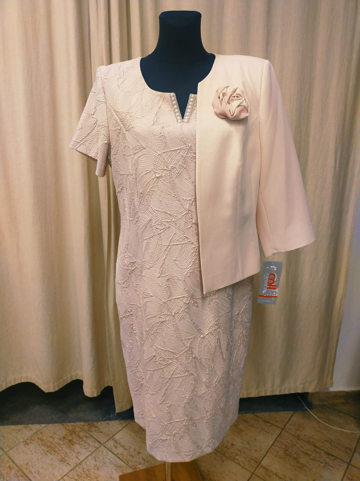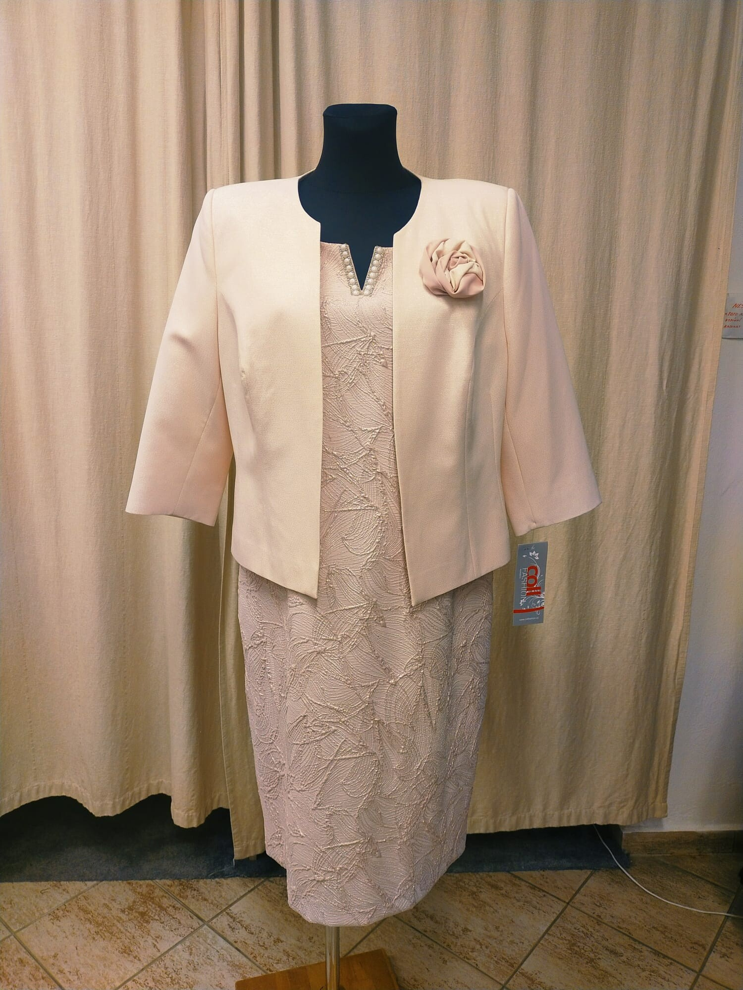 Velice elegantní společenské šaty s krátkým rukávem a kabátkem, určené pro významné rodinné a společenské události.