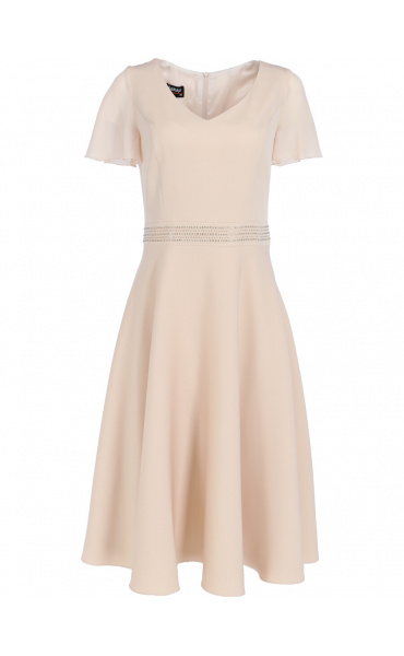 Elegantní šaty s perličkovým pasem s krátkým rukávem určené pro významné rodinné a společenské události. Šaty jsou příjemné a částečně pružné , velice dobře se poddají.