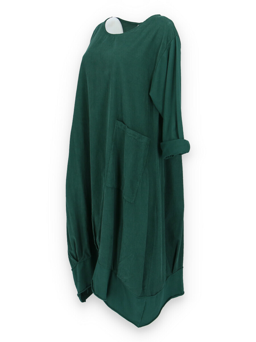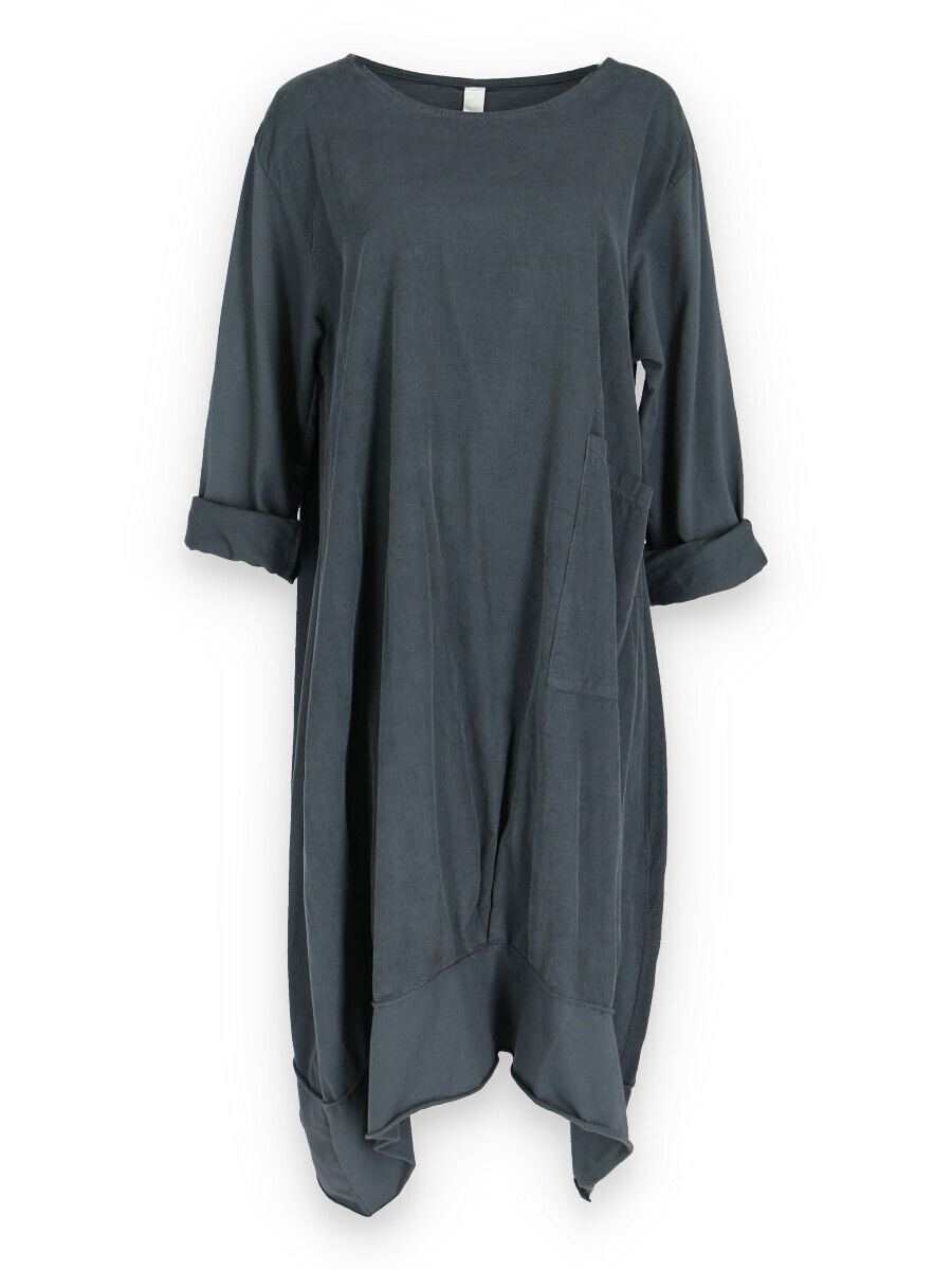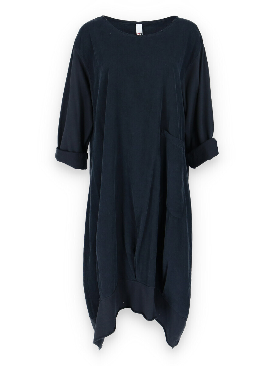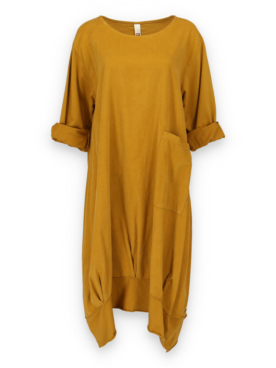 Šaty z bavlněného manšestru, dlouhým rukávem a kapsou na pření straně kapsami