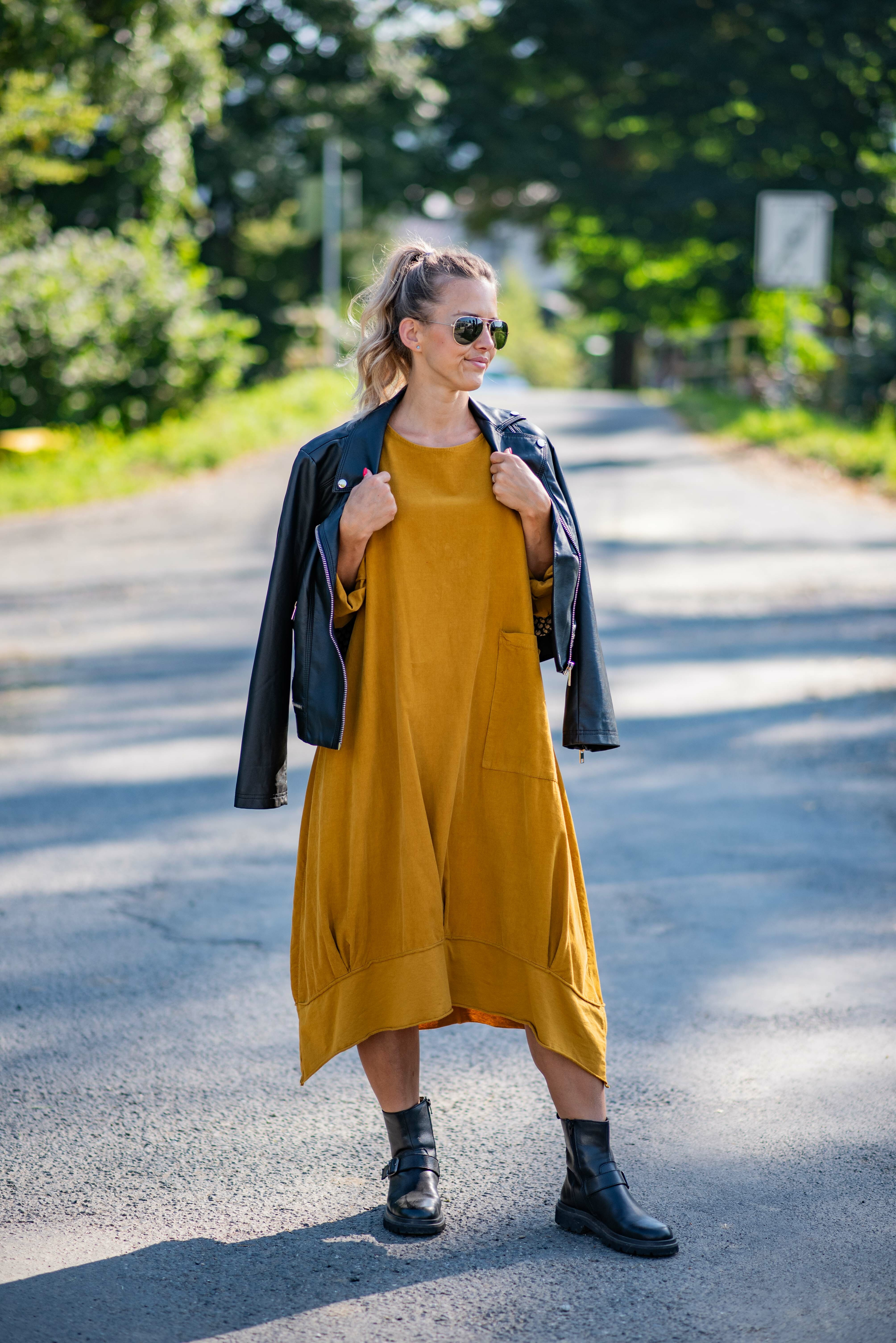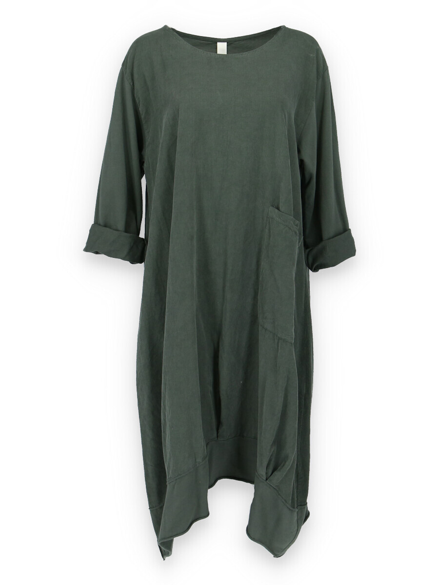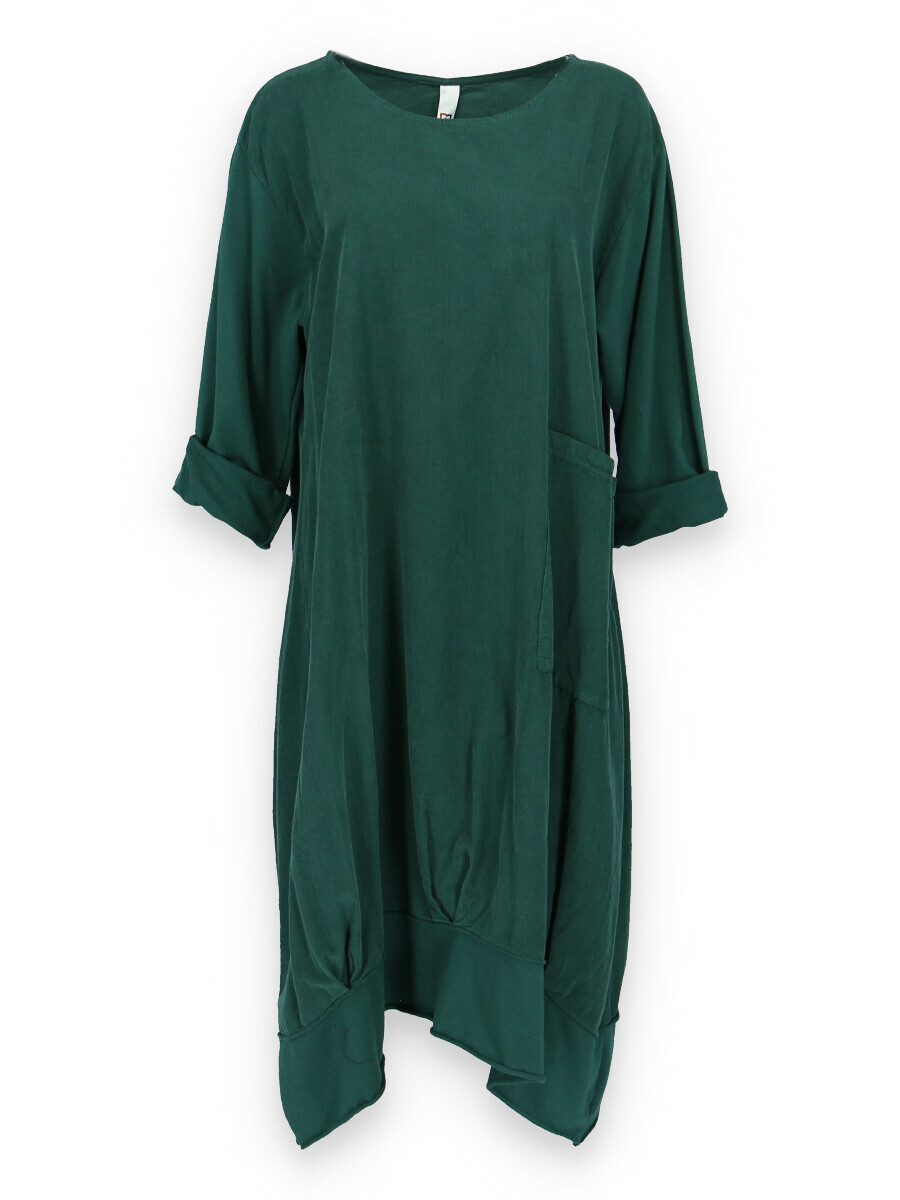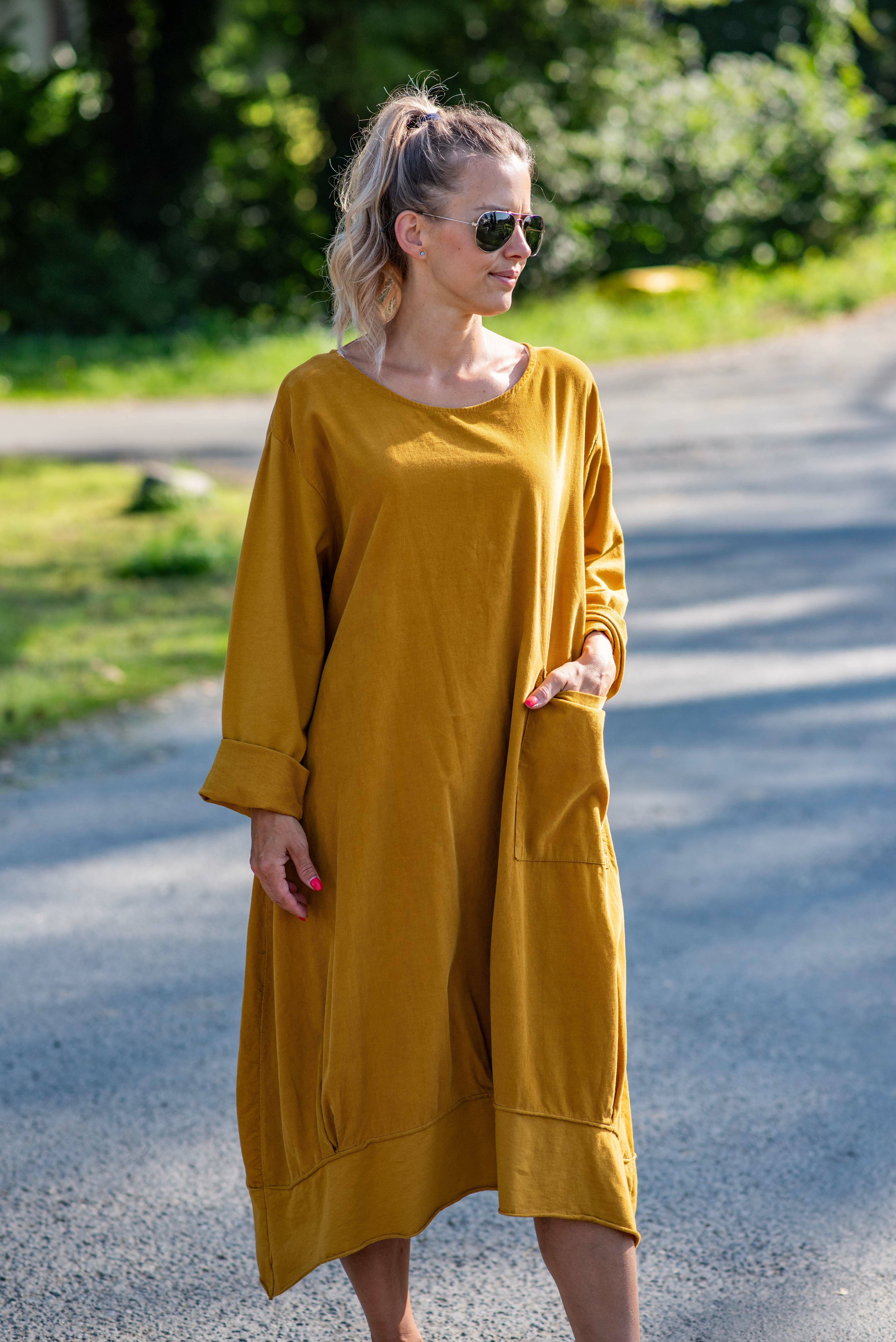 Šaty z bavlněného manšestru, dlouhým rukávem a kapsou na pření straně kapsami