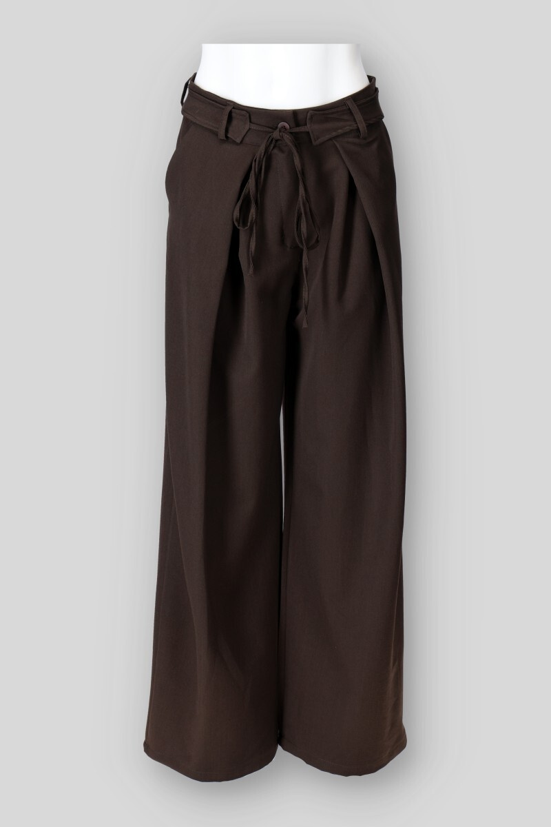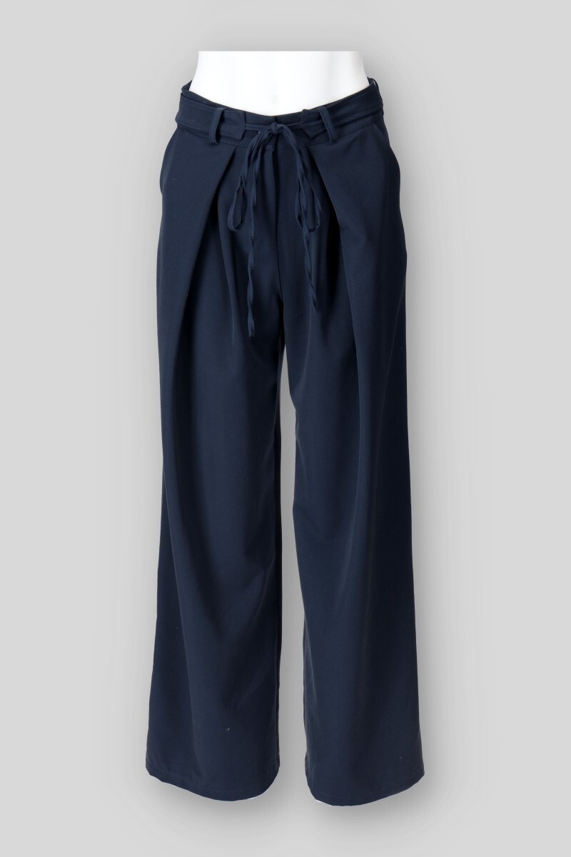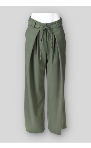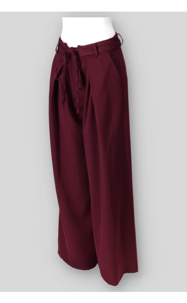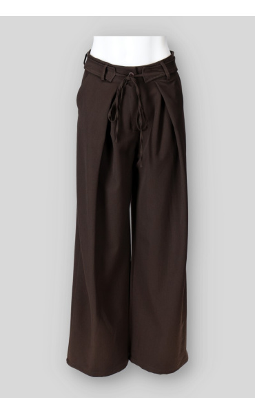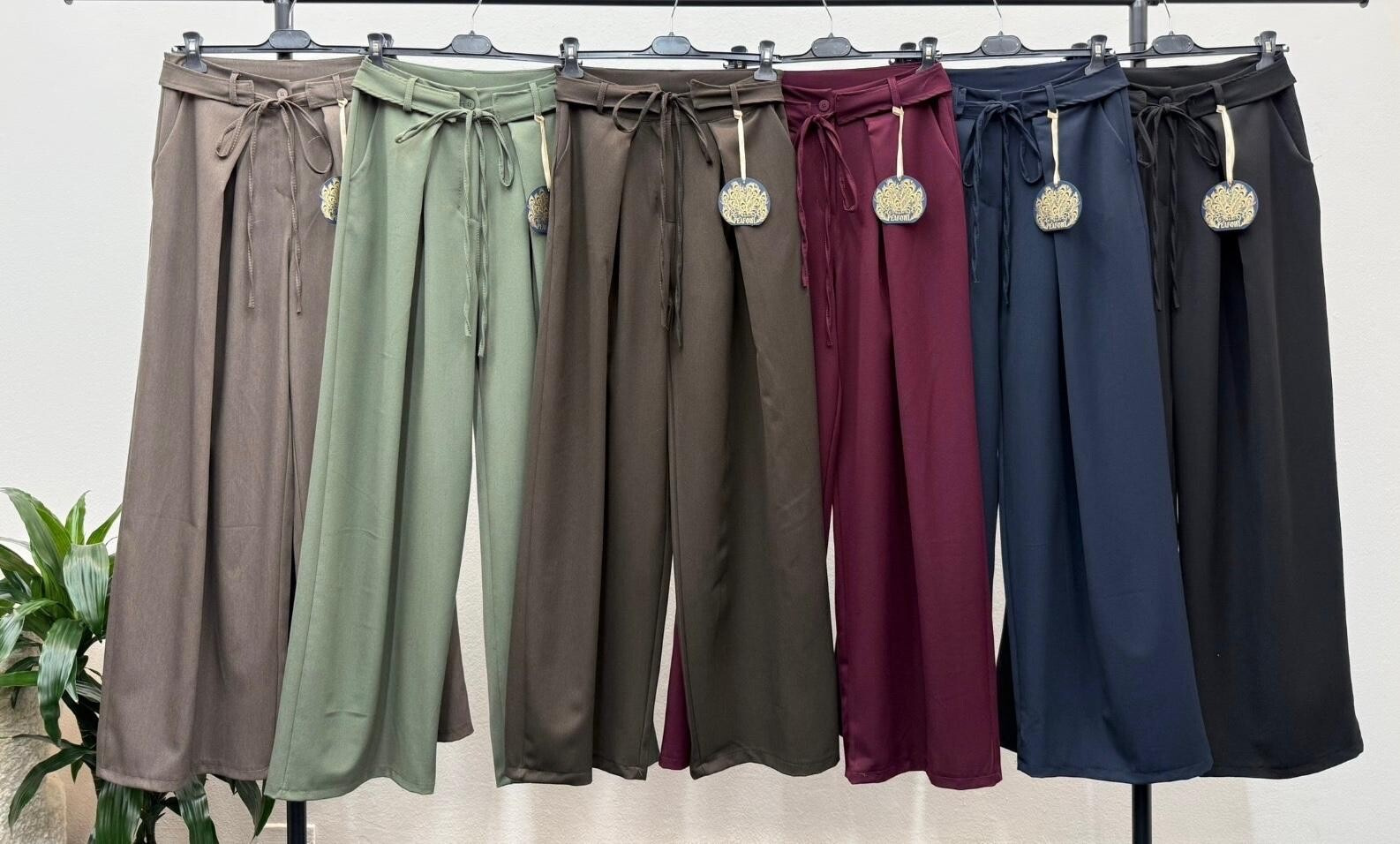 Trendy široké kalhoty v vázáním v pase. Kalhoty mají široké nohavice a zapínání na knoflík. Vyrobeno v Itálii.