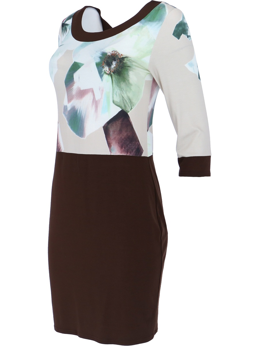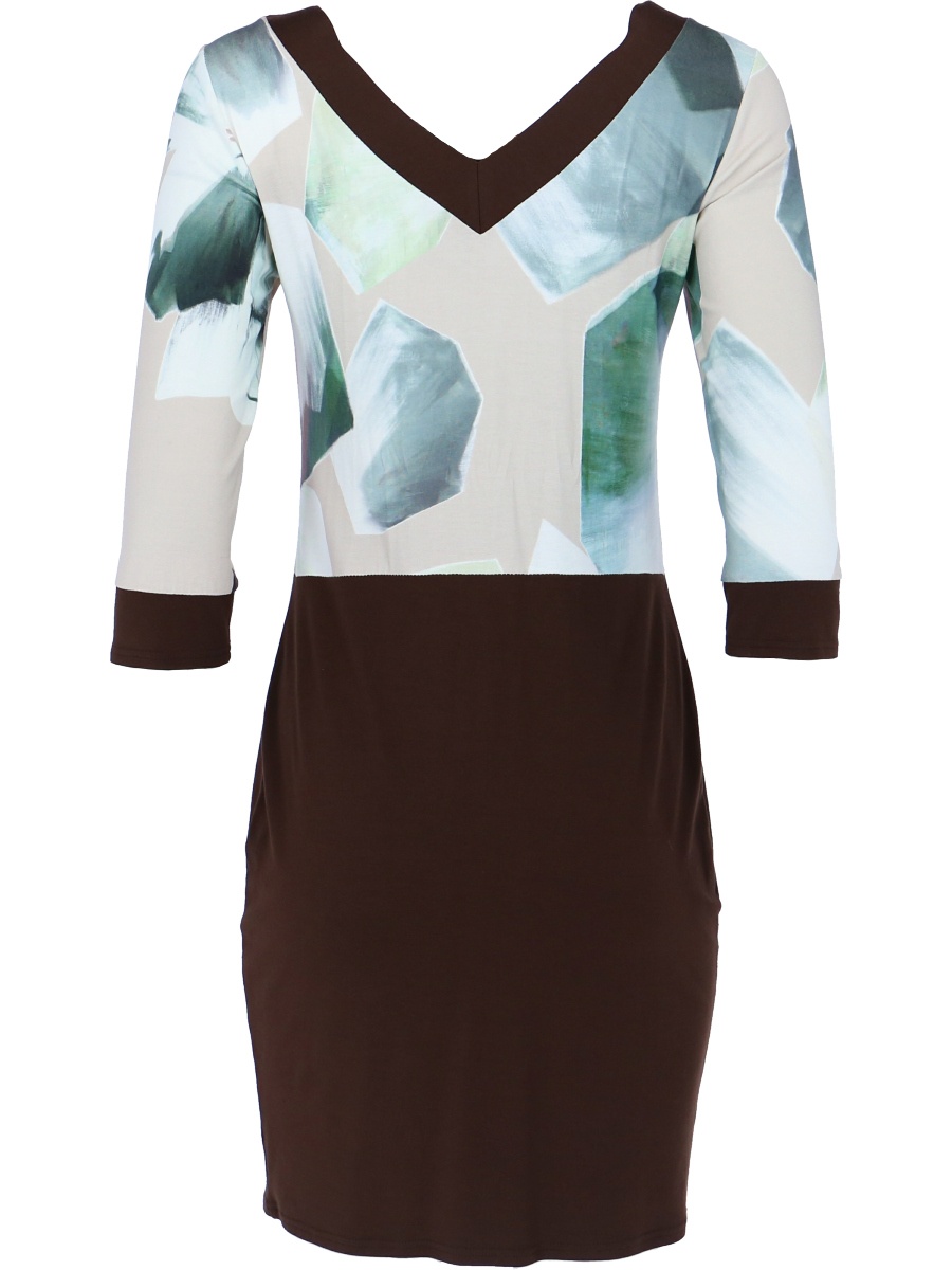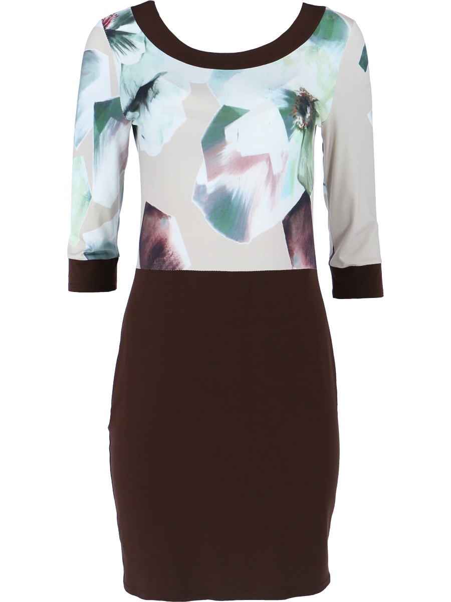 Módní vzorované krátké dámské šaty s 3/4 rukávem. Vyrobeno v Itálii