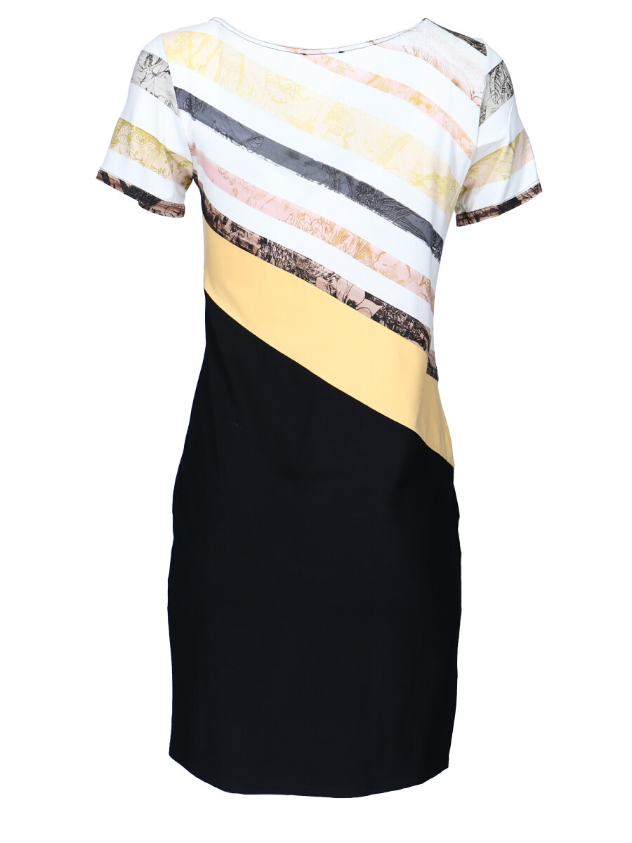Módní vzorované krátké dámské šaty s 3/4 rukávem. Vyrobeno v Itálii