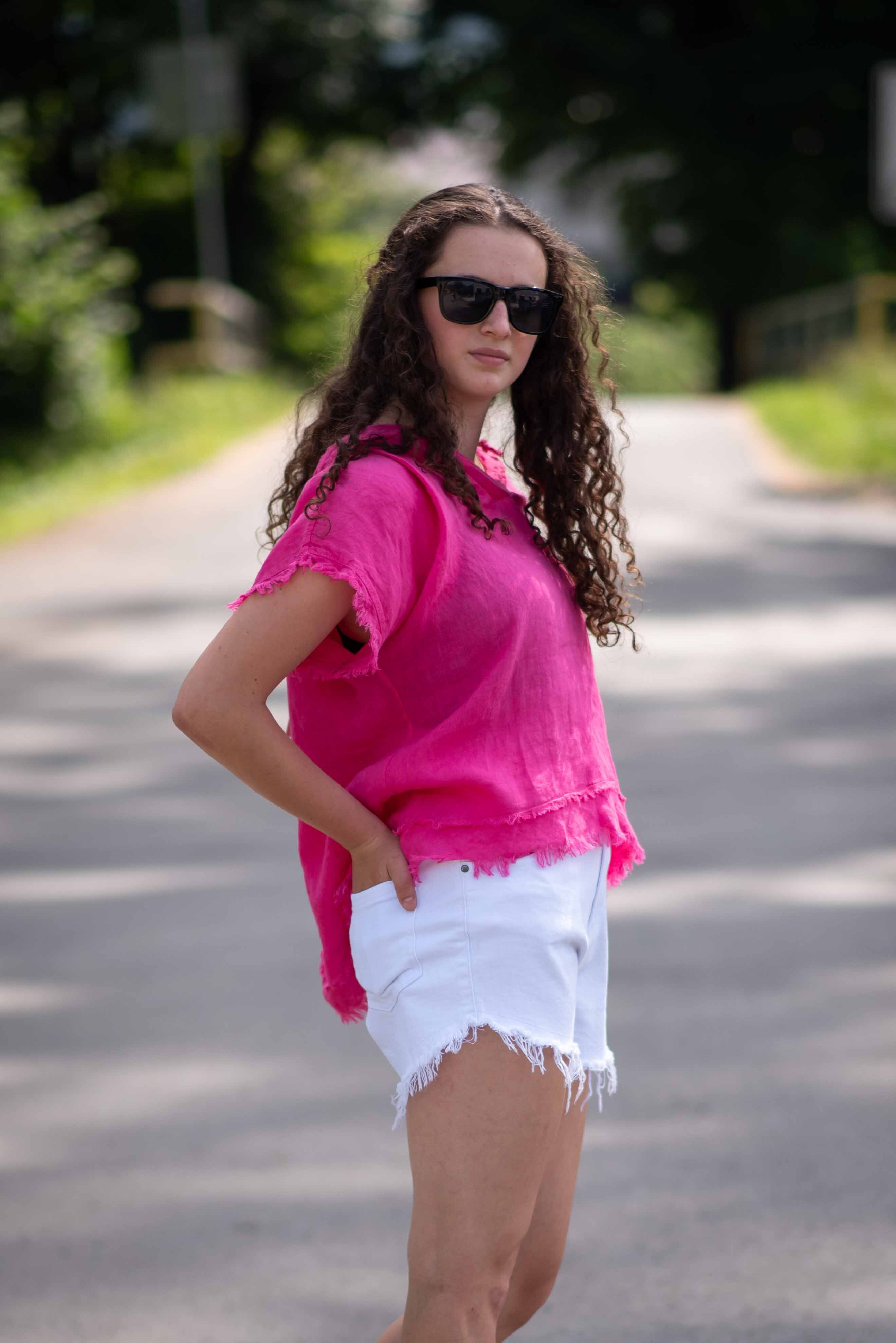 Módní džínové šortky ve spodní částí s trendy třepením, bez zakončení lemem. Itálie