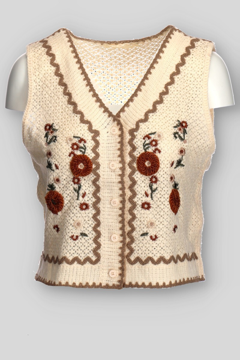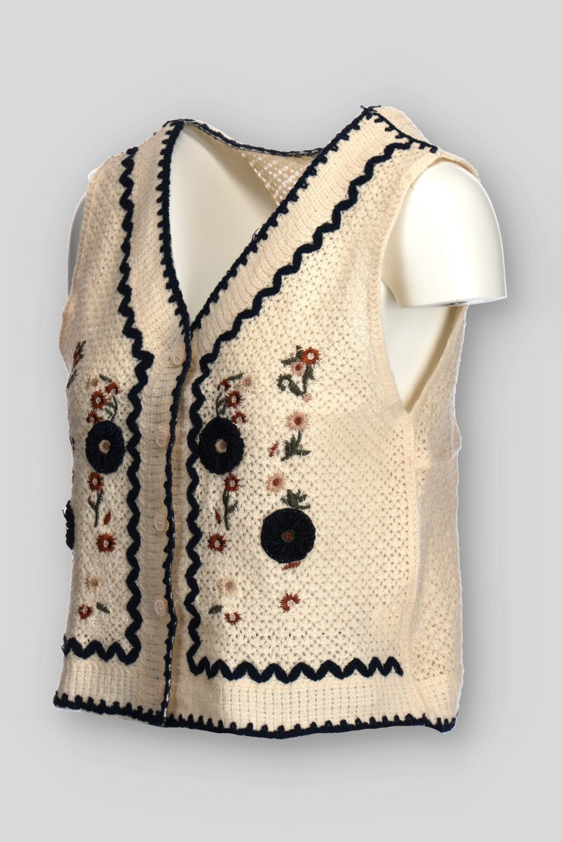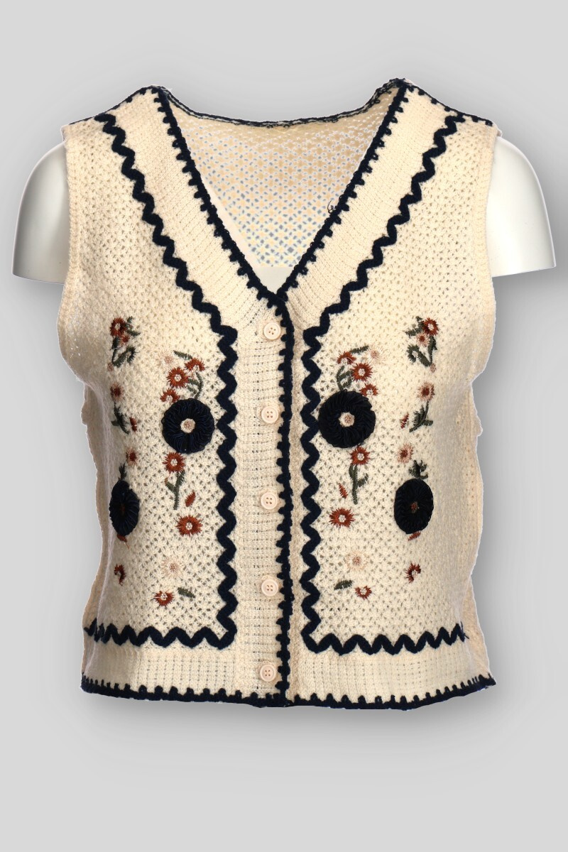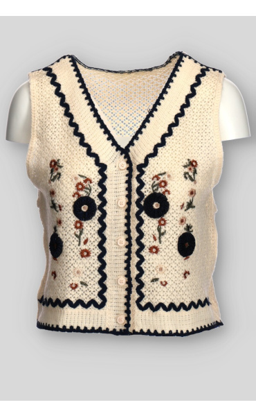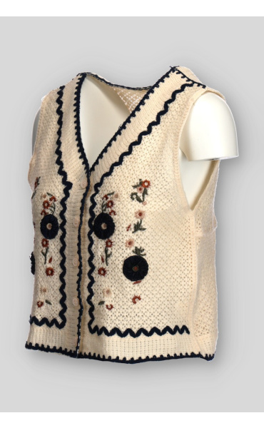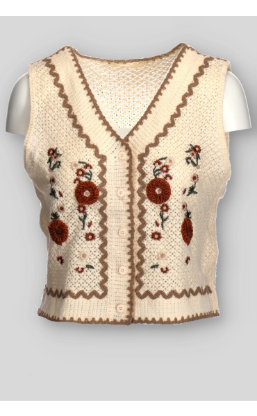 Dámská krátká háčkovaná vesta se vzorem