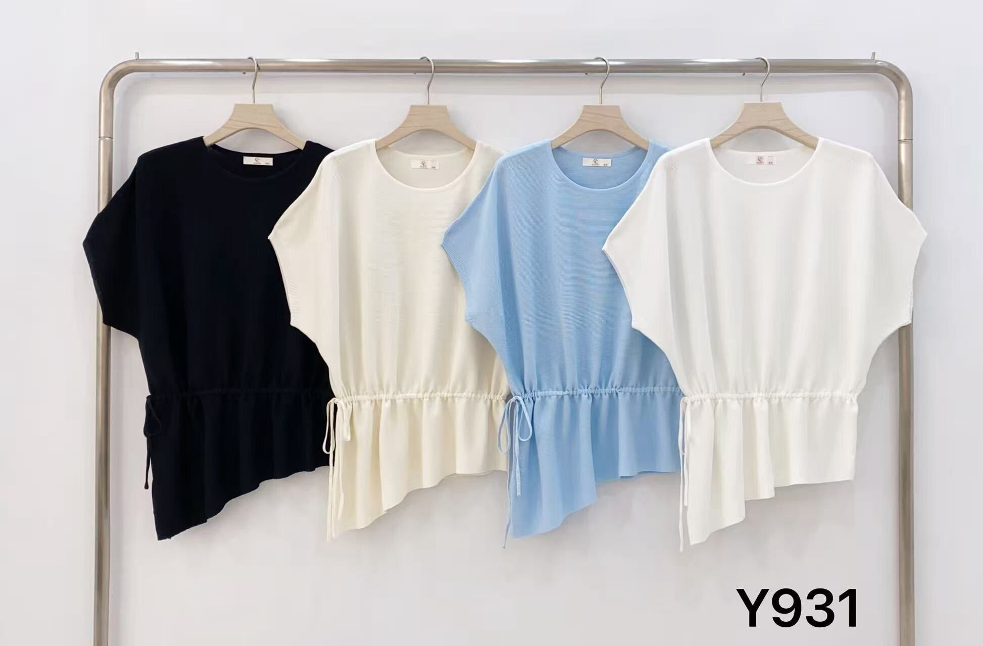 Stylová halenka asymetrická. Halenka je volnějšího střihu, má krátký rukáv, kulatý výstřih a v pase má regulaci stažení šňůrkou.