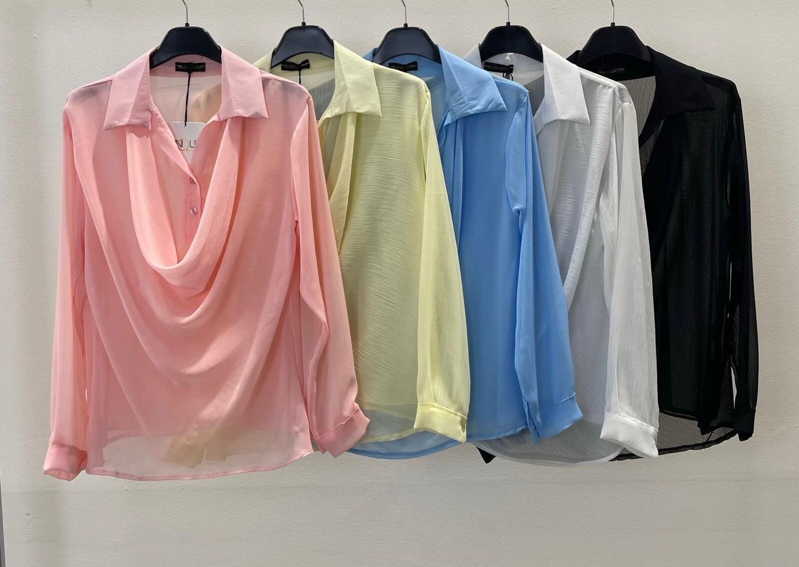 Stylová košile s vodou a límečkem. Košile má dlouhý rukáv, zakončený na knoflík.