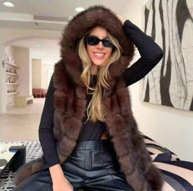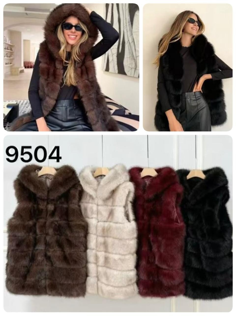 Stylový kožešinová vesta s kapucí z krásného jemného eko kožíšku. Vesta má zapínání na zip a podšívku.