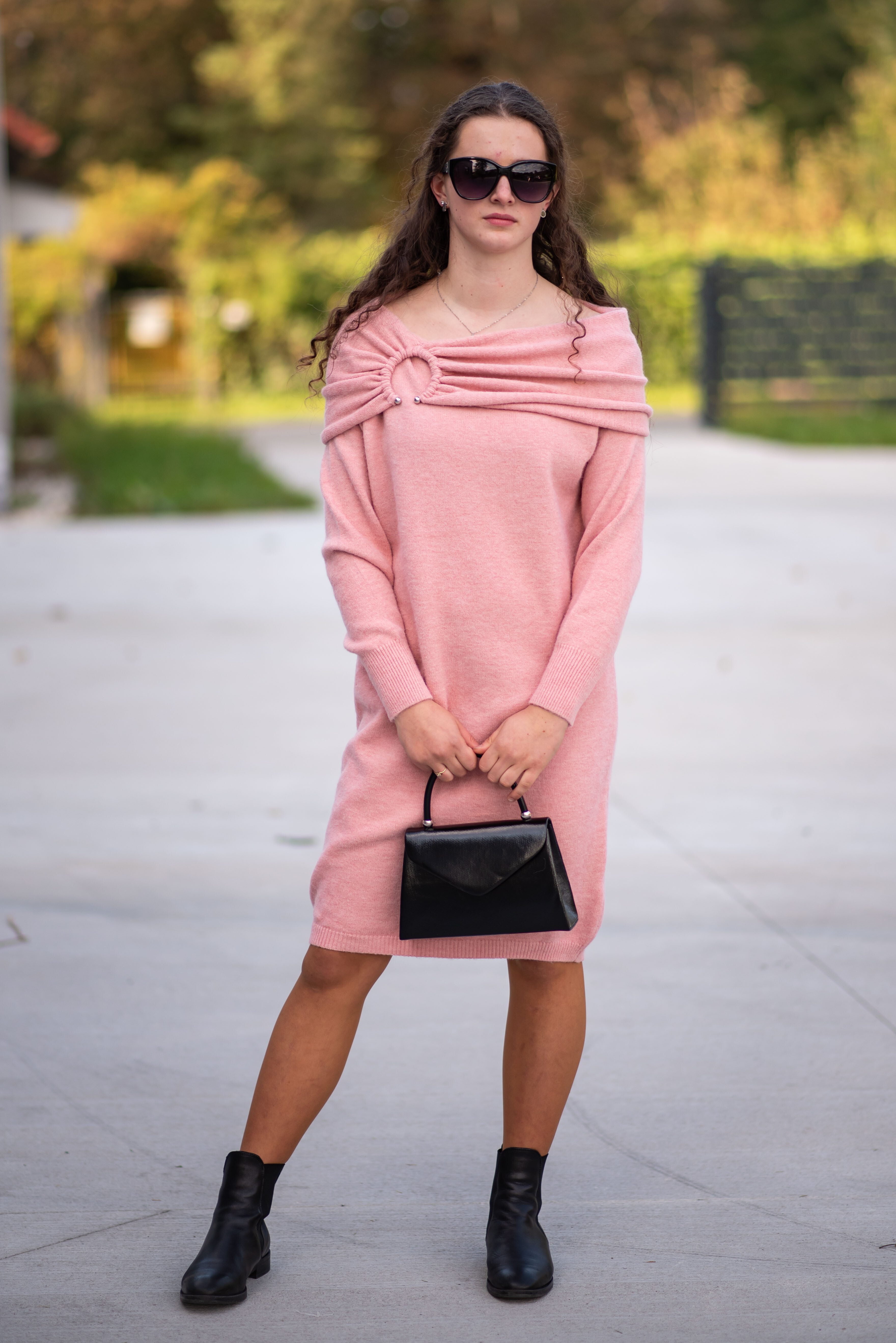 Stylové úpletové šaty přes ramena 3013 Itálie