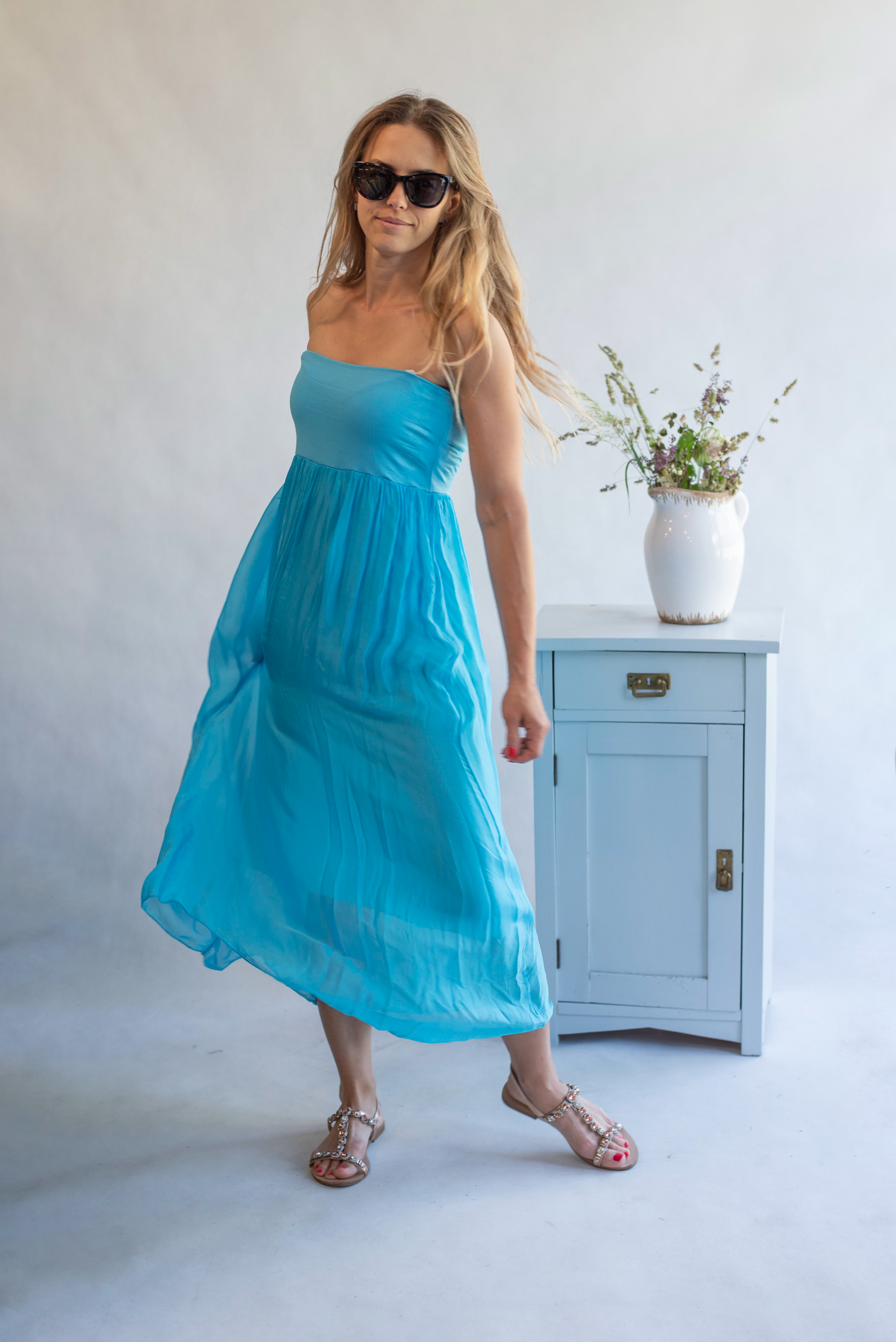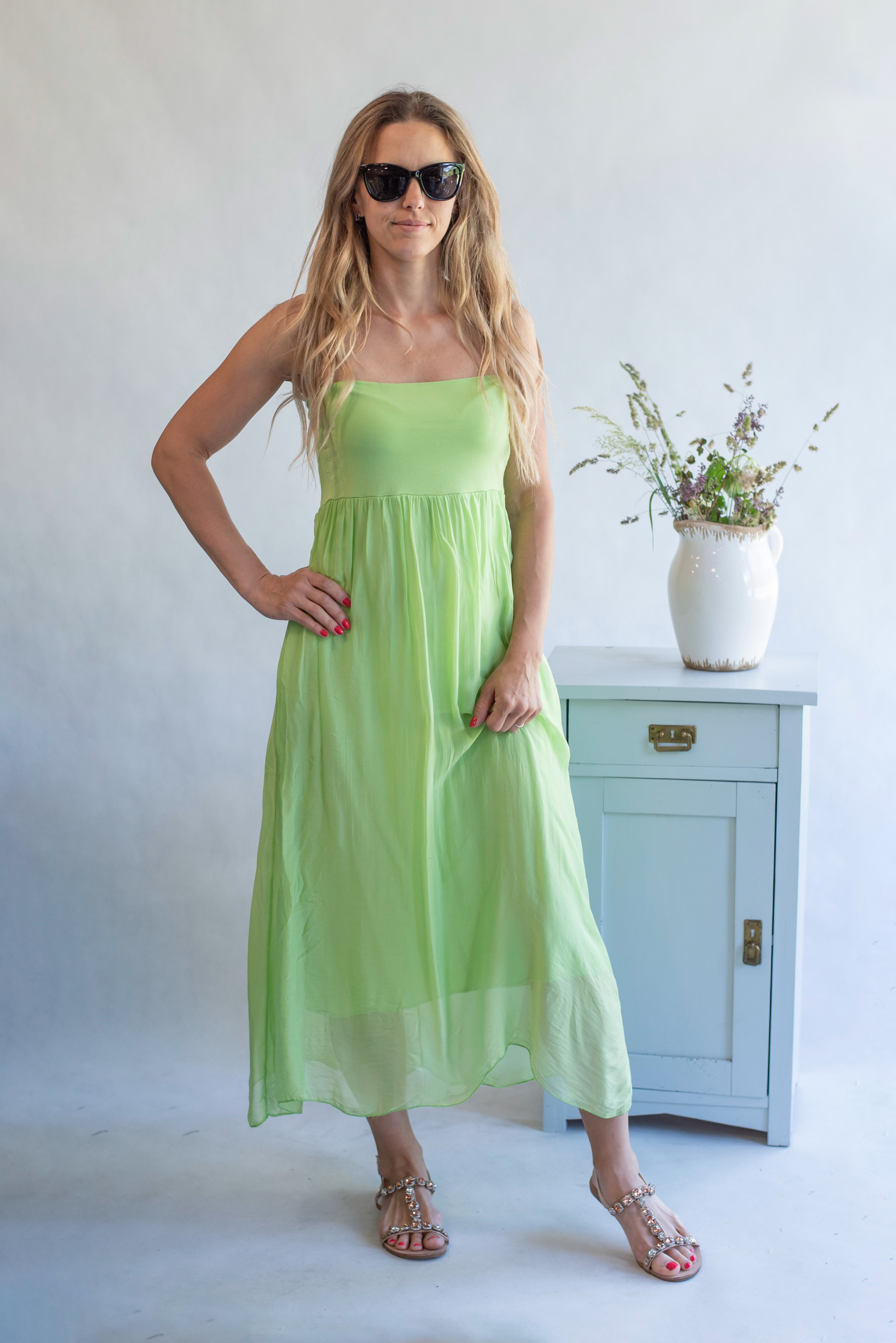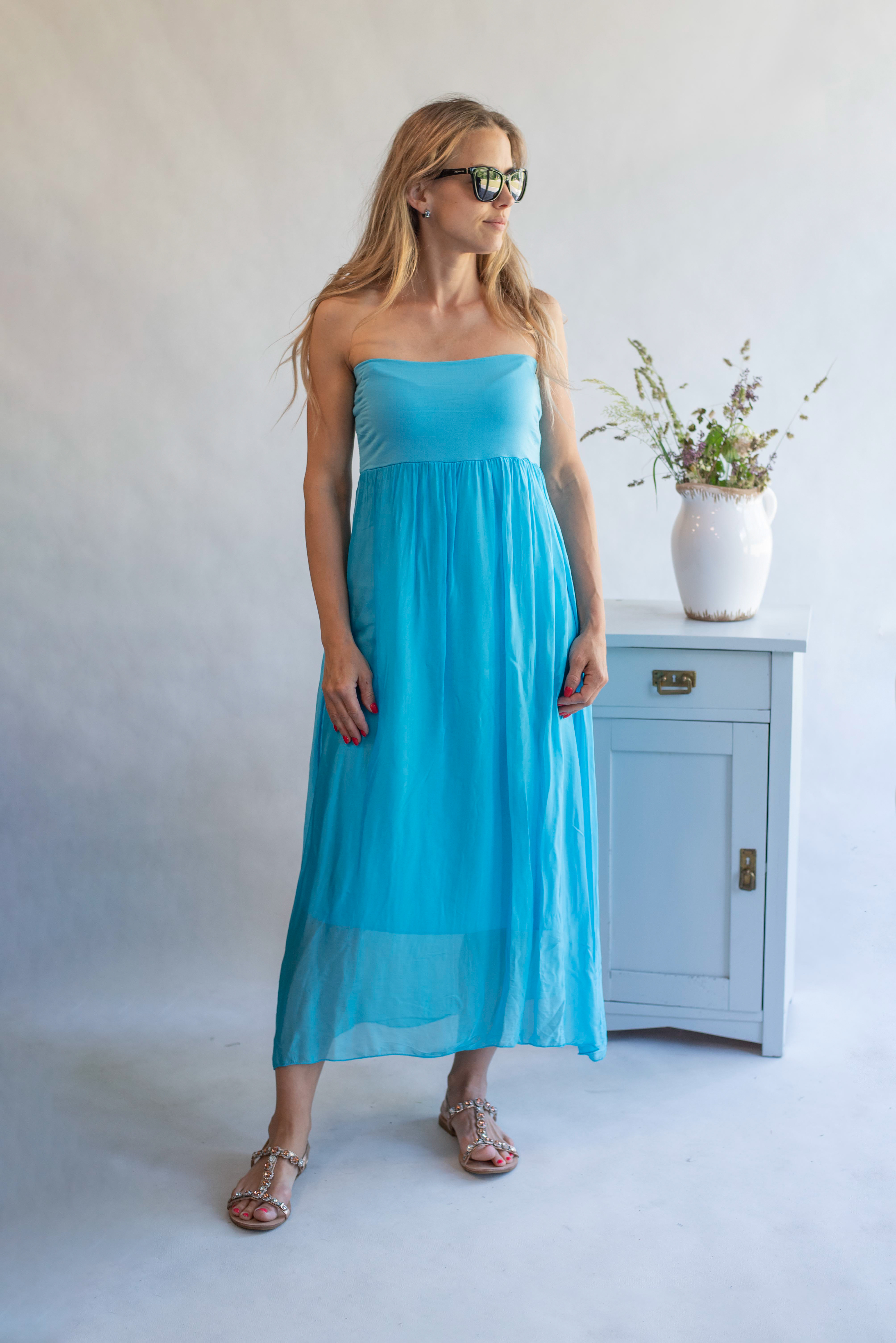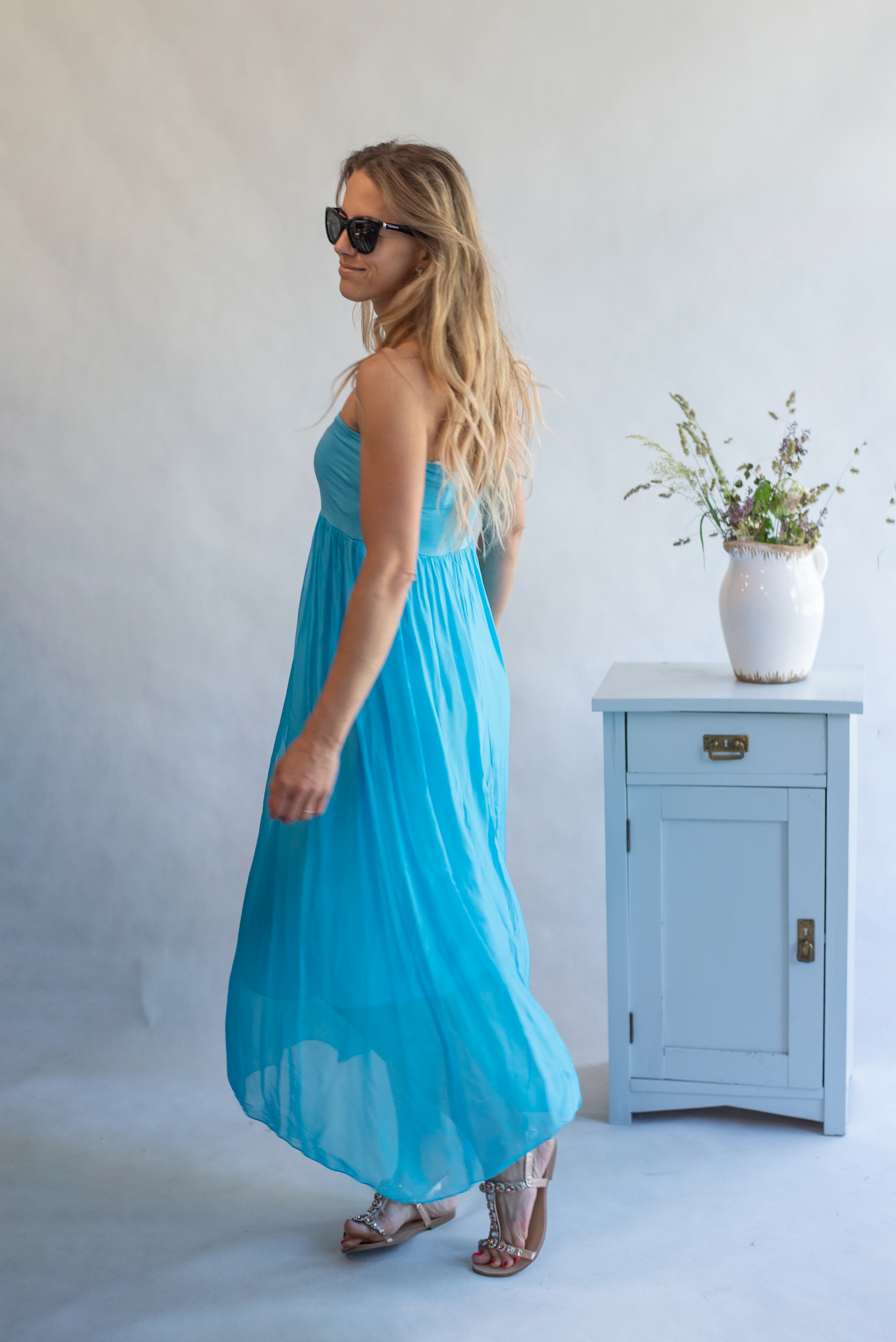 ŠATY DLOUHÉ HEDVÁBÍ v pase na gumu, šaty mají poutka, tedy možnost doplnit nějakým páskem nebo páske