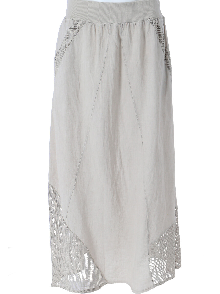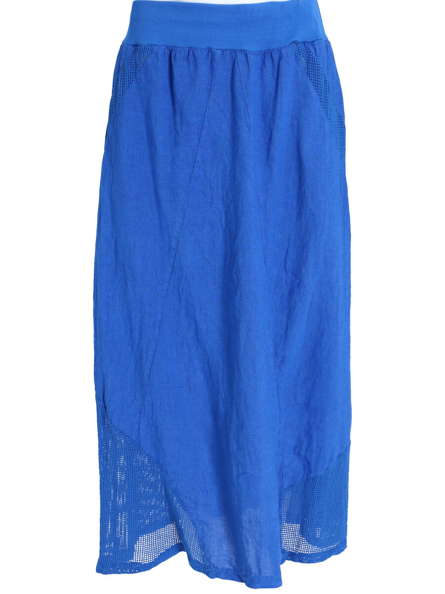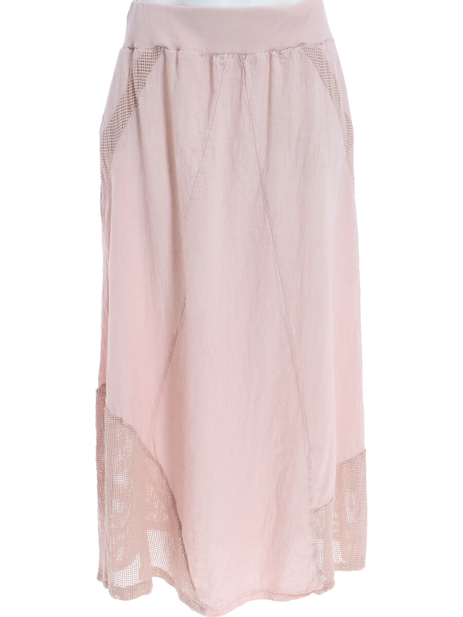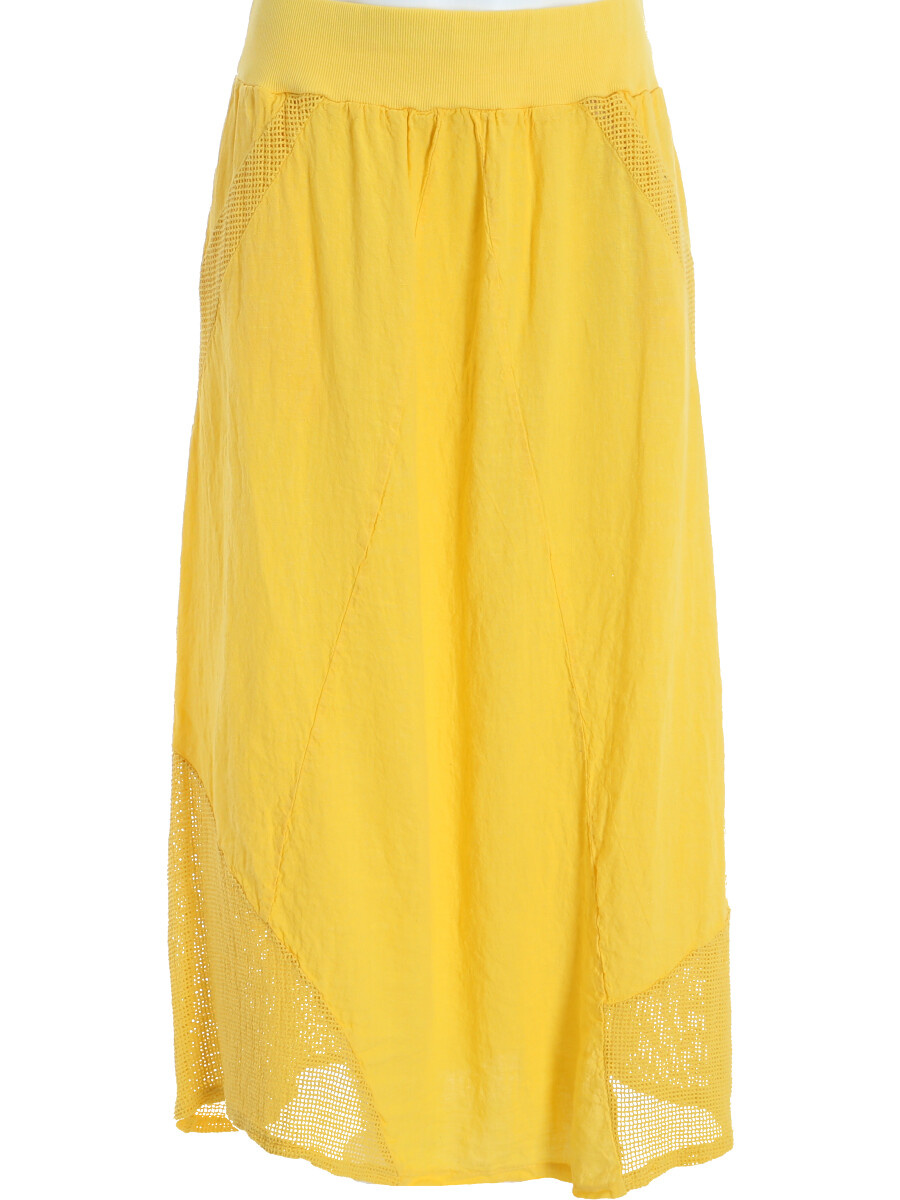 Stylové dámská dlouhá lněná sukně s elastickým pasem a spodním lemem, doplněná kapsami pro denní nošení , vyrobena v Itálii .