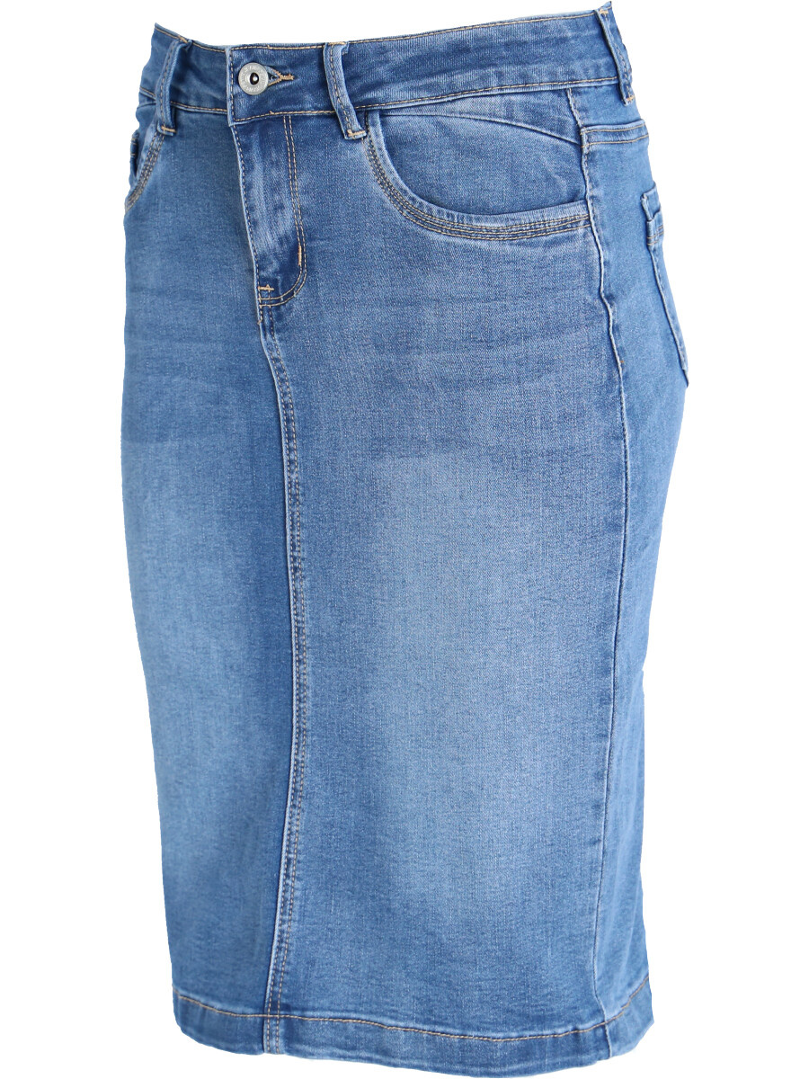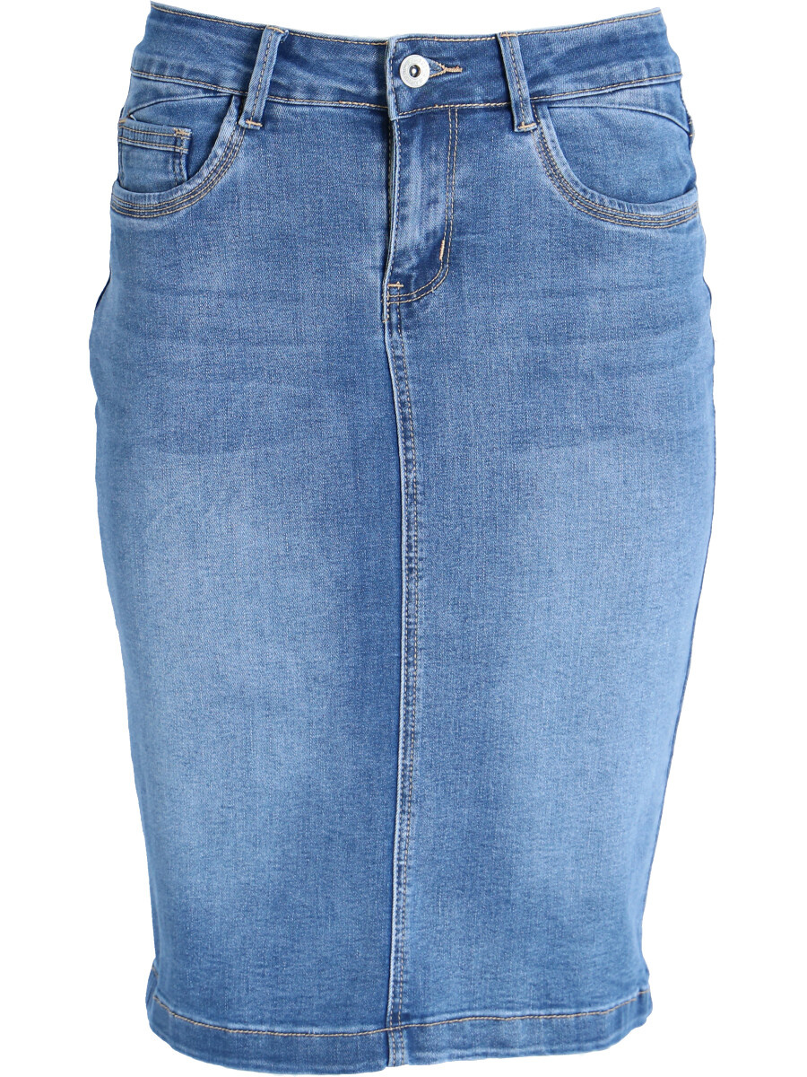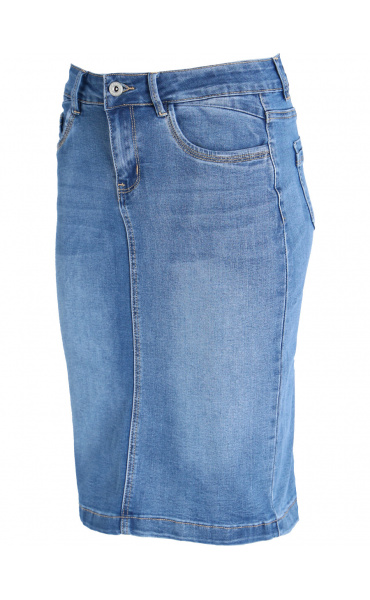 Klasická jeans sukně pohodlného střihu ke kolenům.