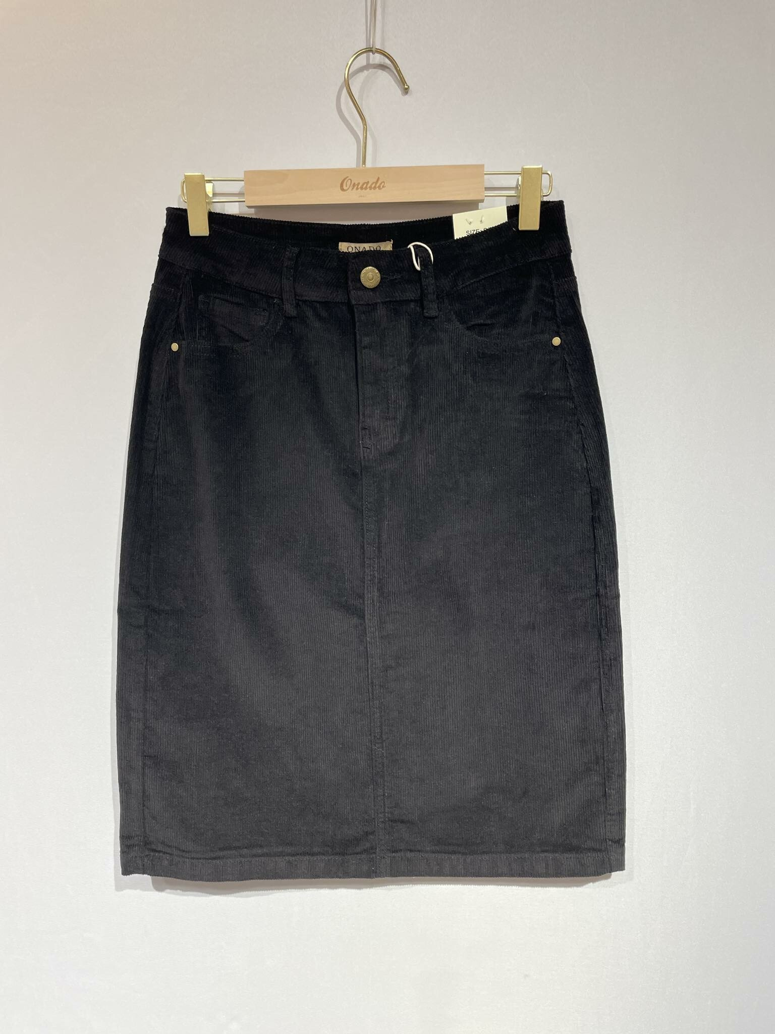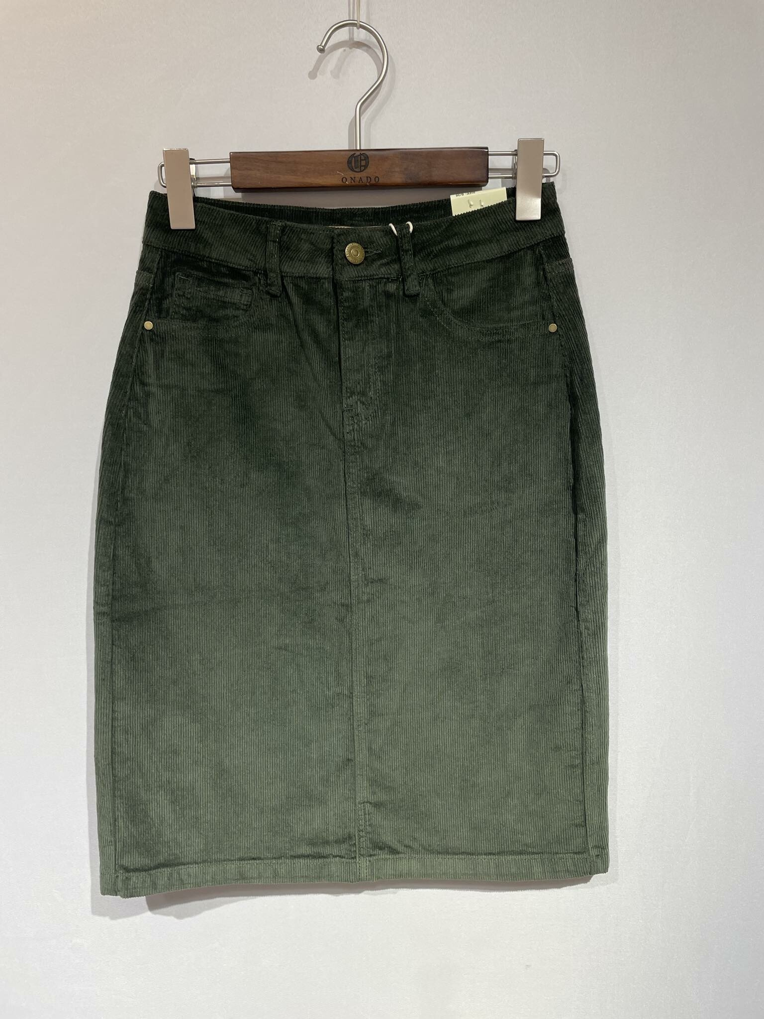 Klasická manšestrová sukně pohodlného střihu ke kolenům.