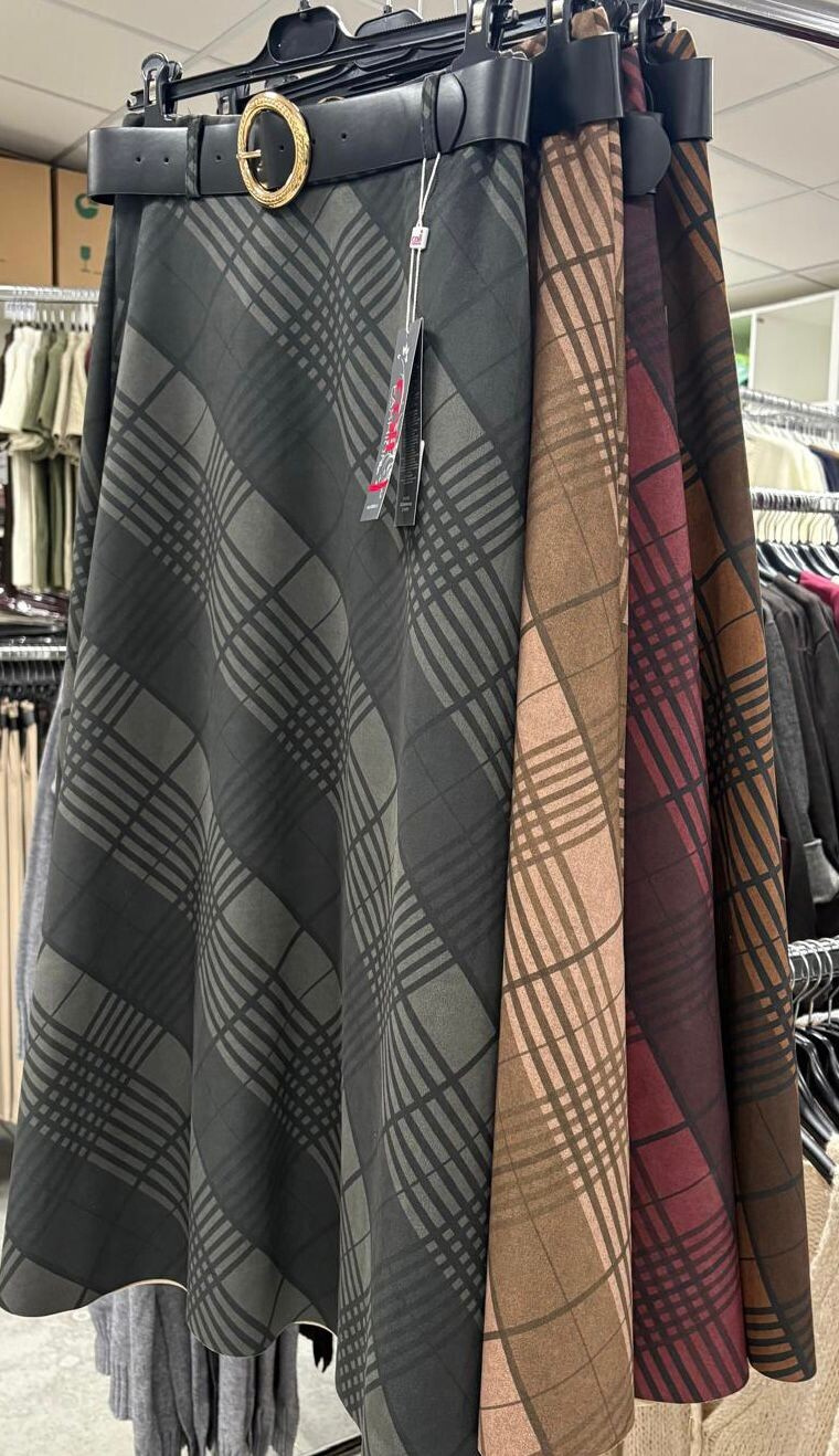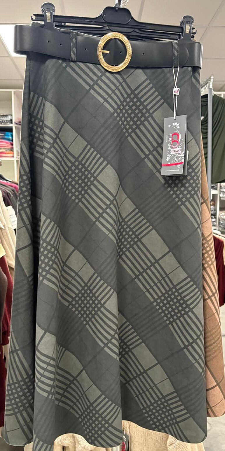 Dámská káro sukně v MIDI délce a v pase do gumy. Sukně je teplejšího materiálu, áčkového střihu a je doplněna syntetickým páskem. Dovezeno z Itálie.