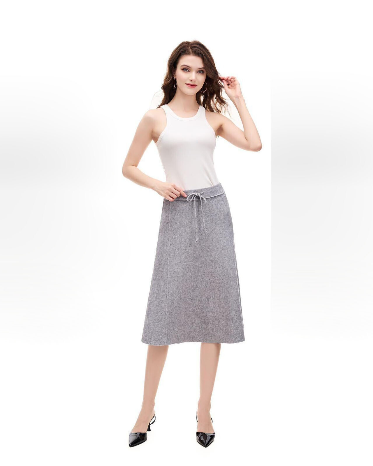 Elegantní sukně midi z úpletové materiálu. Sukně je v pase do gumy s regulací na šňůrku. Dovoz Itálie