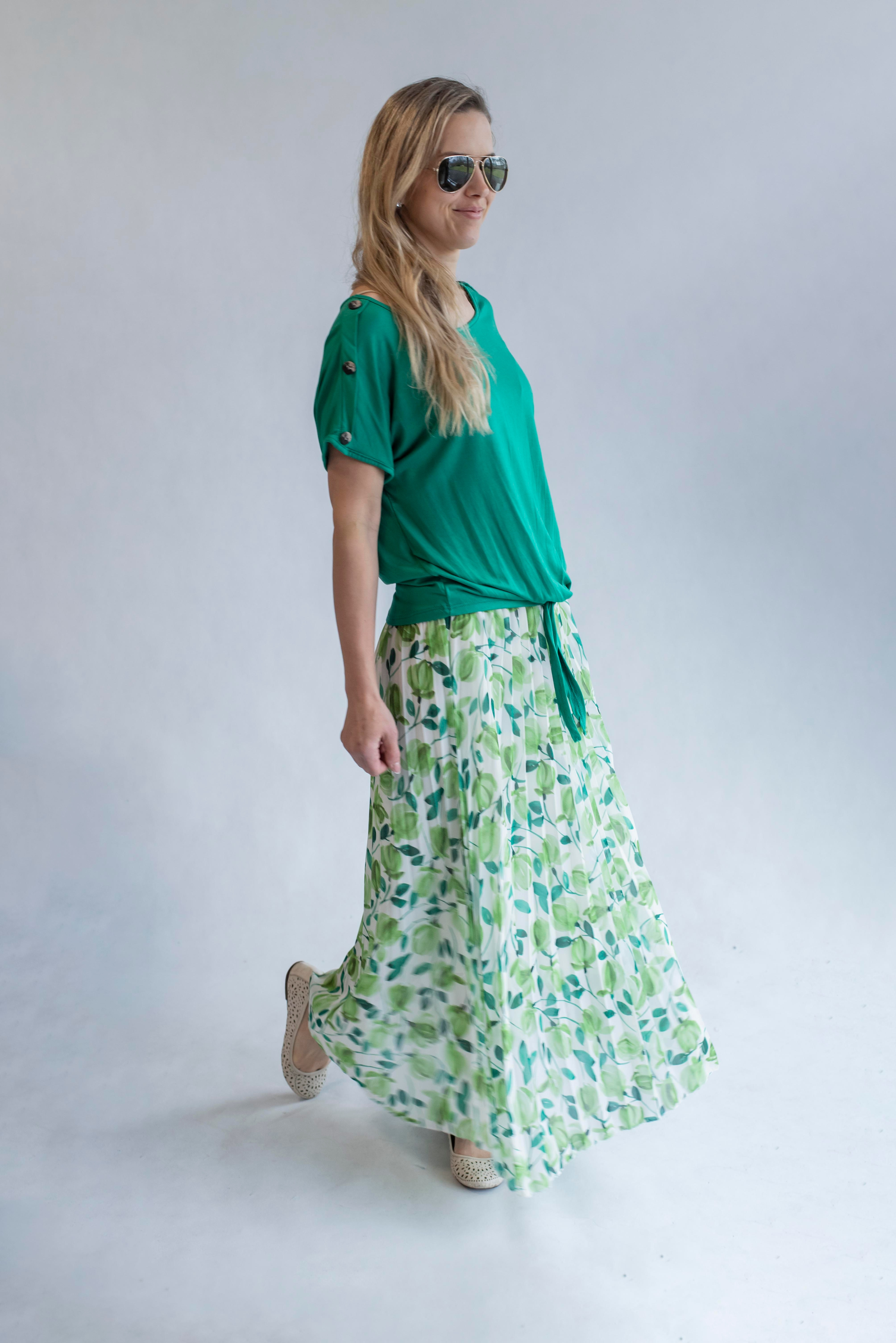 Dámská plisovaná dlouhá sukně, pohodlná pro denní nošení, v pase do gumy