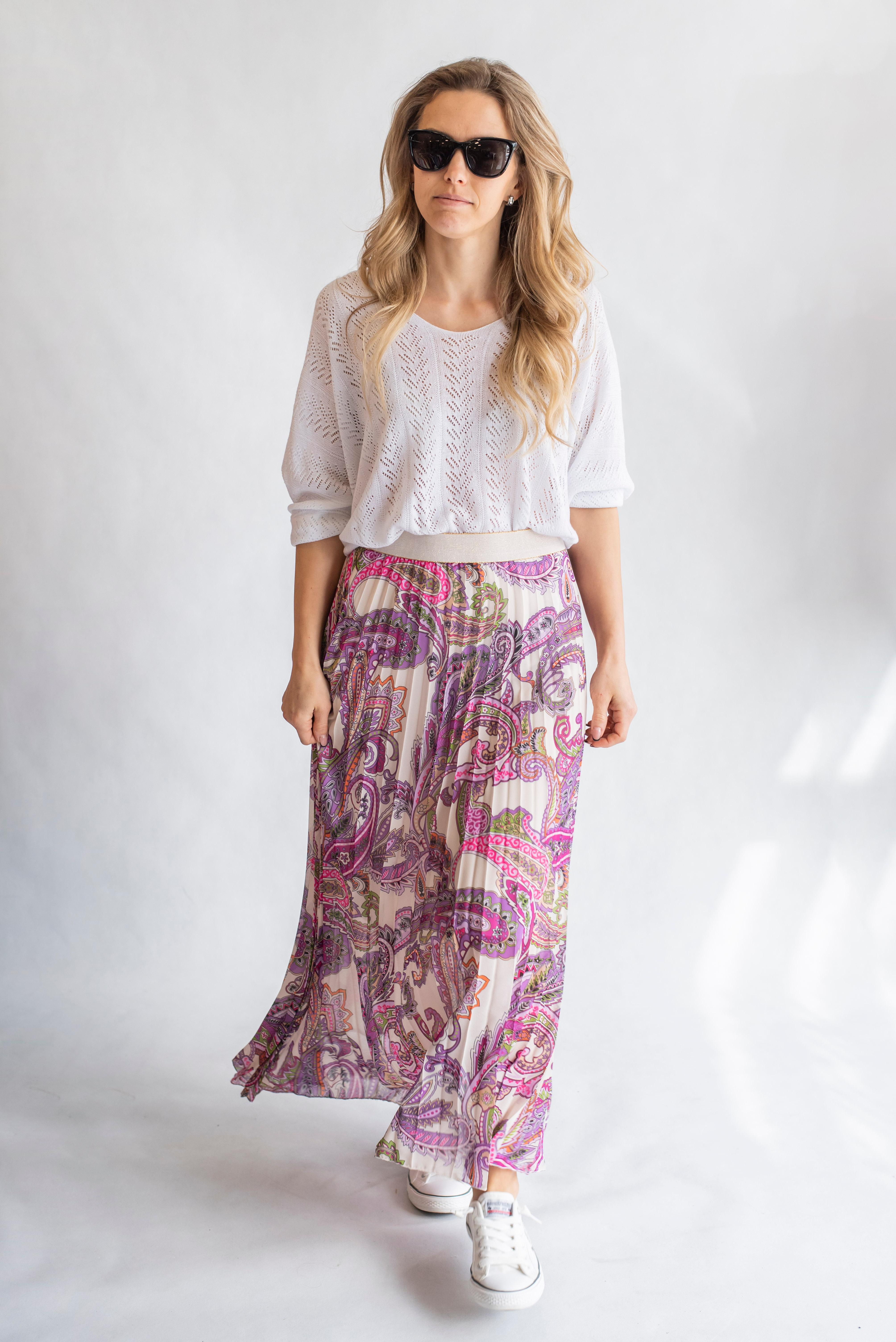 Dámská plisovaná dlouhá sukně, pohodlná pro denní nošení, v pase do gumy