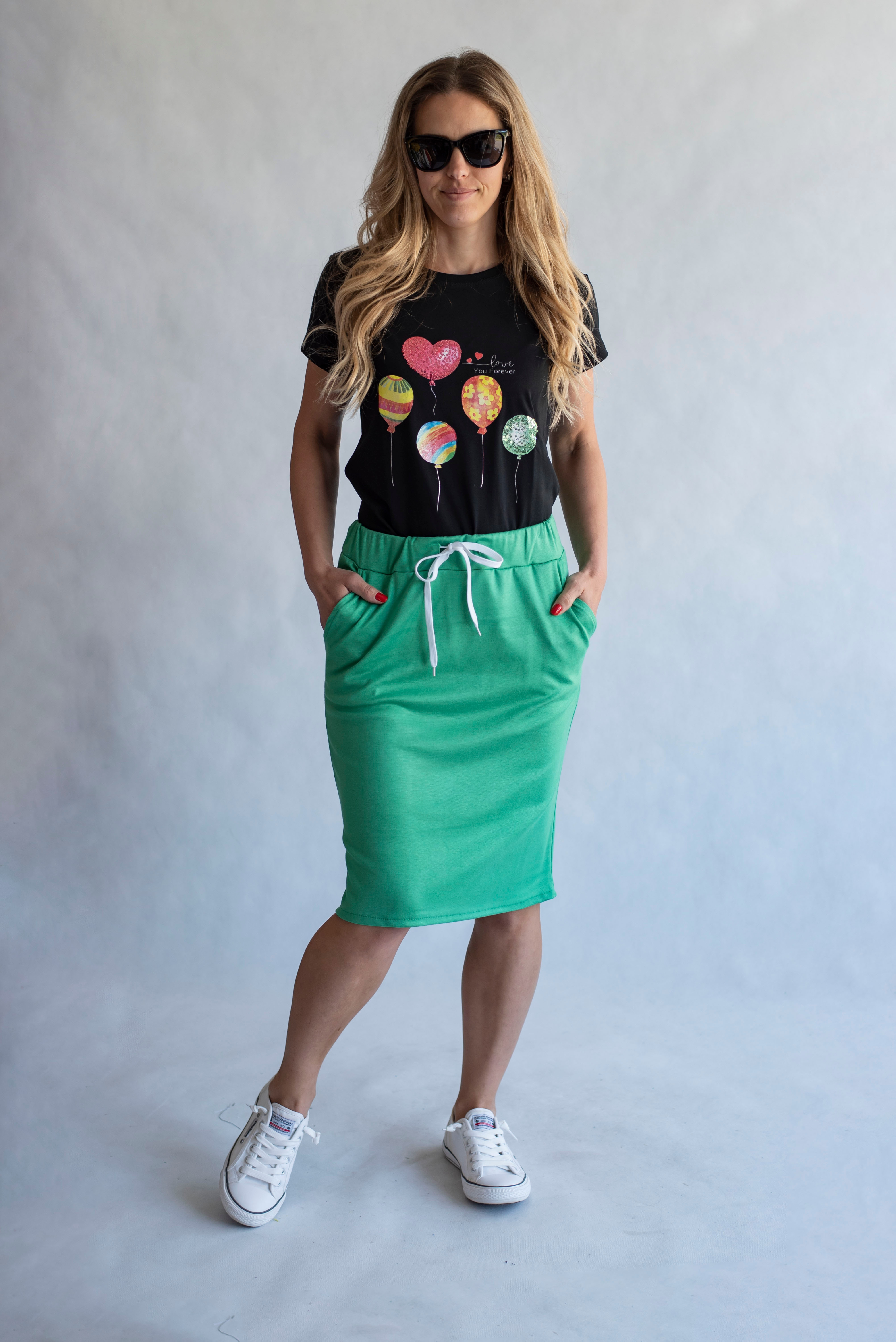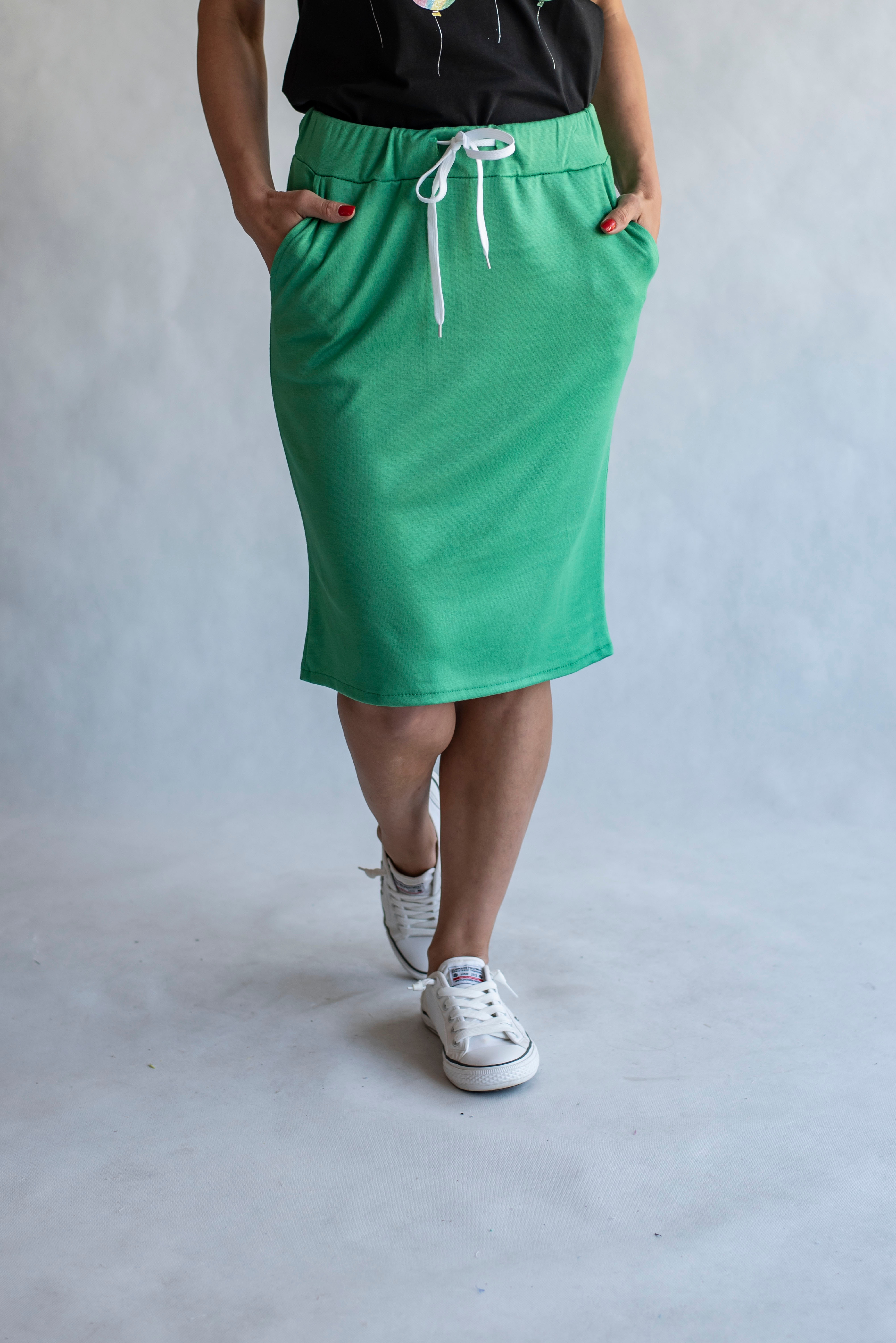 Dámská tepláková sukně midi délka s elastickým pasem , doplněná kapsami pro denní nošení , rozparek vzadu. Vyrobena v Itálii -značka Mooij.
