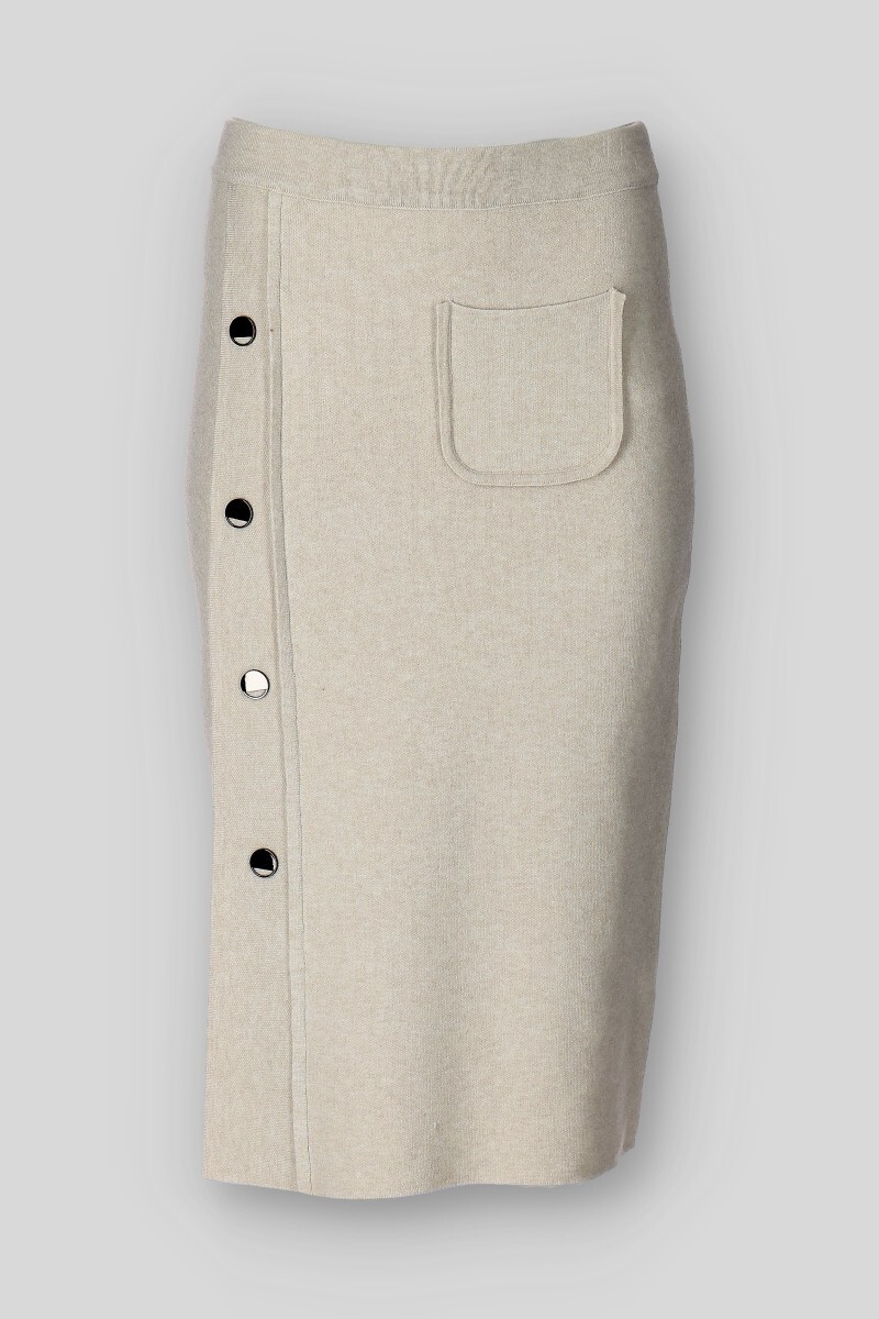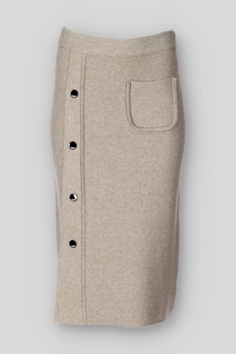 Elegantní sukně z hrubého úpletu v MIDI délce. Sukně je v pase do gumy a má áčkový střih. Vyrobeno v Itálii