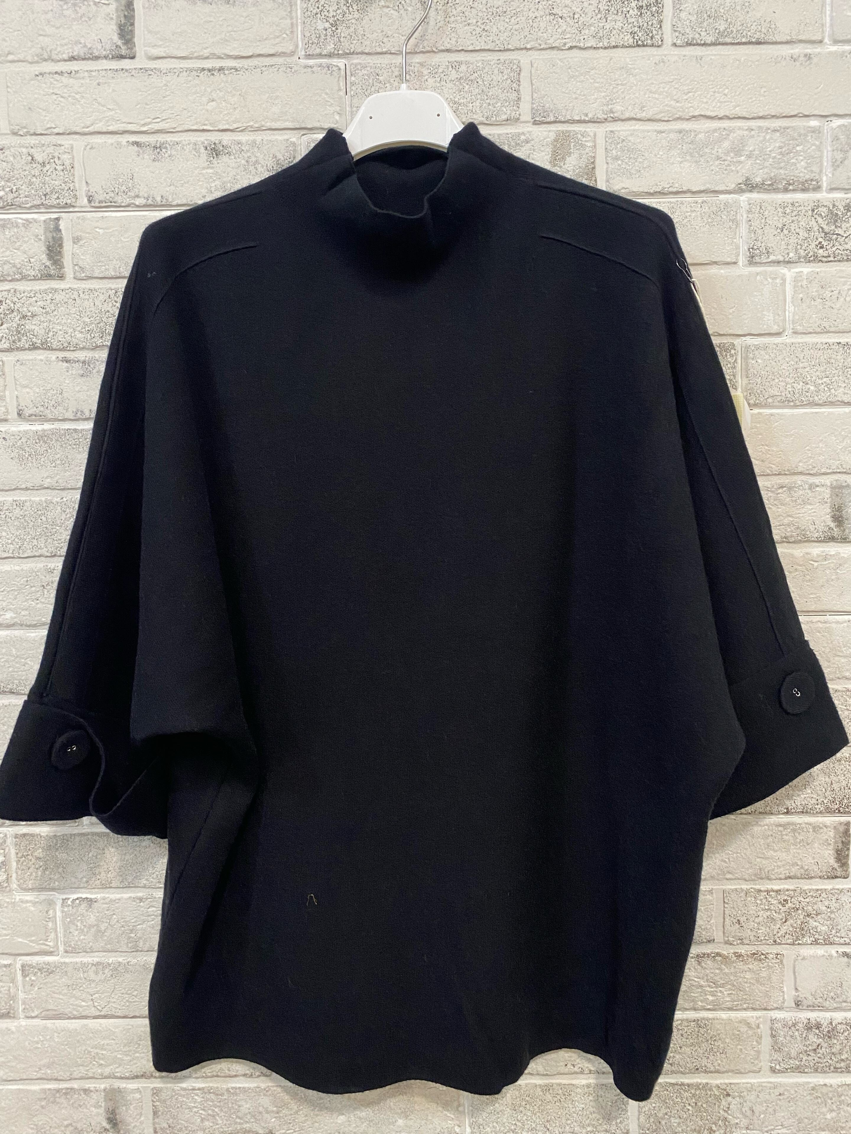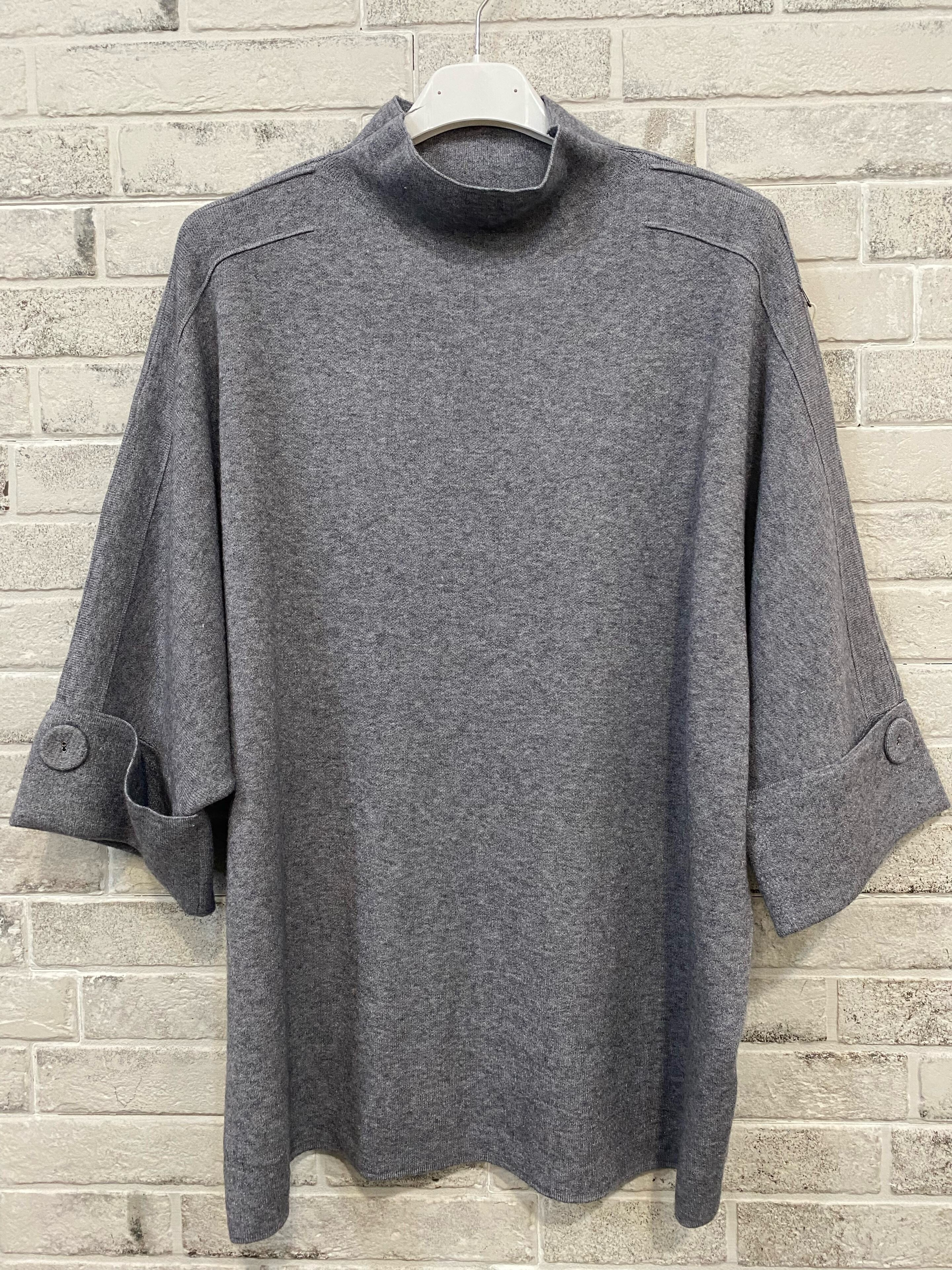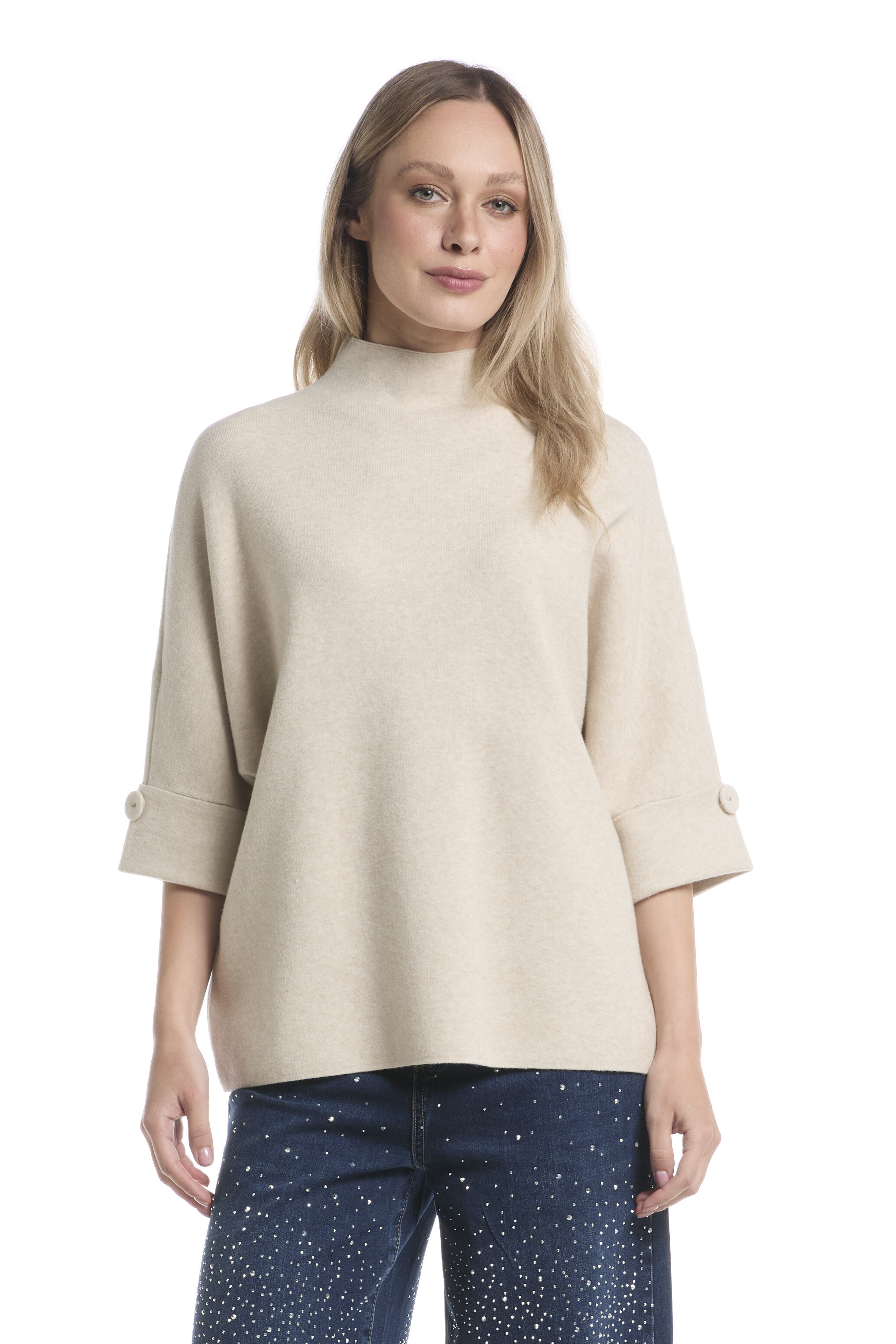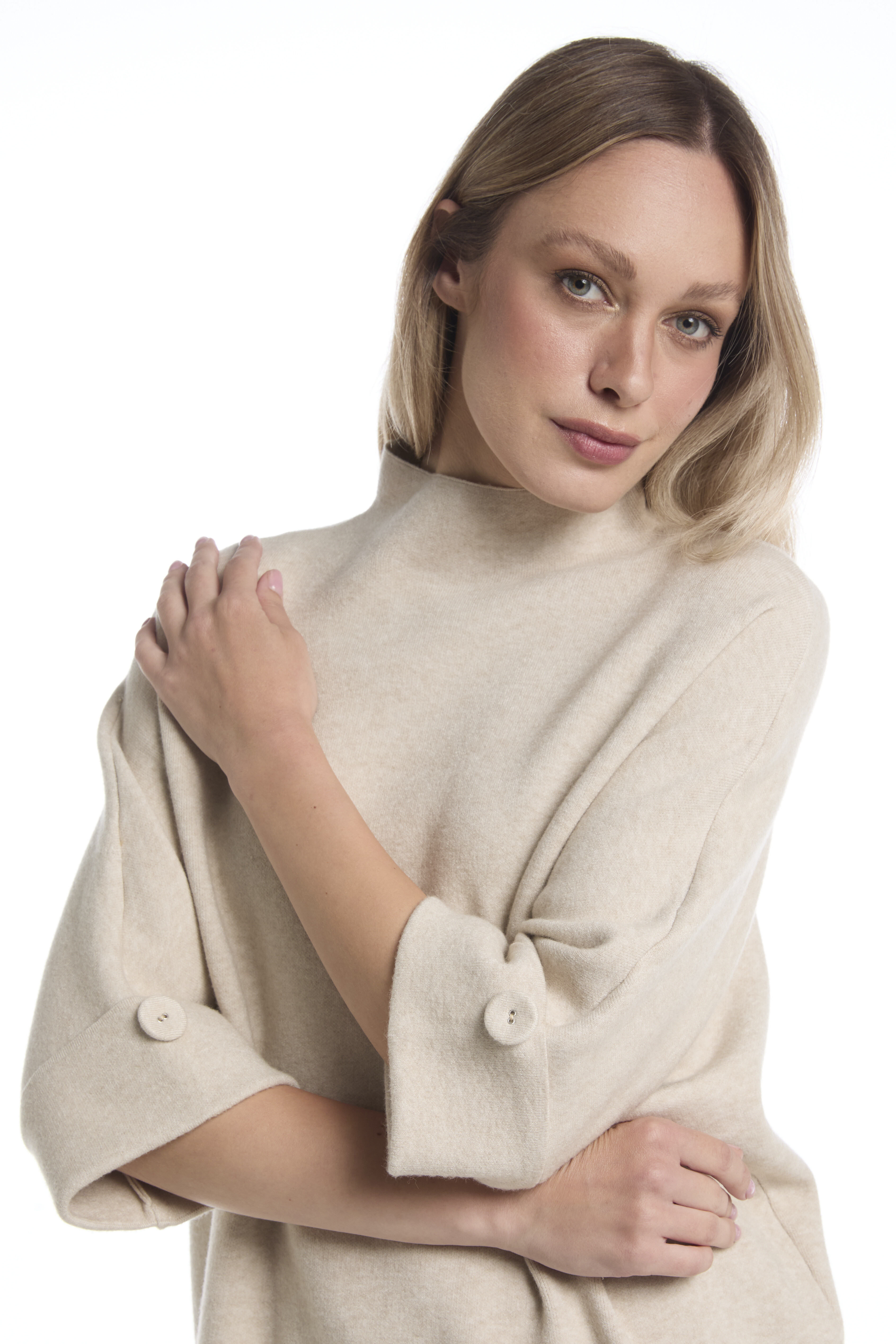 Módní svetřík z hrubého úpletu s 3/4 rukávem. Svetr má na rukávem a  aplikaci knoflíků na rukávech.