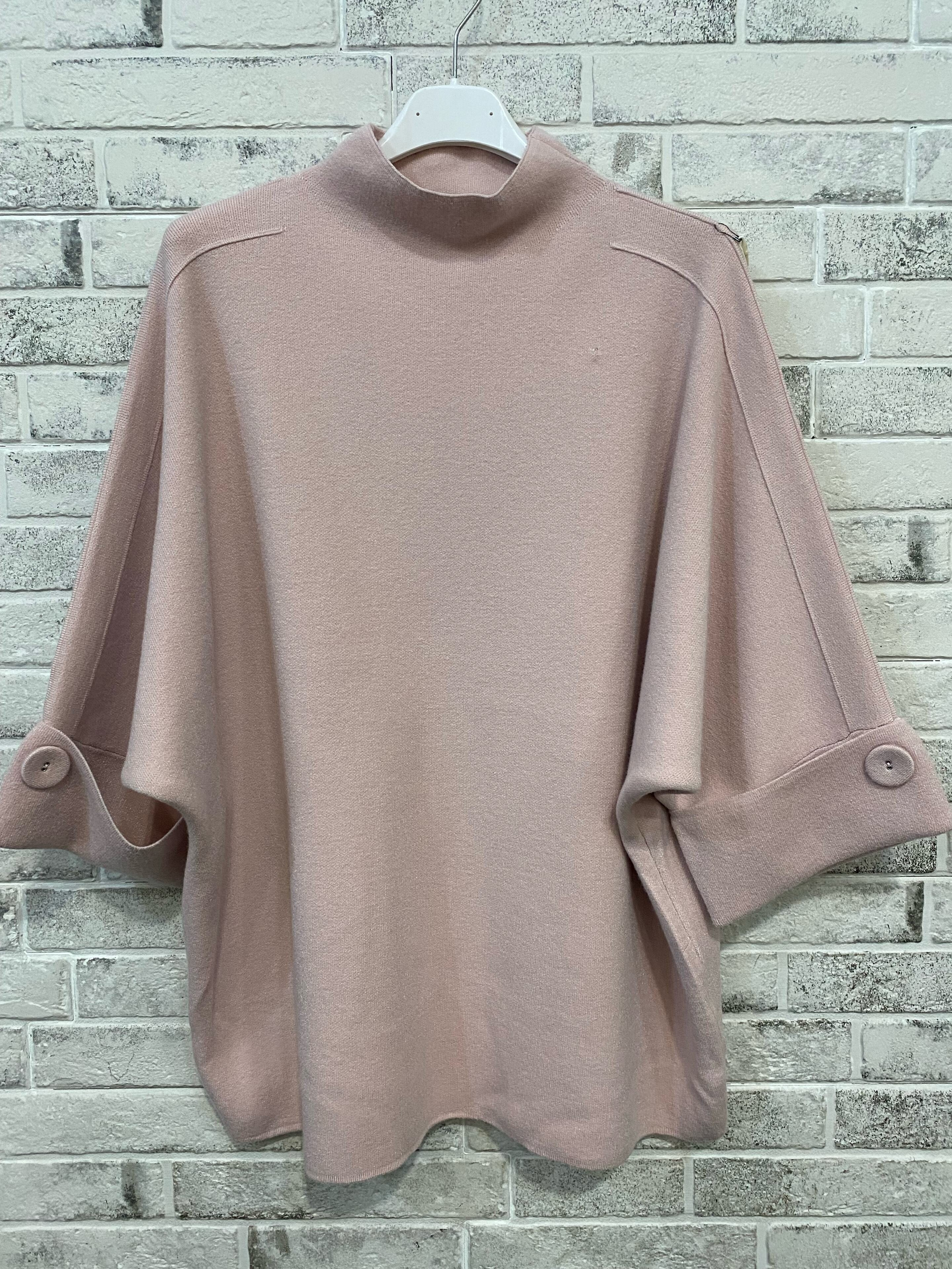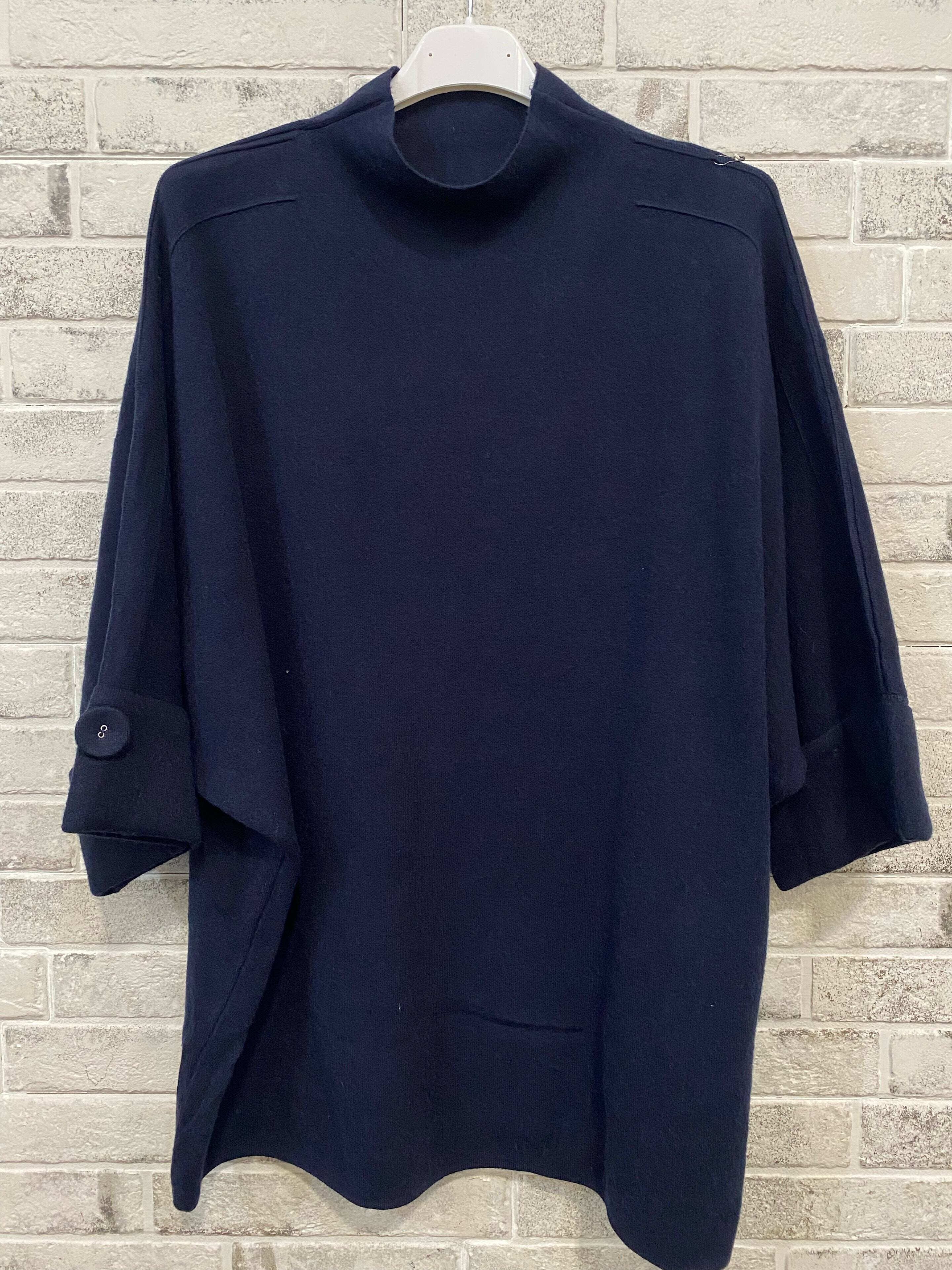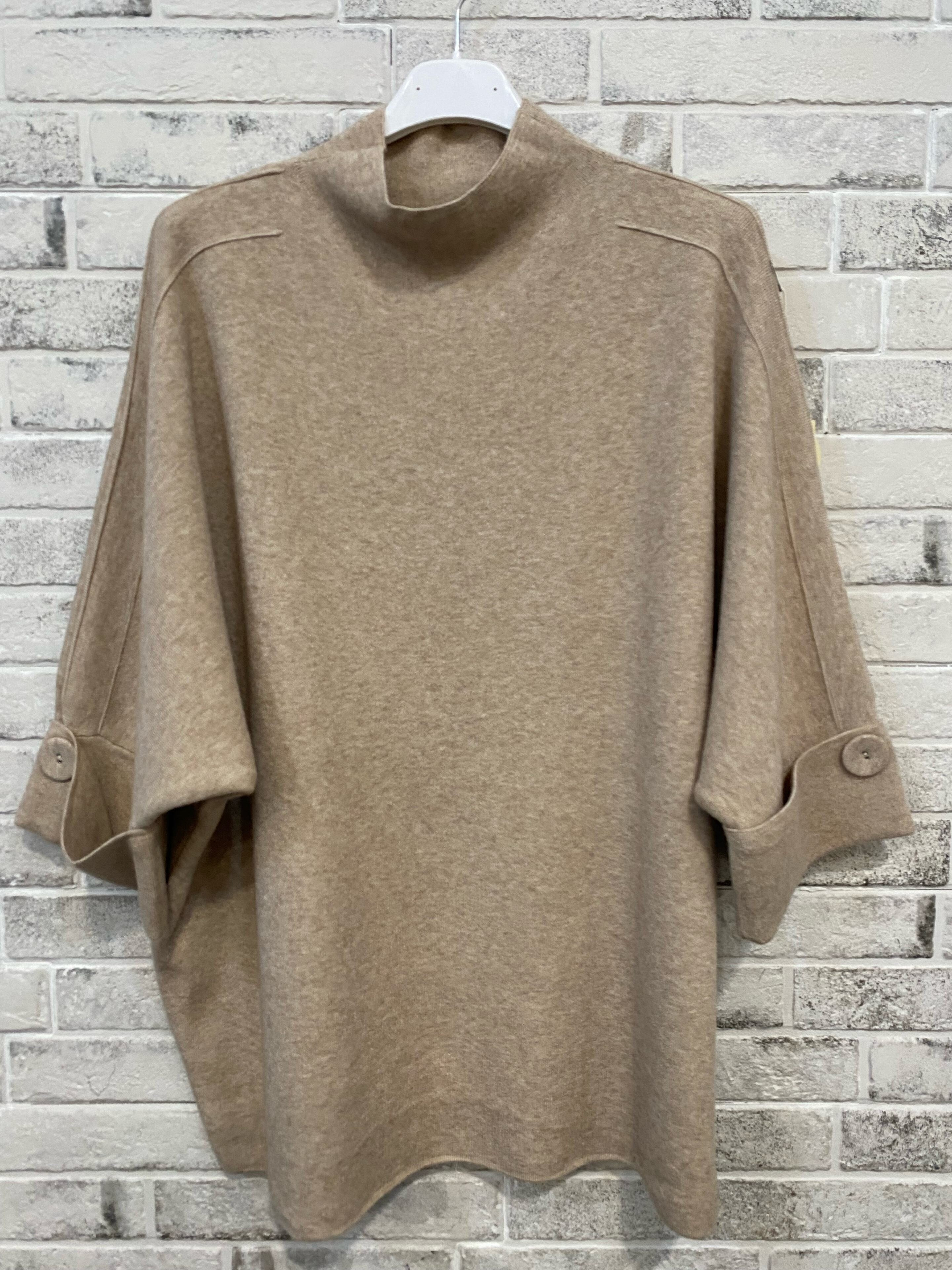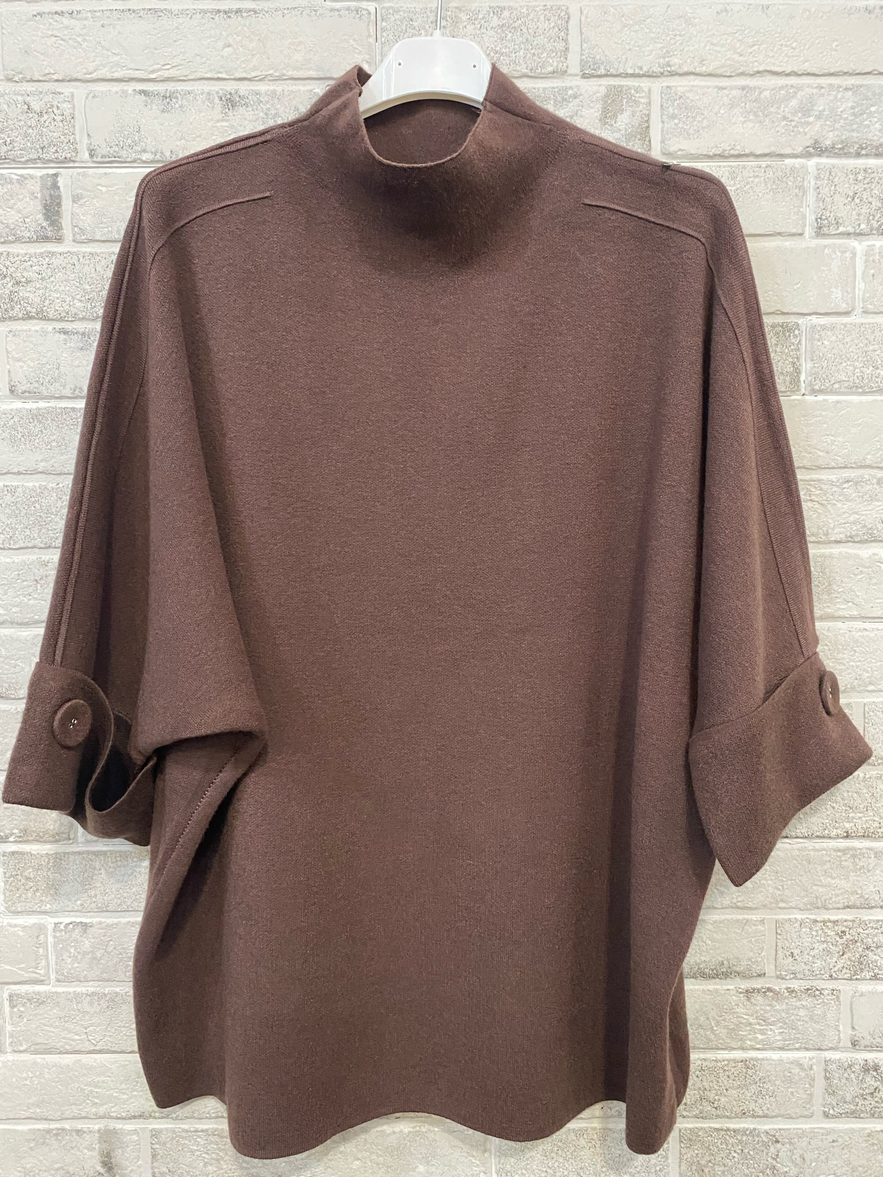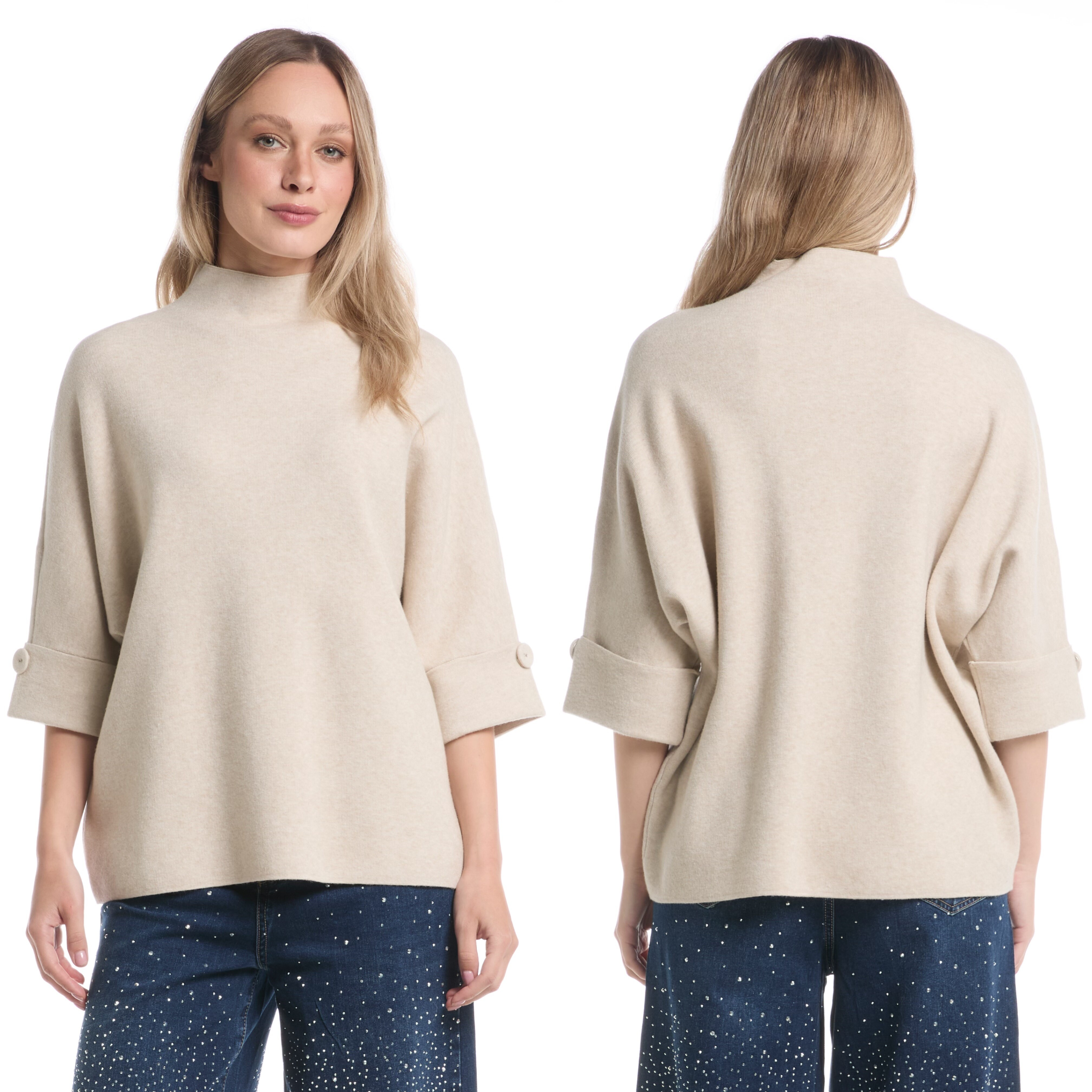 Módní svetřík z hrubého úpletu s 3/4 rukávem. Svetr má na rukávem a  aplikaci knoflíků na rukávech.