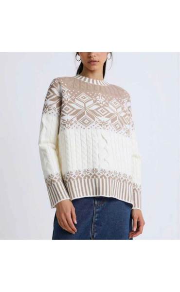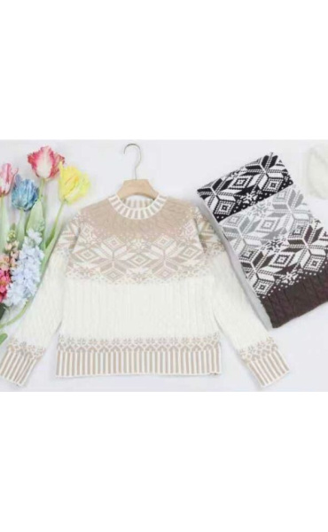 Trendy svetr se zimním norským vzorem. Svetr je z příjemného úpletového materiálu a má kulatý výstřih.