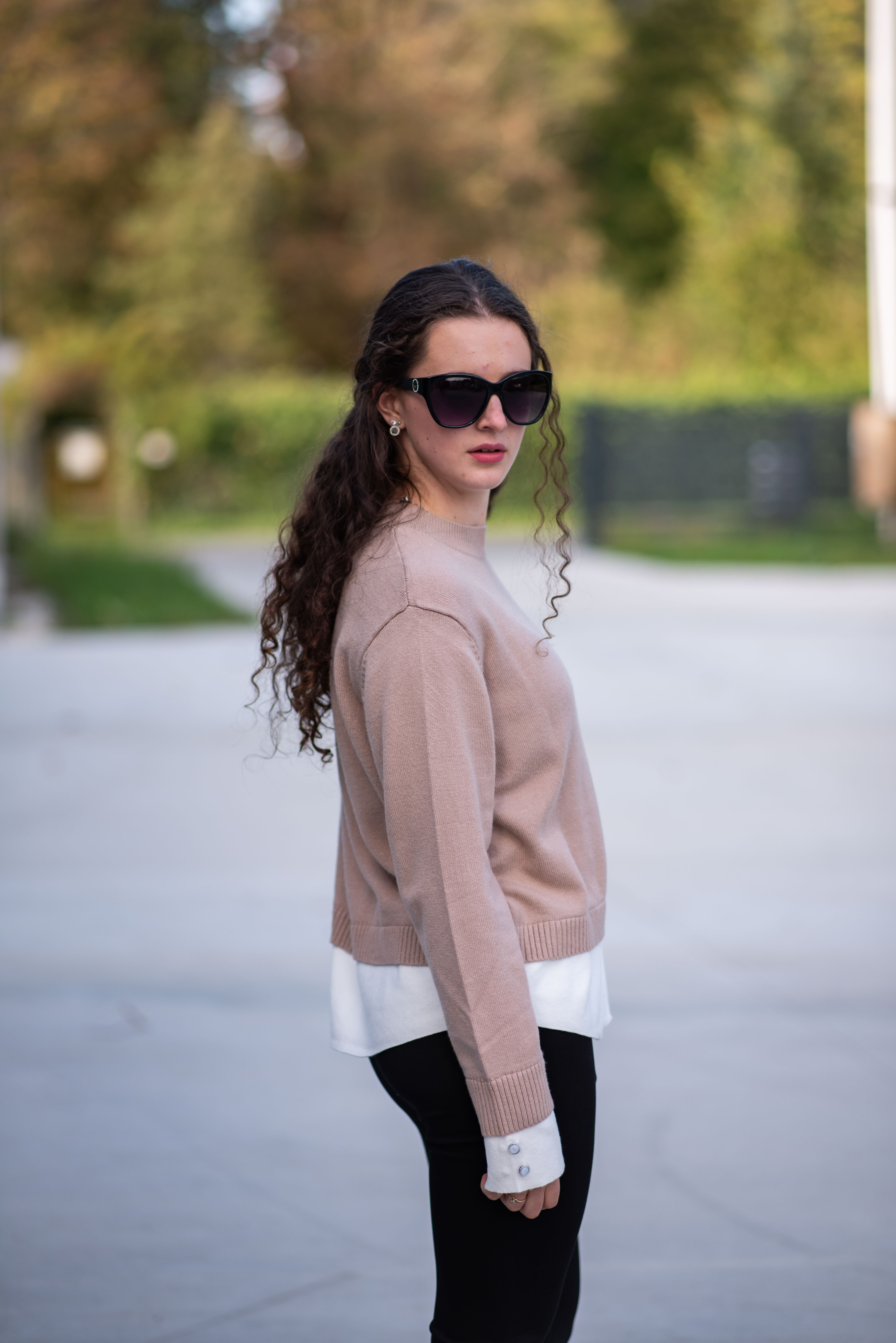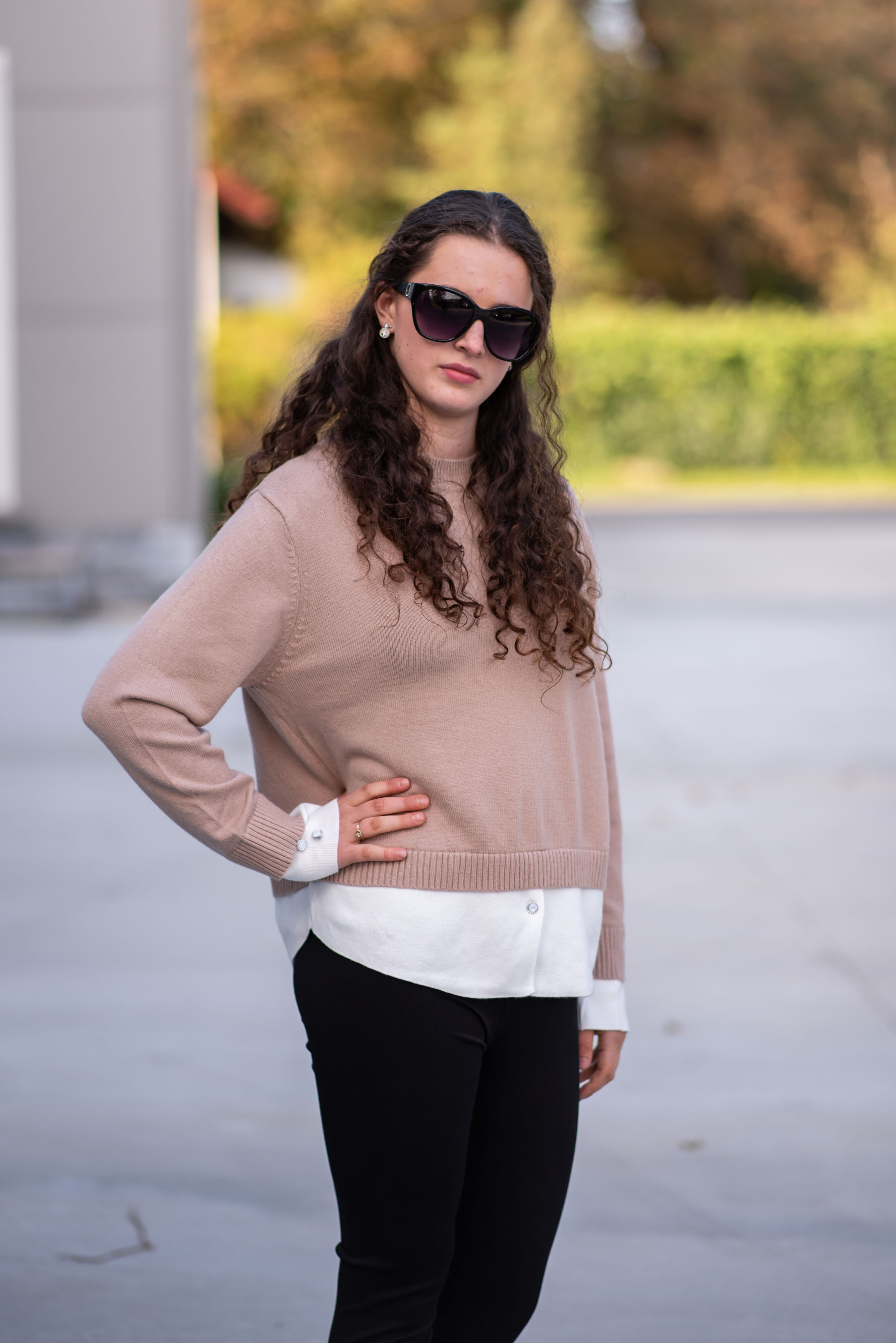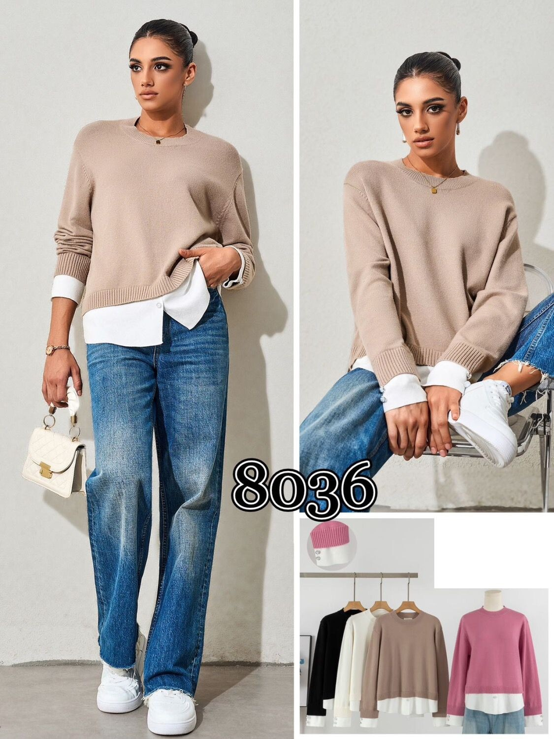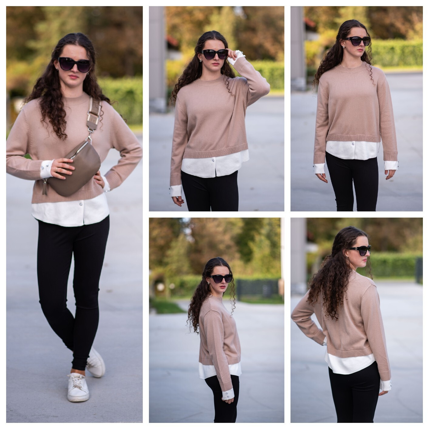 - Módní svetřík s kulatým výstřihem a dlouhým rukávem.
