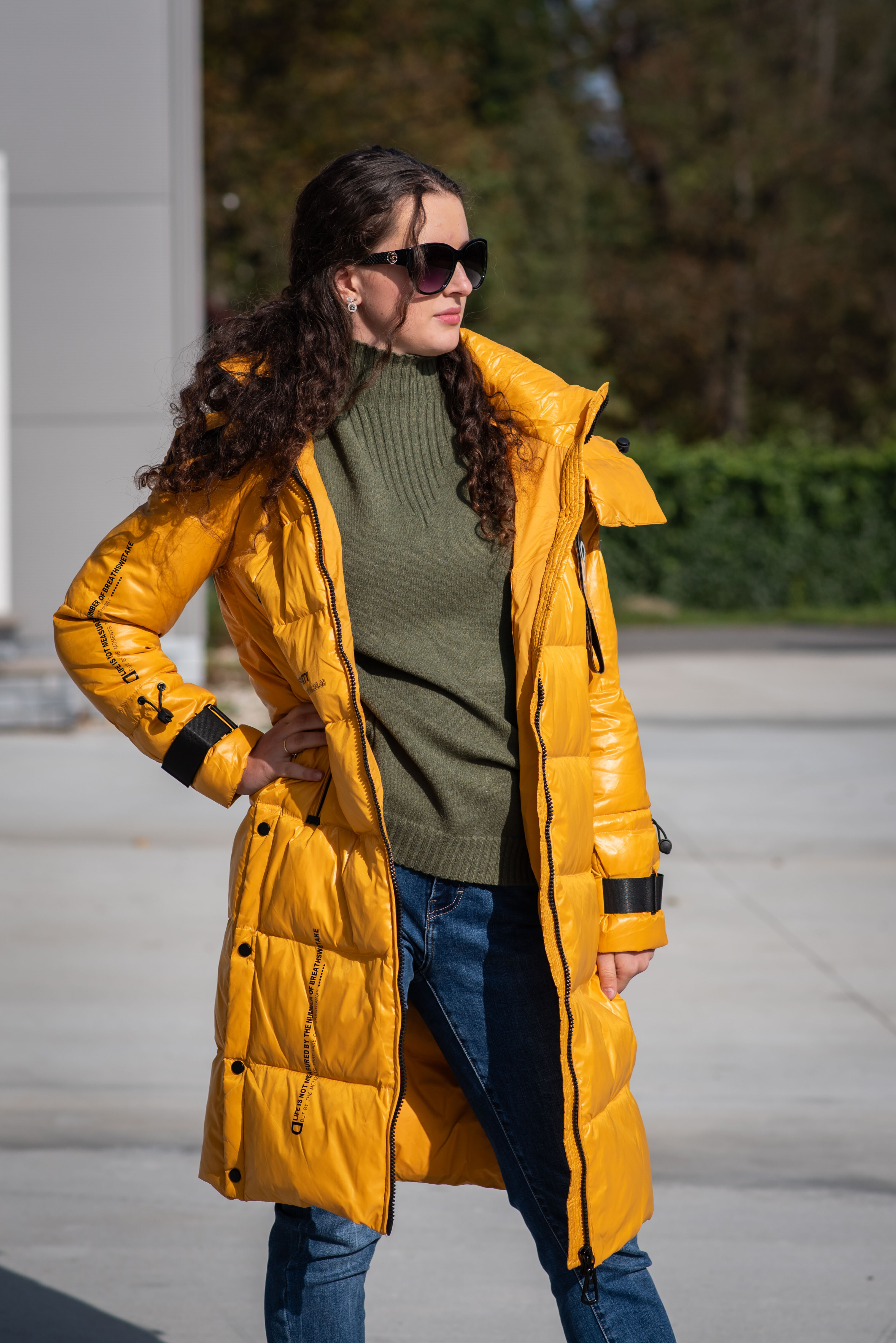 Rozměry: 56 cm přes prsa, 112 cm obvod přes hrudník, 68 cm délka