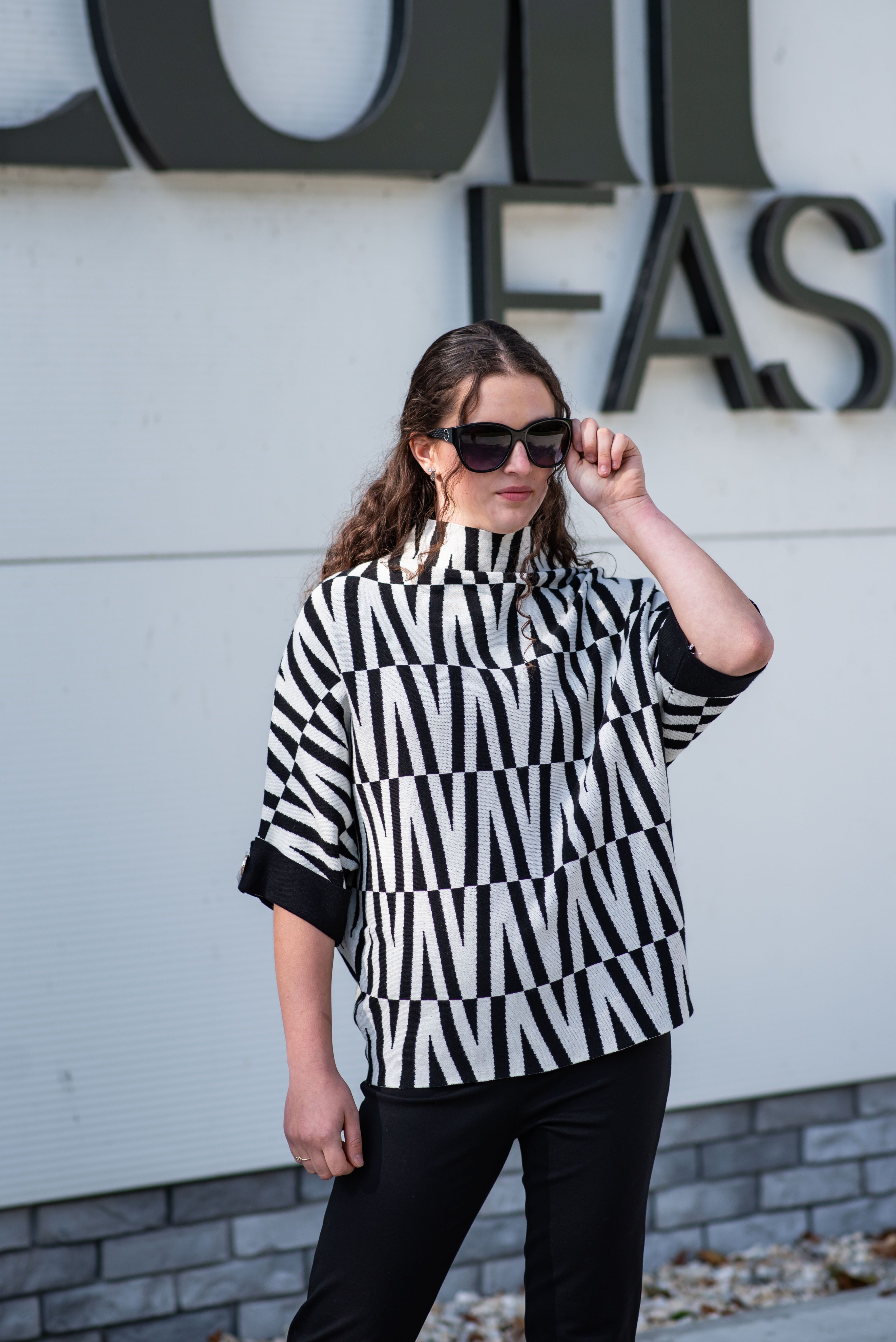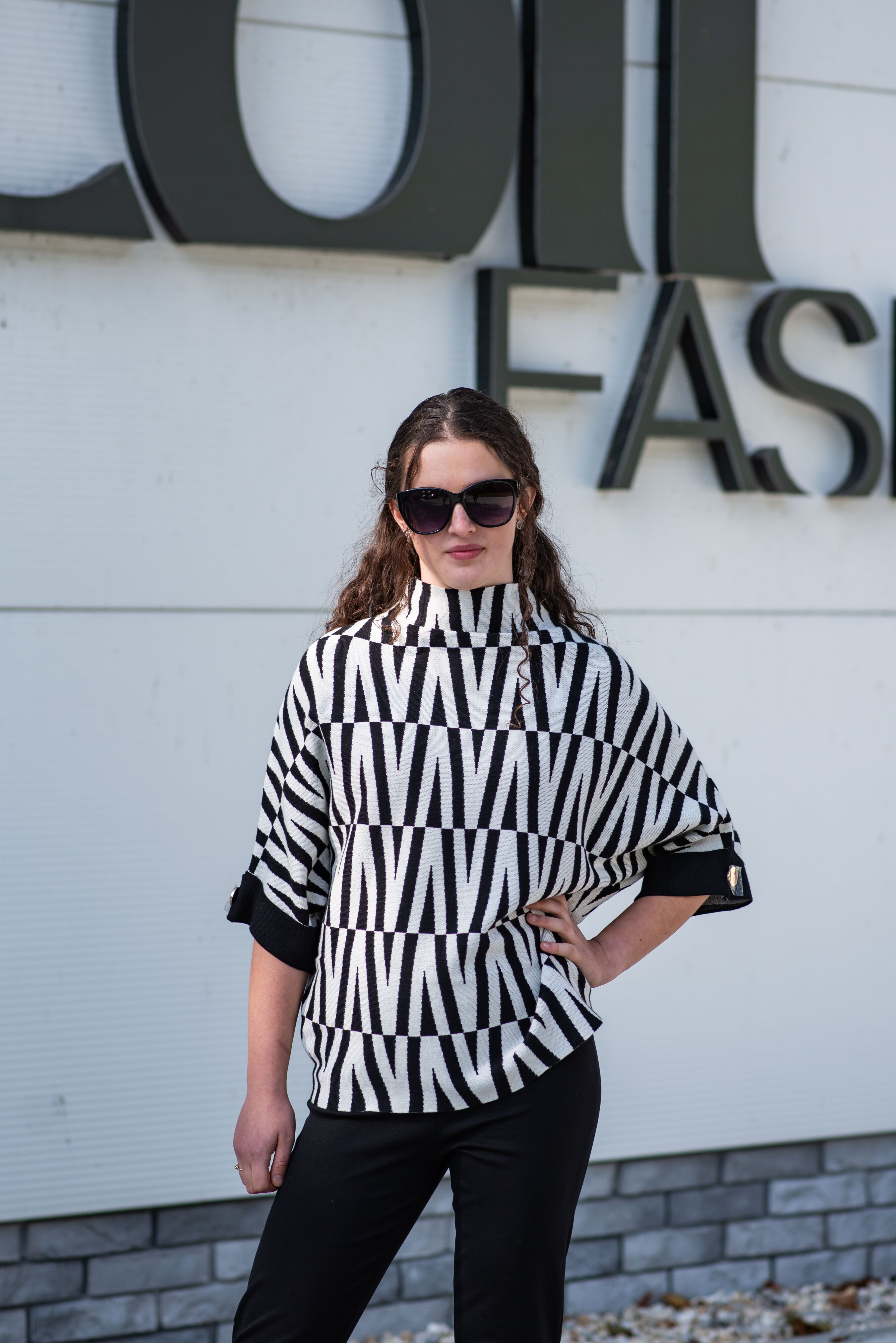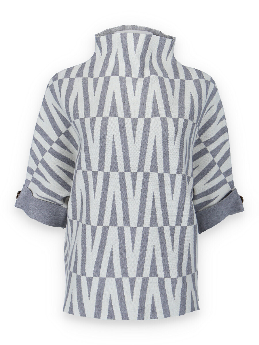 Svetr je se stojáčkem, je volnějšího oversize stylu a má 3/4 rukáv.