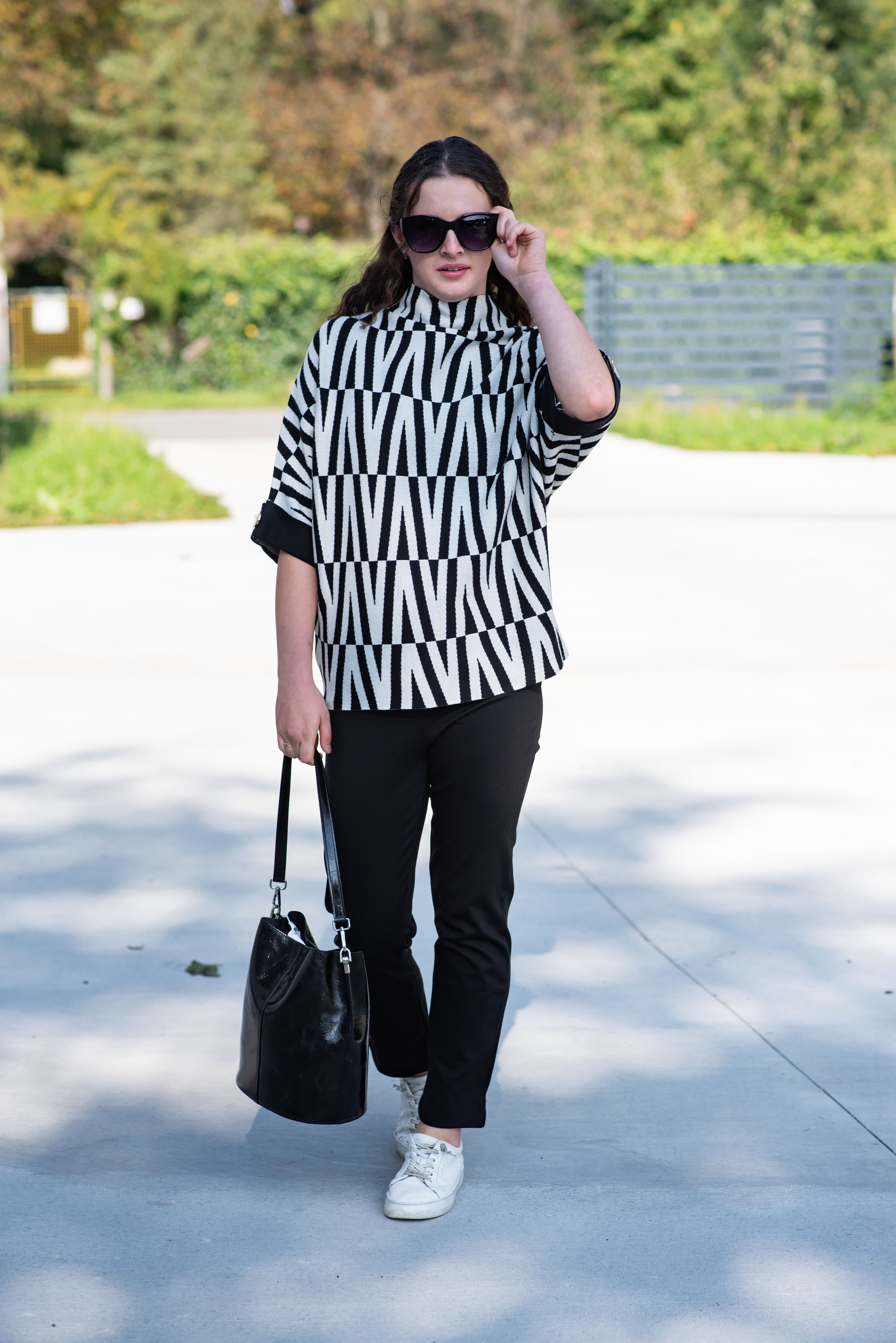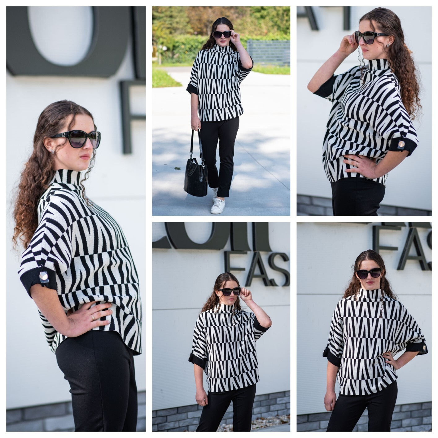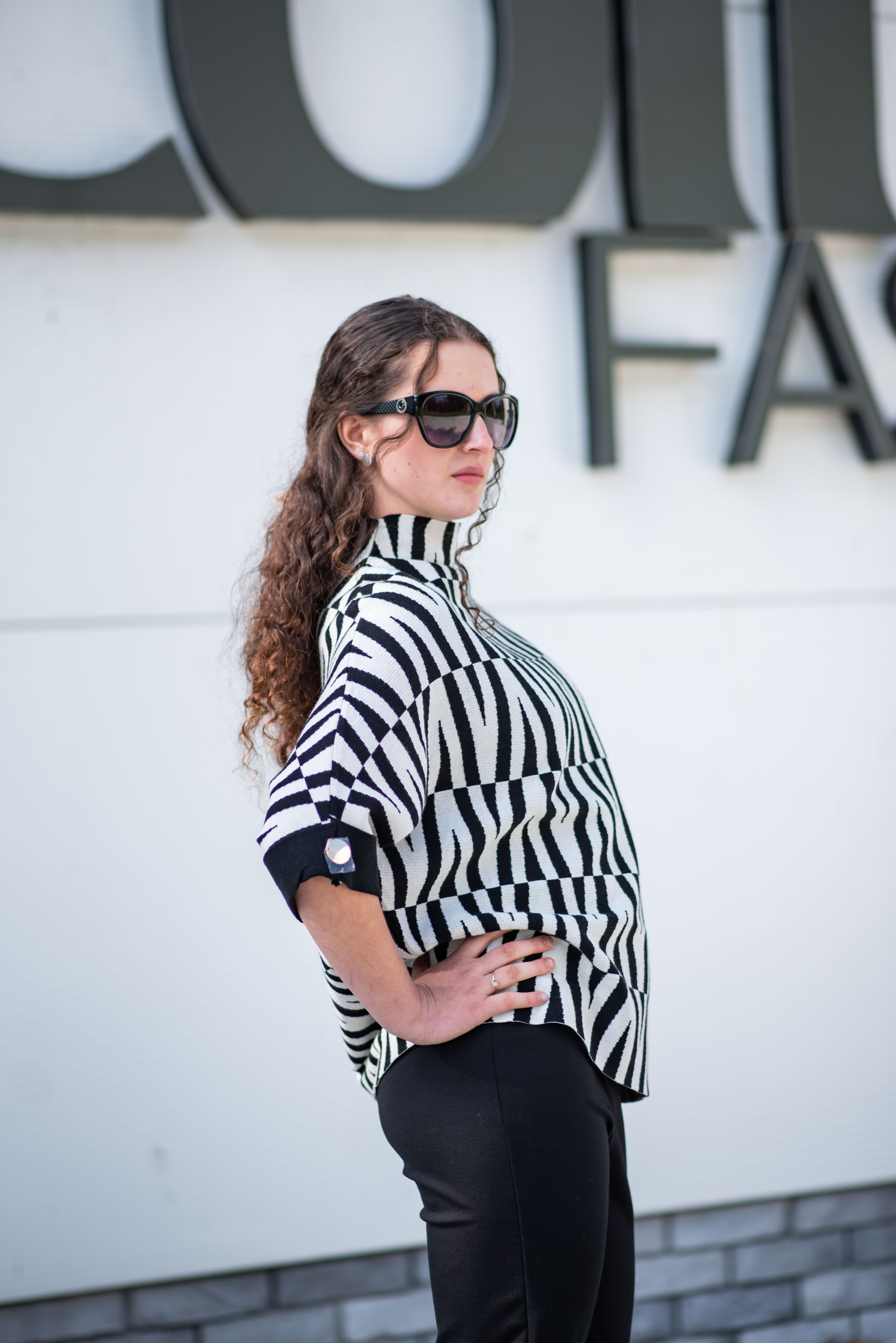 Svetr je se stojáčkem, je volnějšího oversize stylu a má 3/4 rukáv.