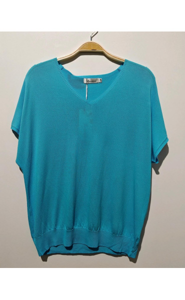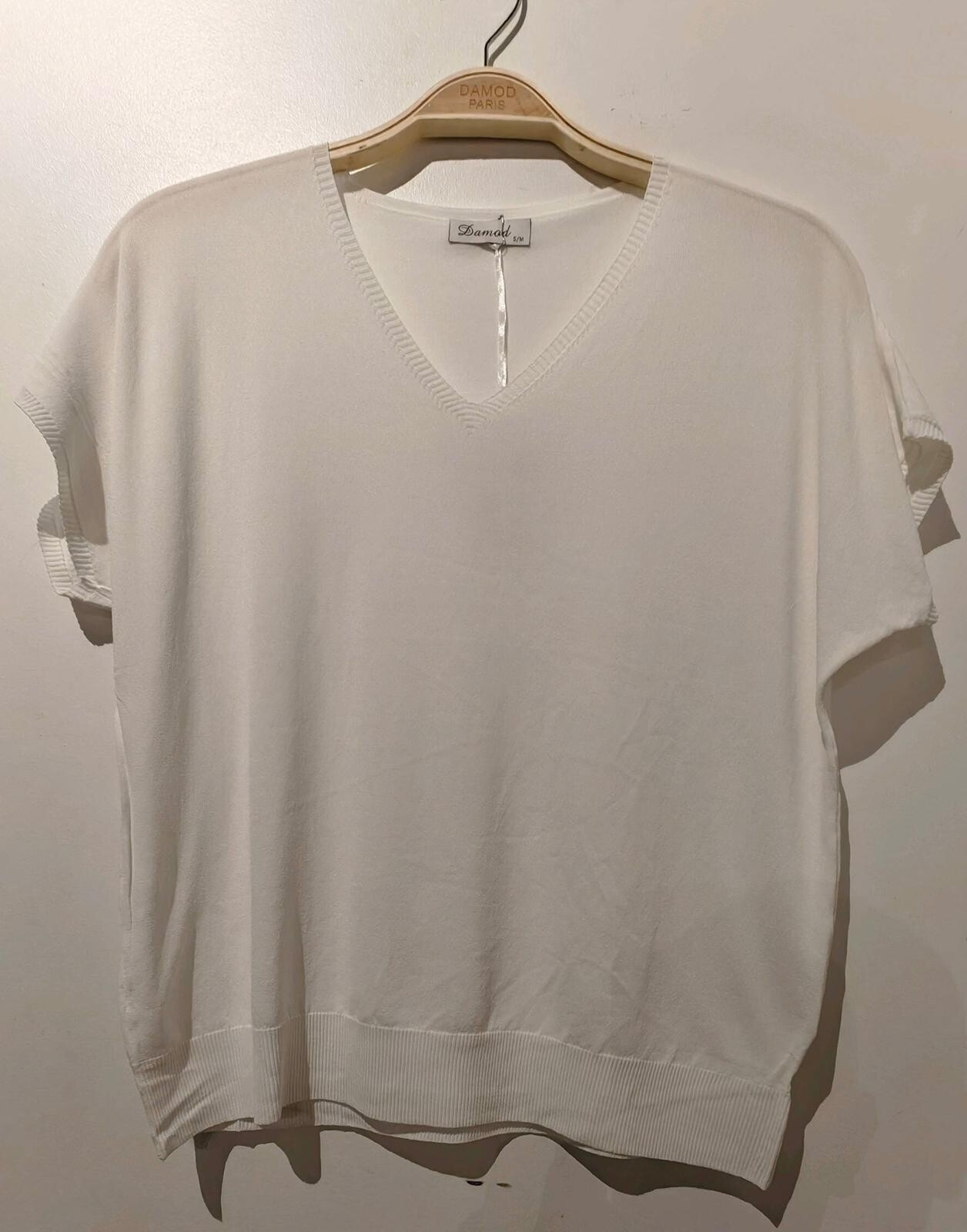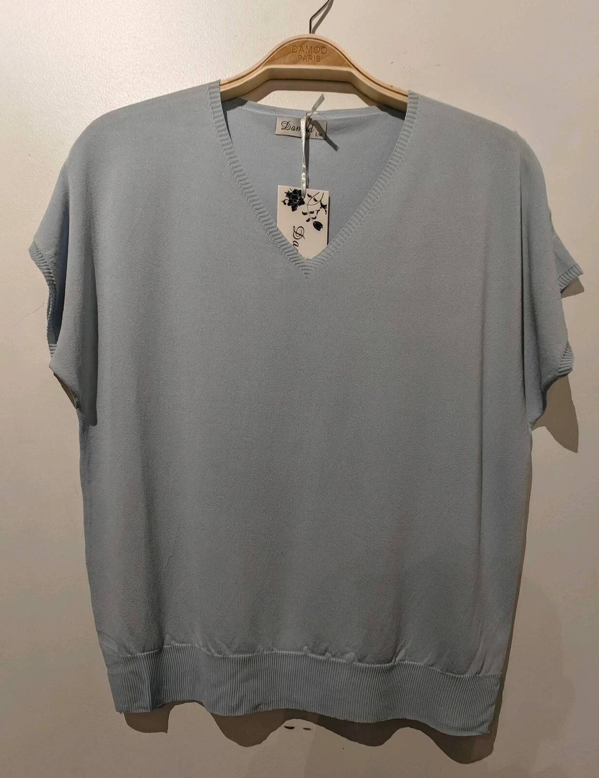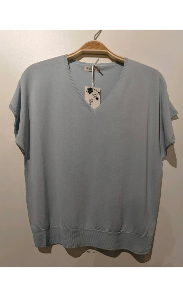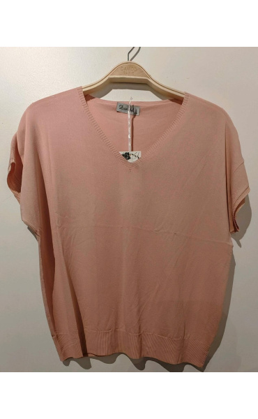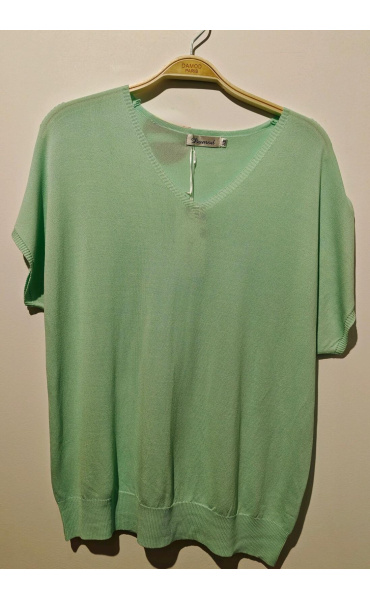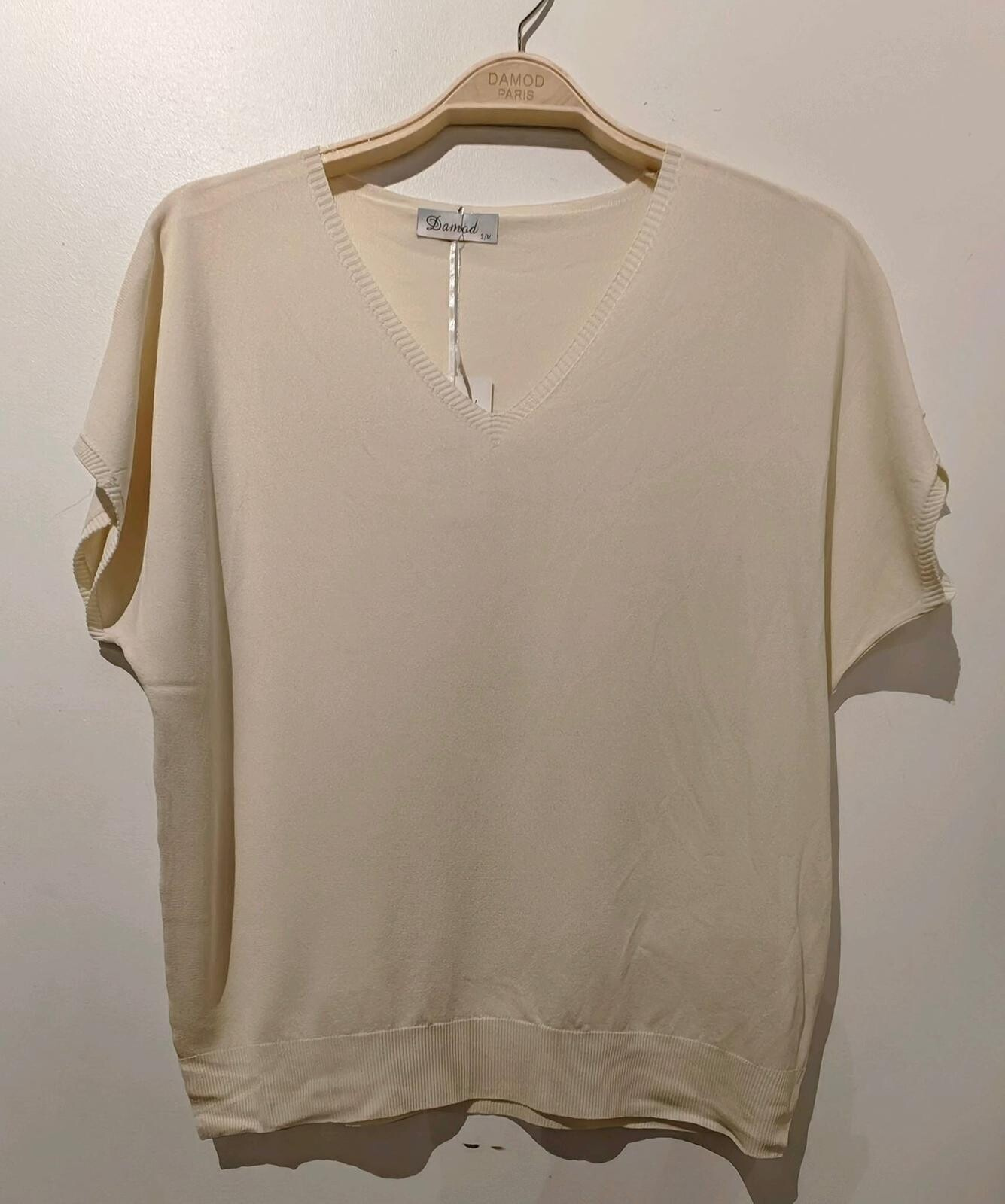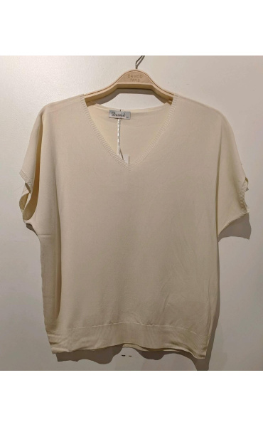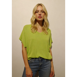 Dámský svetřík s krátkým rukávem. Svetr má výstřih do V, jednoduchý střih, příjemný materiál.