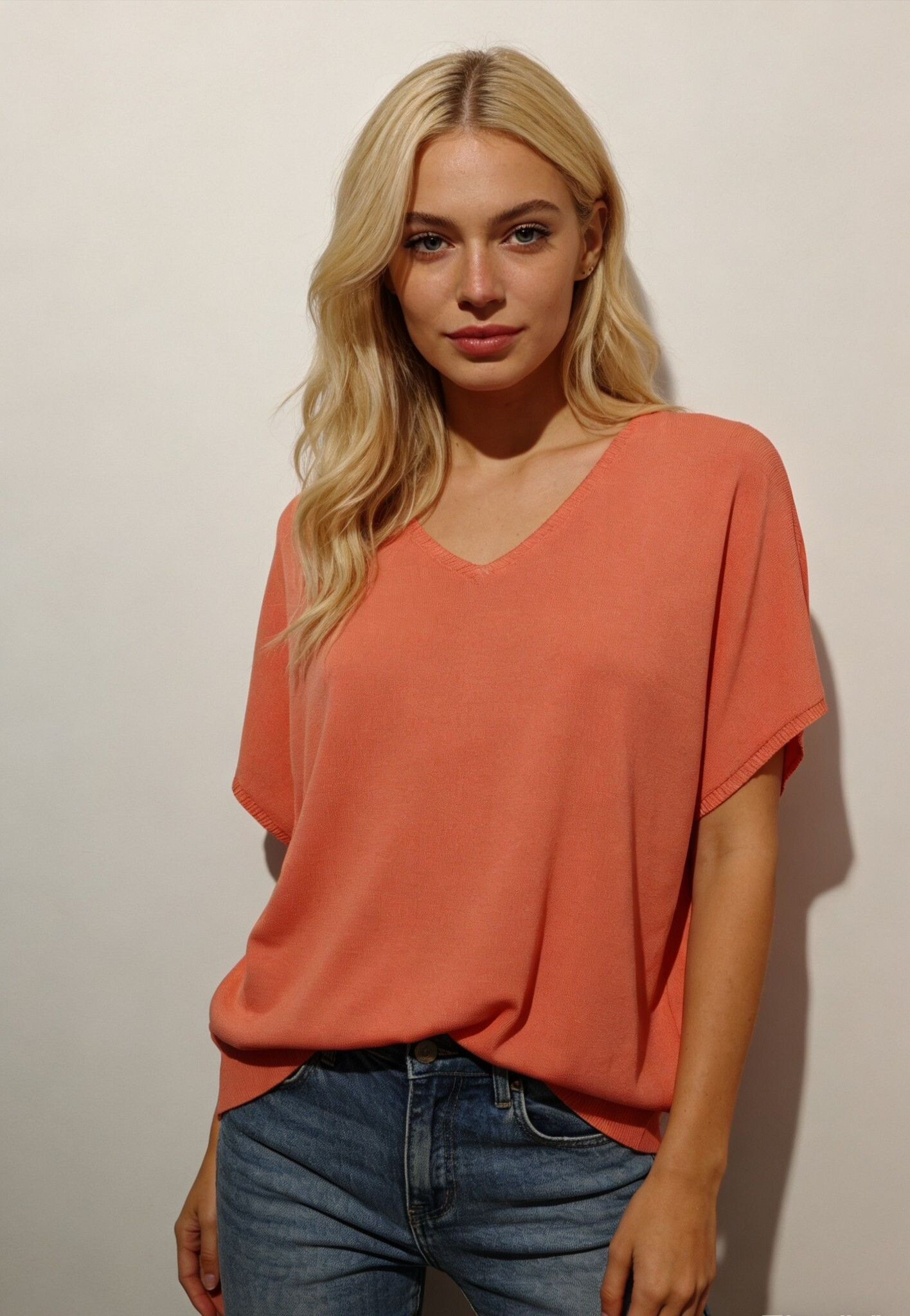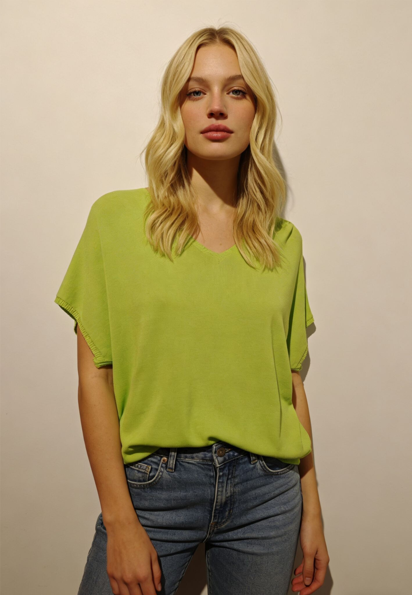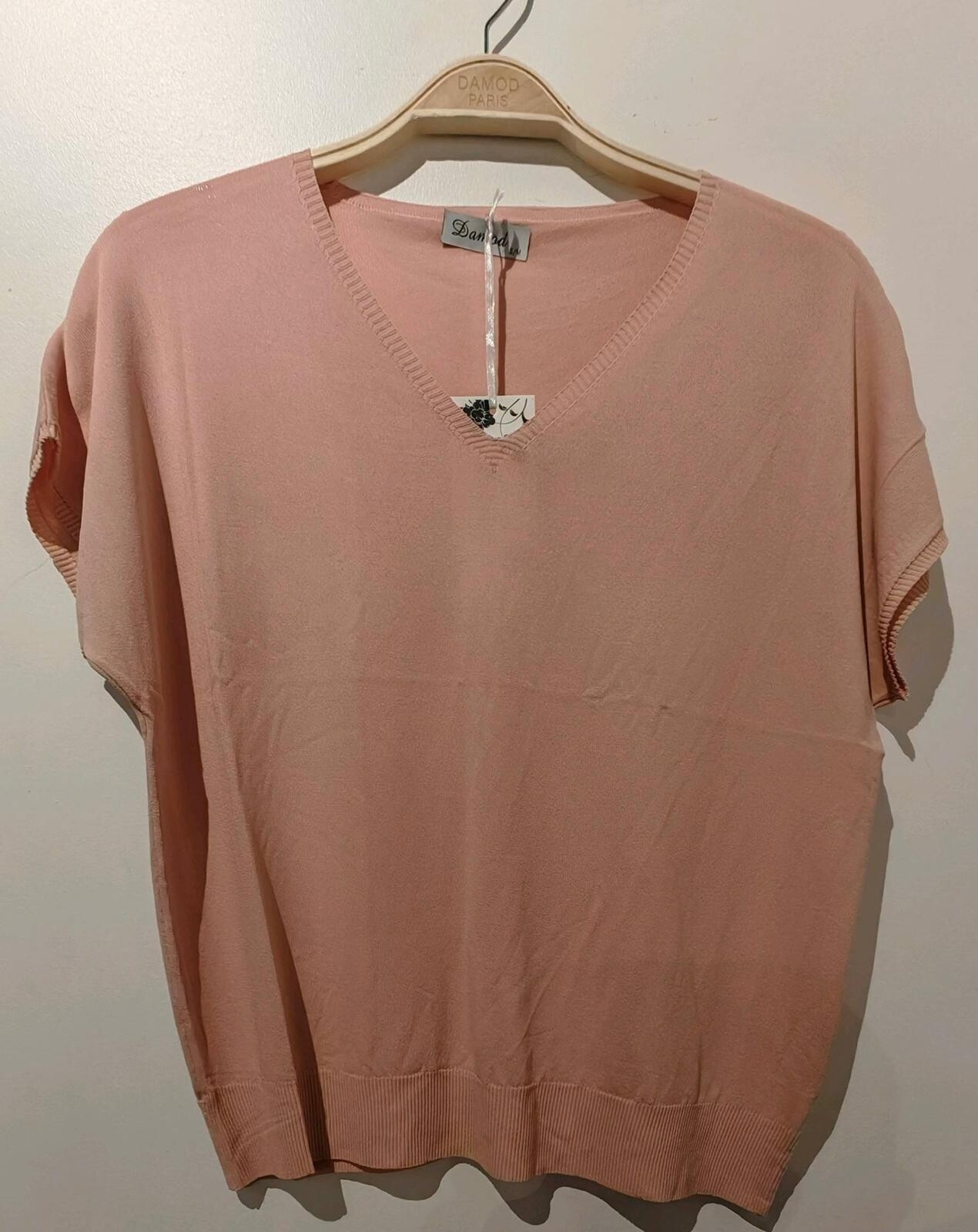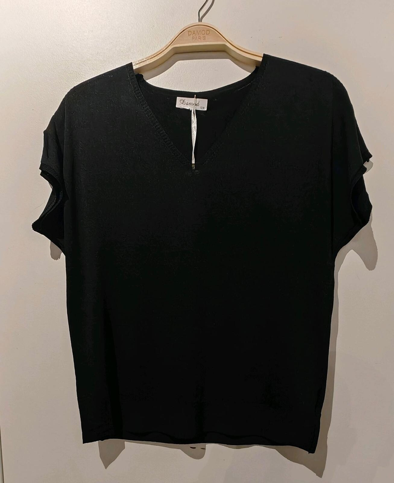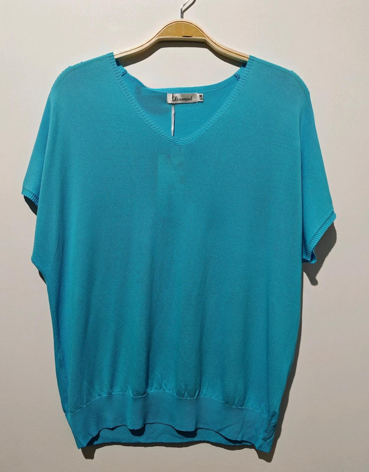 Dámský svetřík s krátkým rukávem. Svetr má výstřih do V, jednoduchý střih, příjemný materiál.
